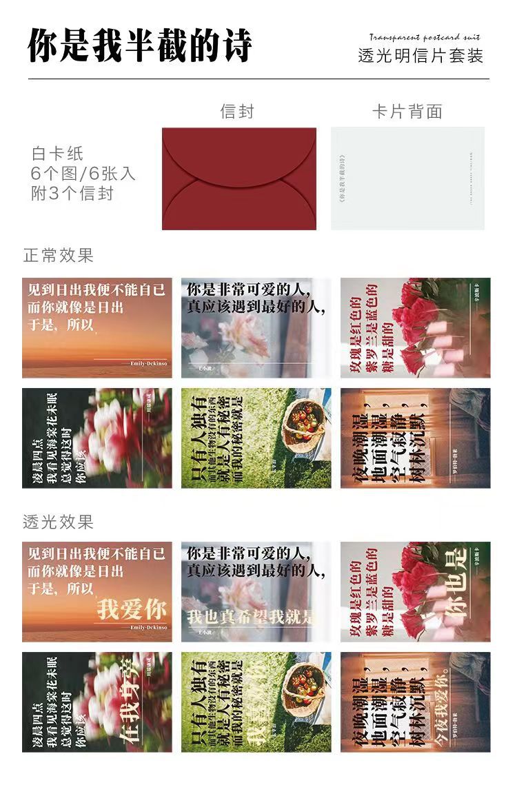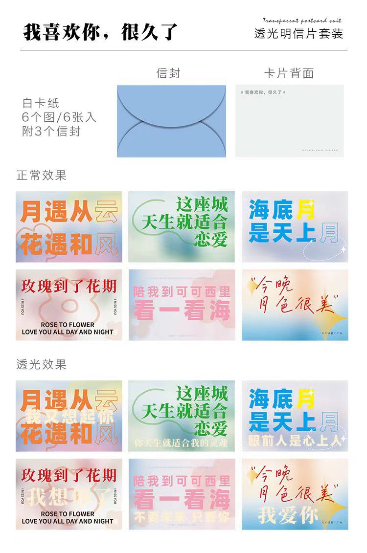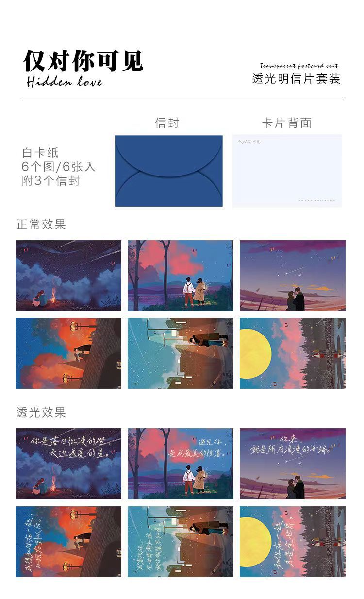 青禾纪透光藏字明信片 卡片文艺浪漫七夕情人节礼物创意表白神器