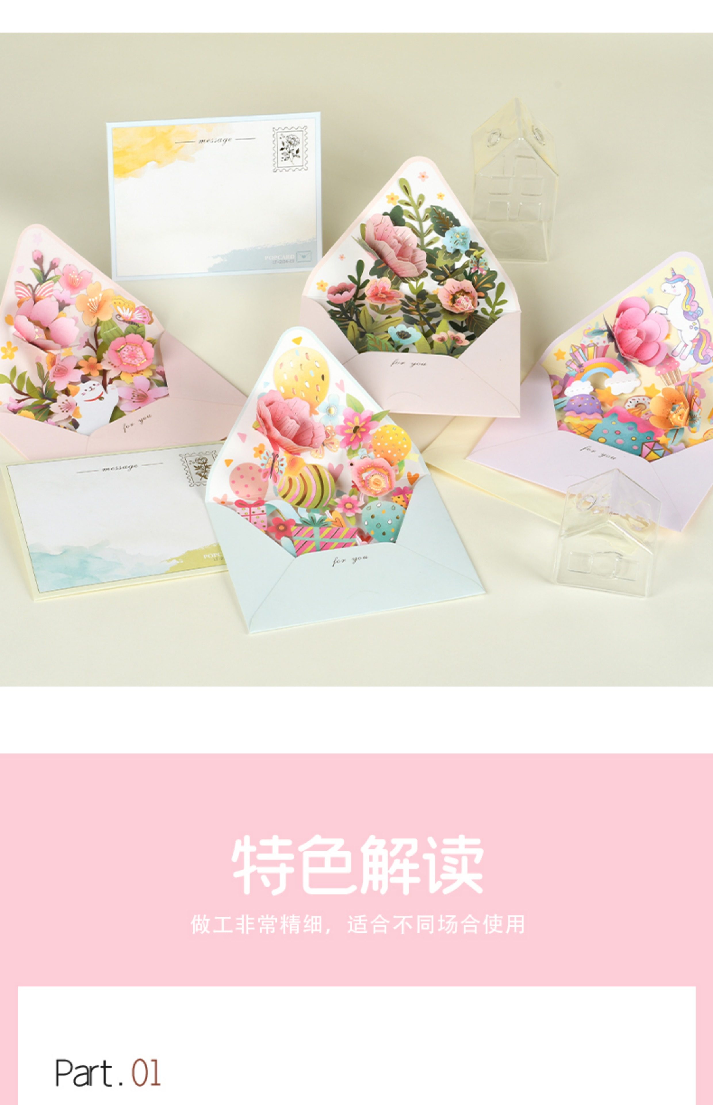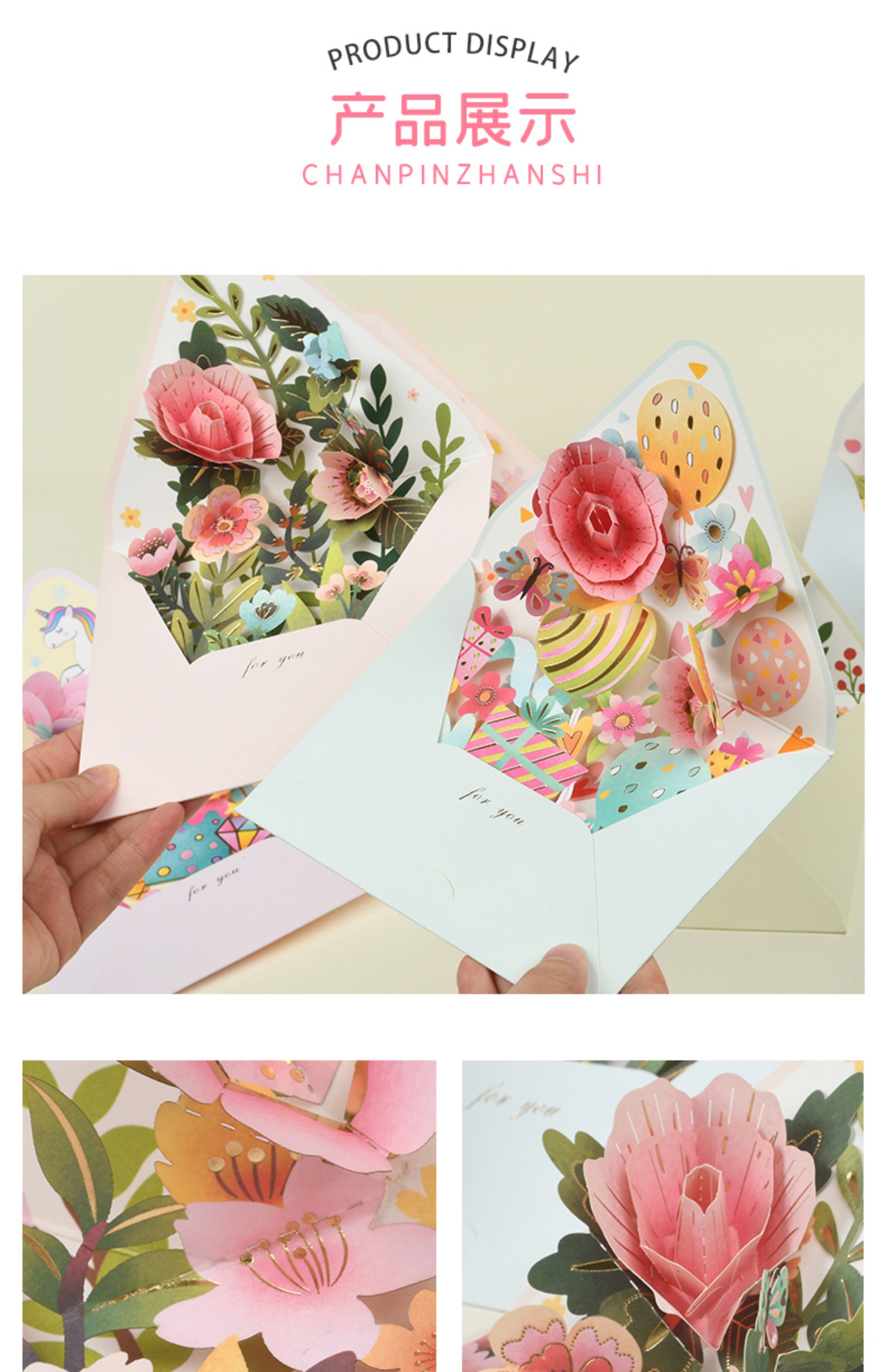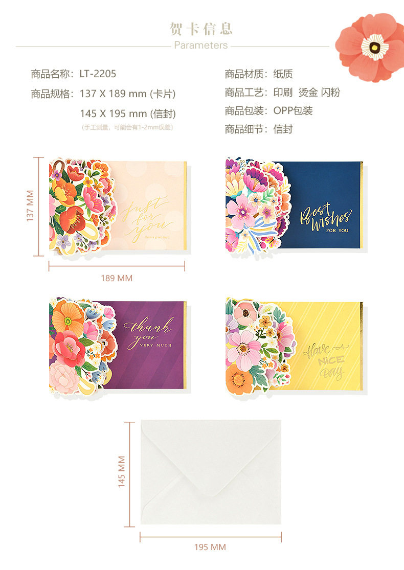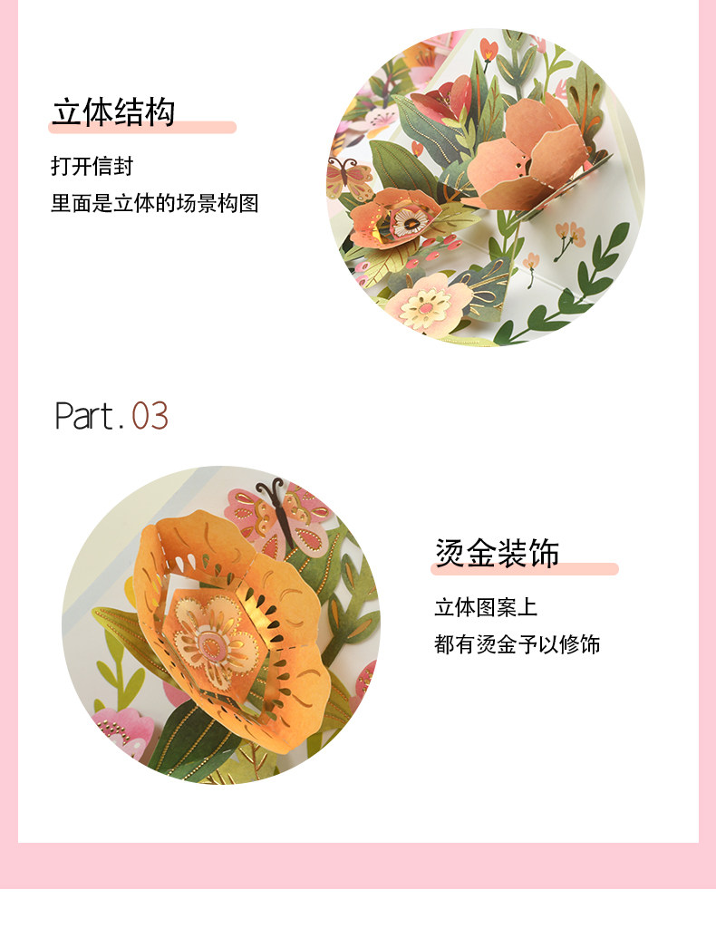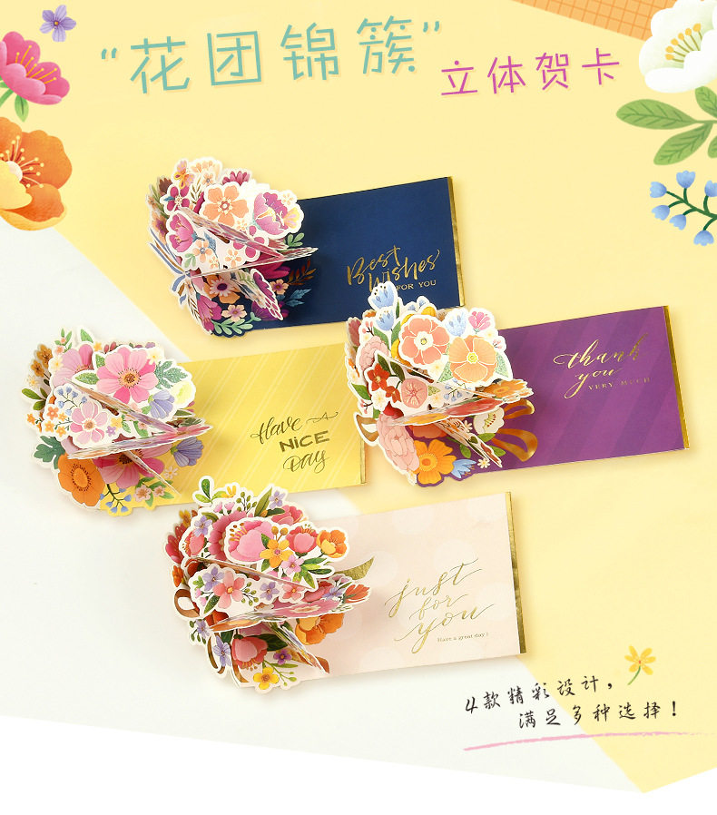 创意3D立体花朵贺卡祝福生日感恩母亲节感谢老师礼物卡片