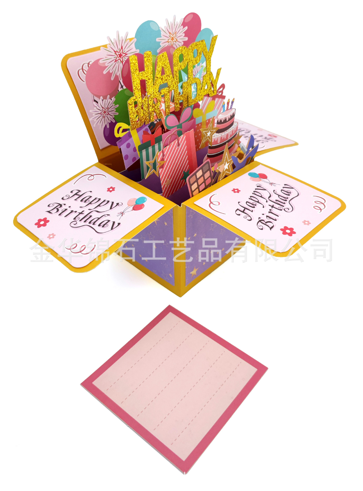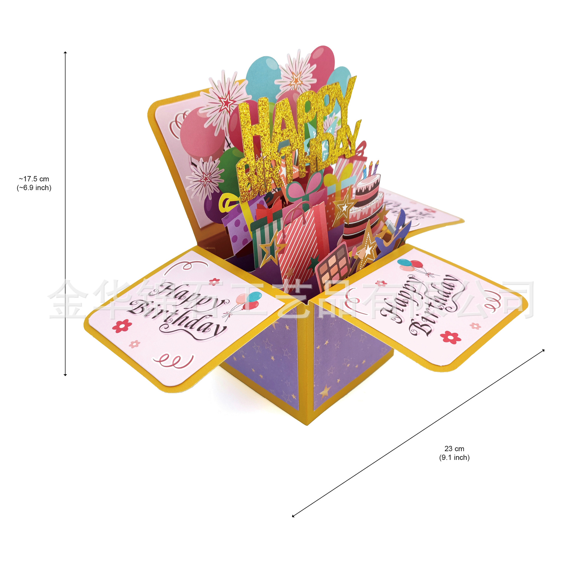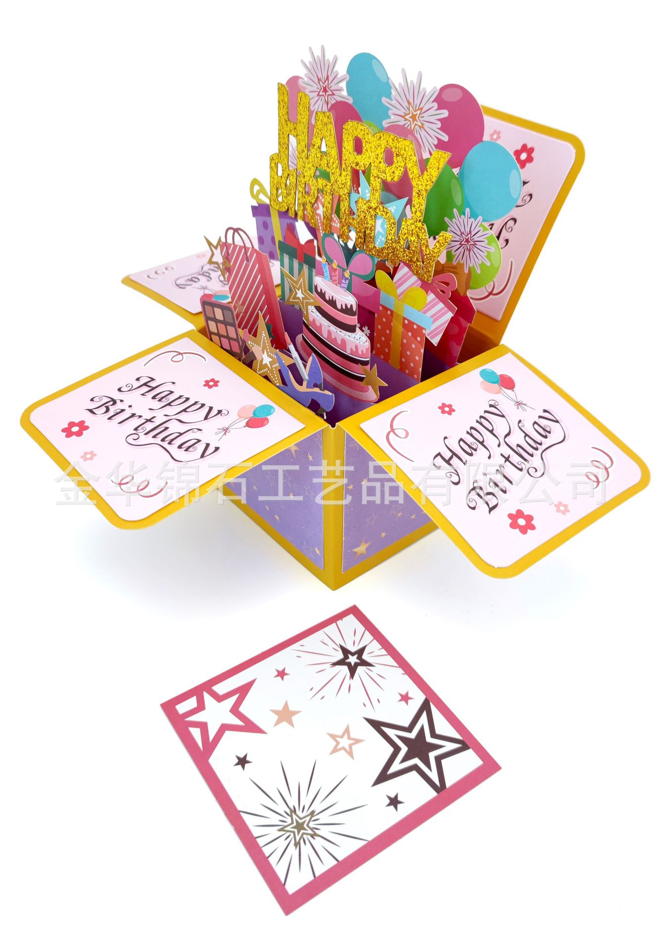 高档生日快乐 立体盒贺卡 金色葱粉 激光镂空 Happy Birthday