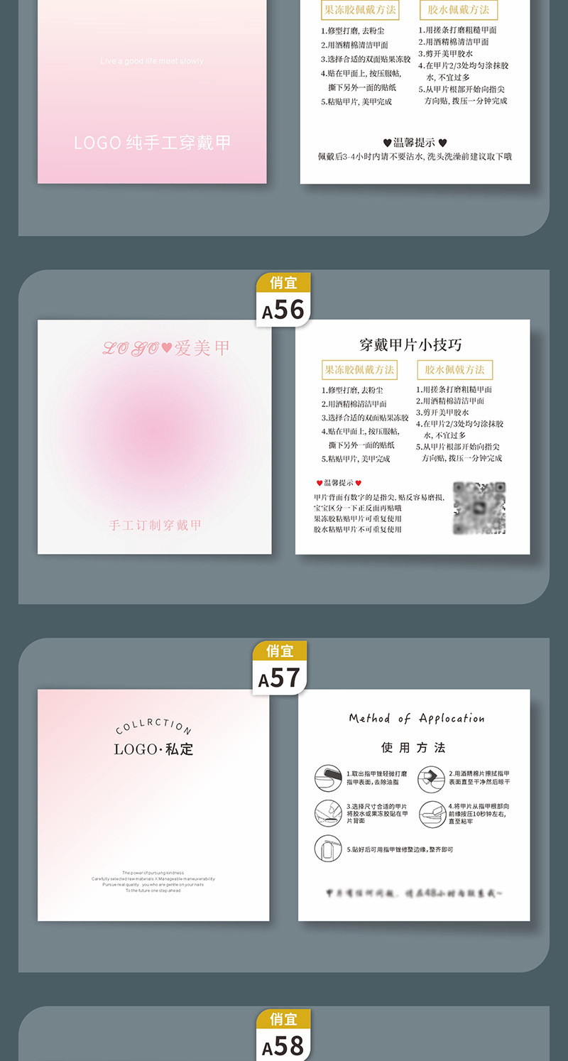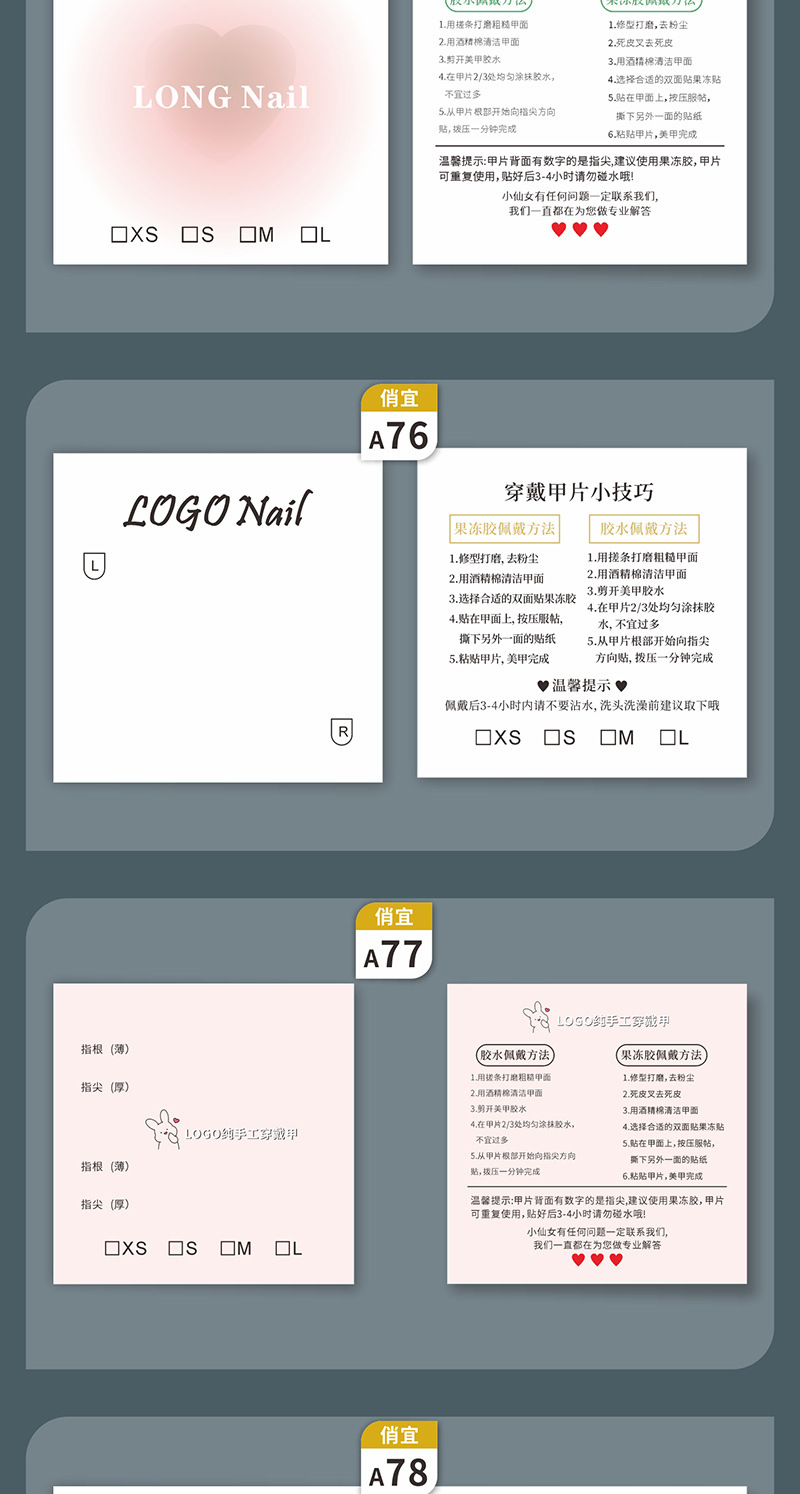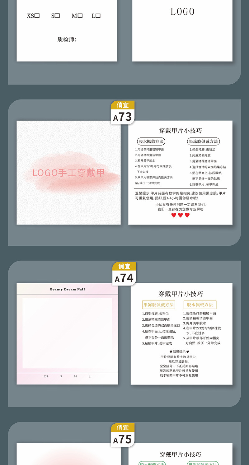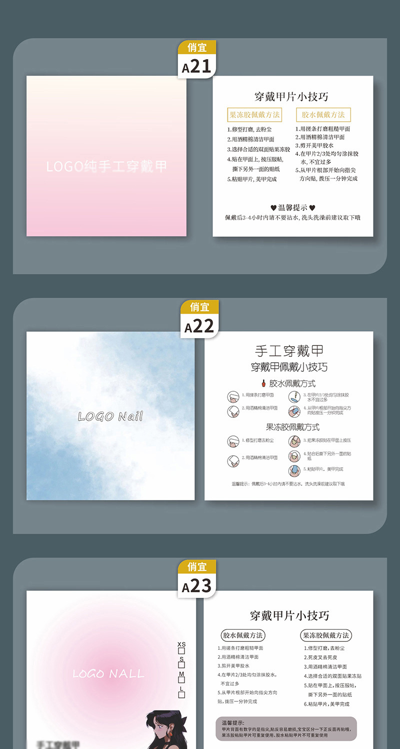 美甲直播间展示卡纸ins风设计珠光纸异形卡片加厚高极 穿戴甲卡片