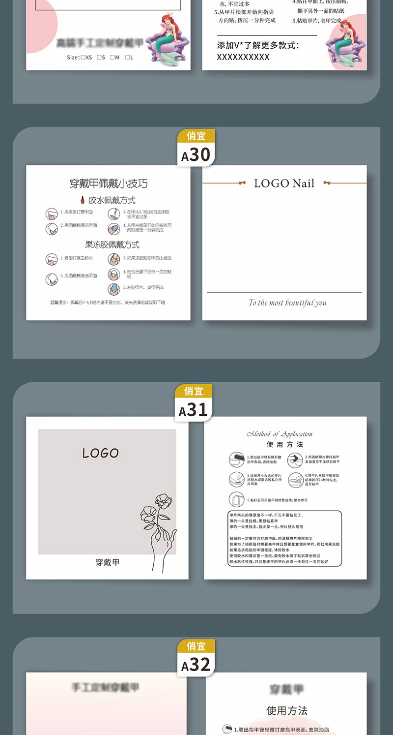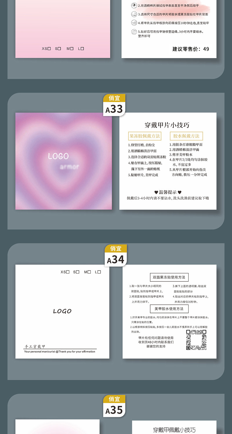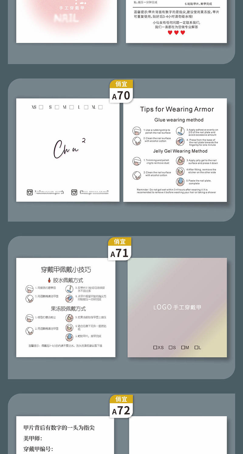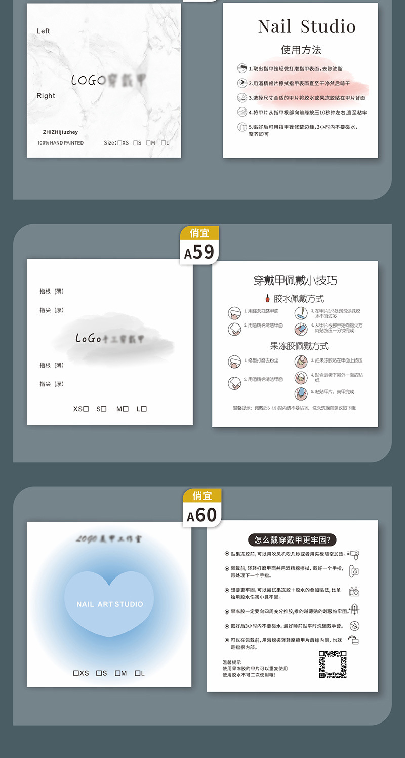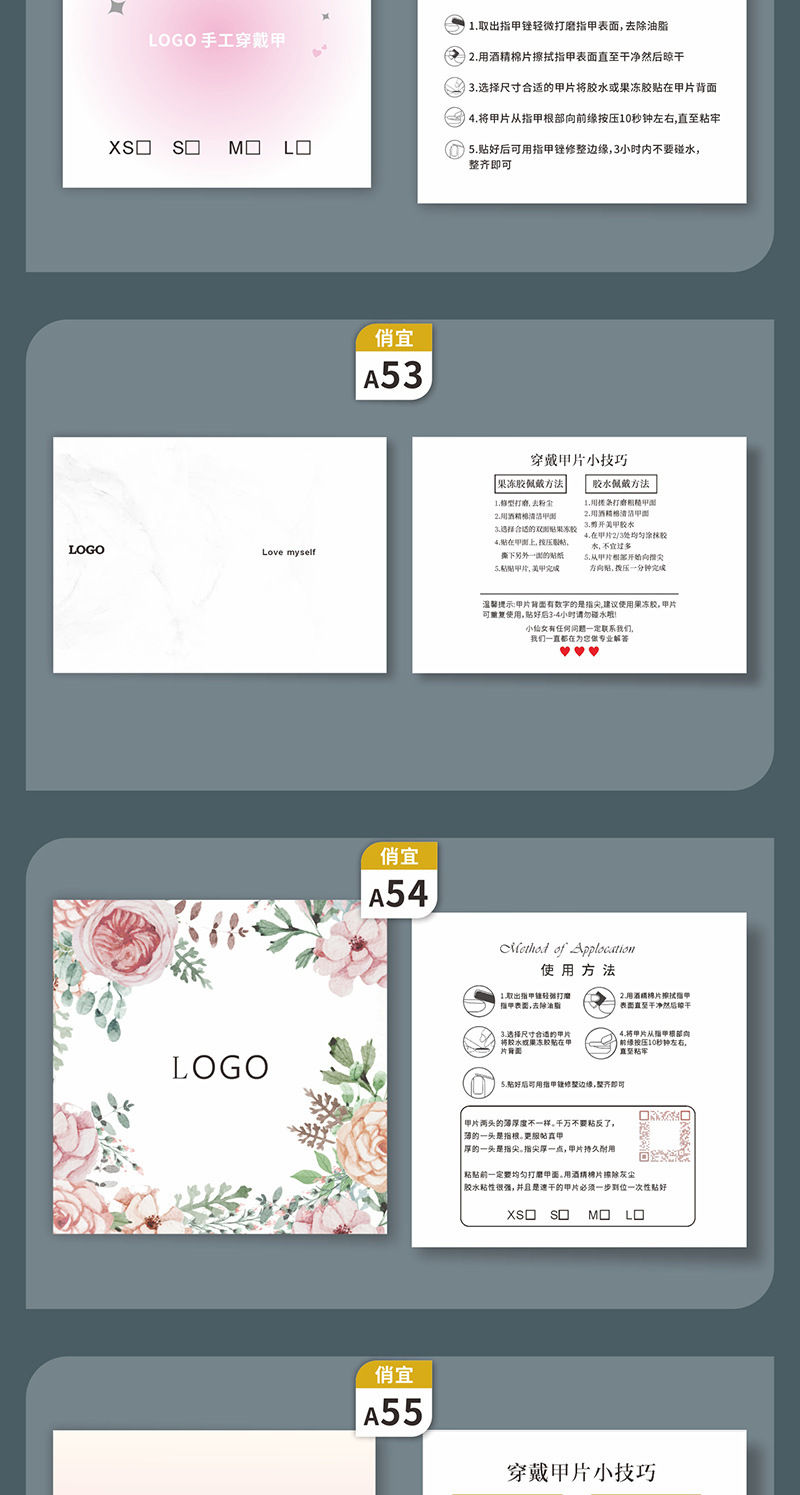 美甲直播间展示卡纸ins风设计珠光纸异形卡片加厚高极 穿戴甲卡片