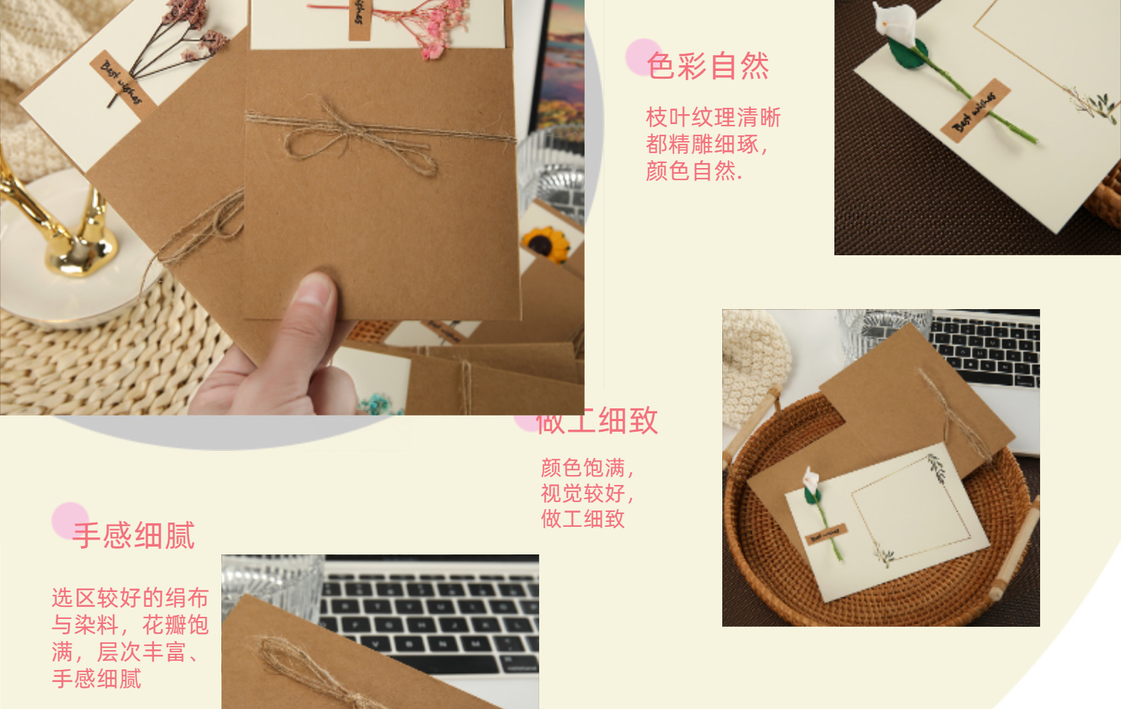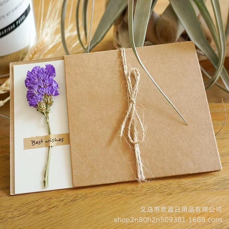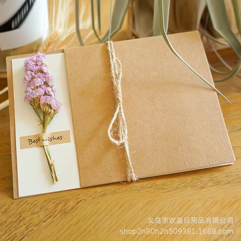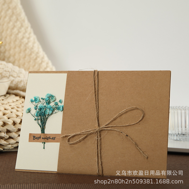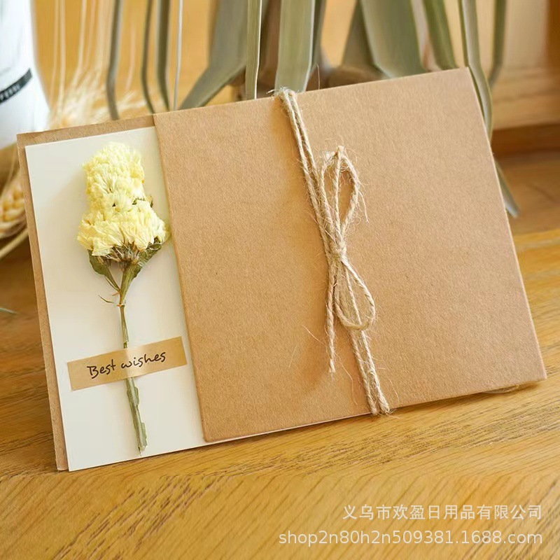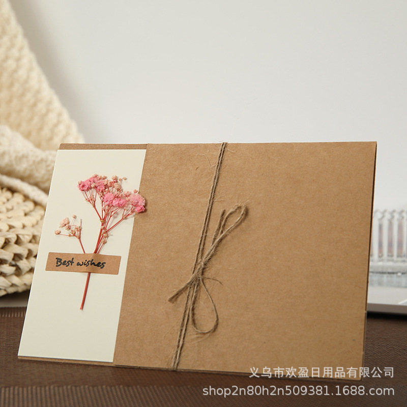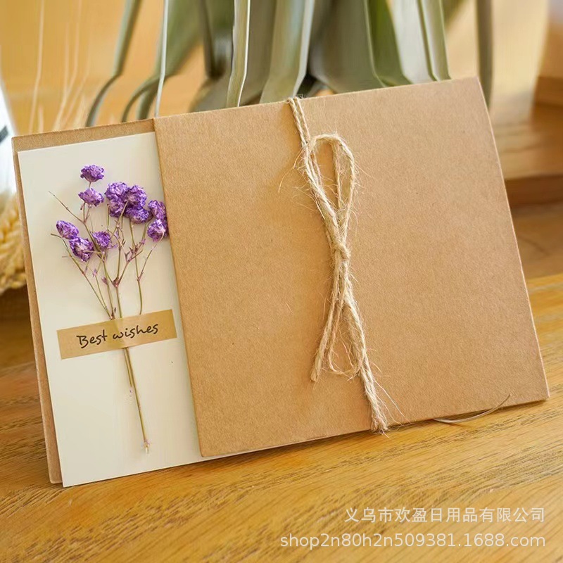 感谢卡复古插卡牛皮纸干花贺卡教师节贺卡中秋节卡片商务毕业祝福