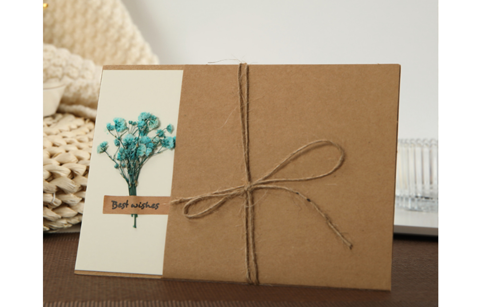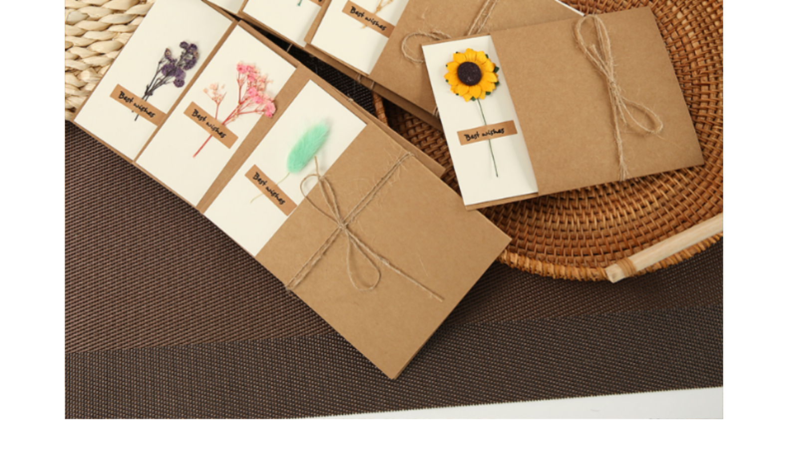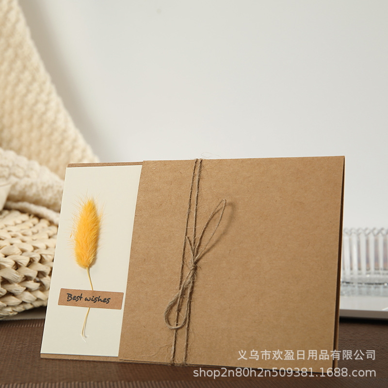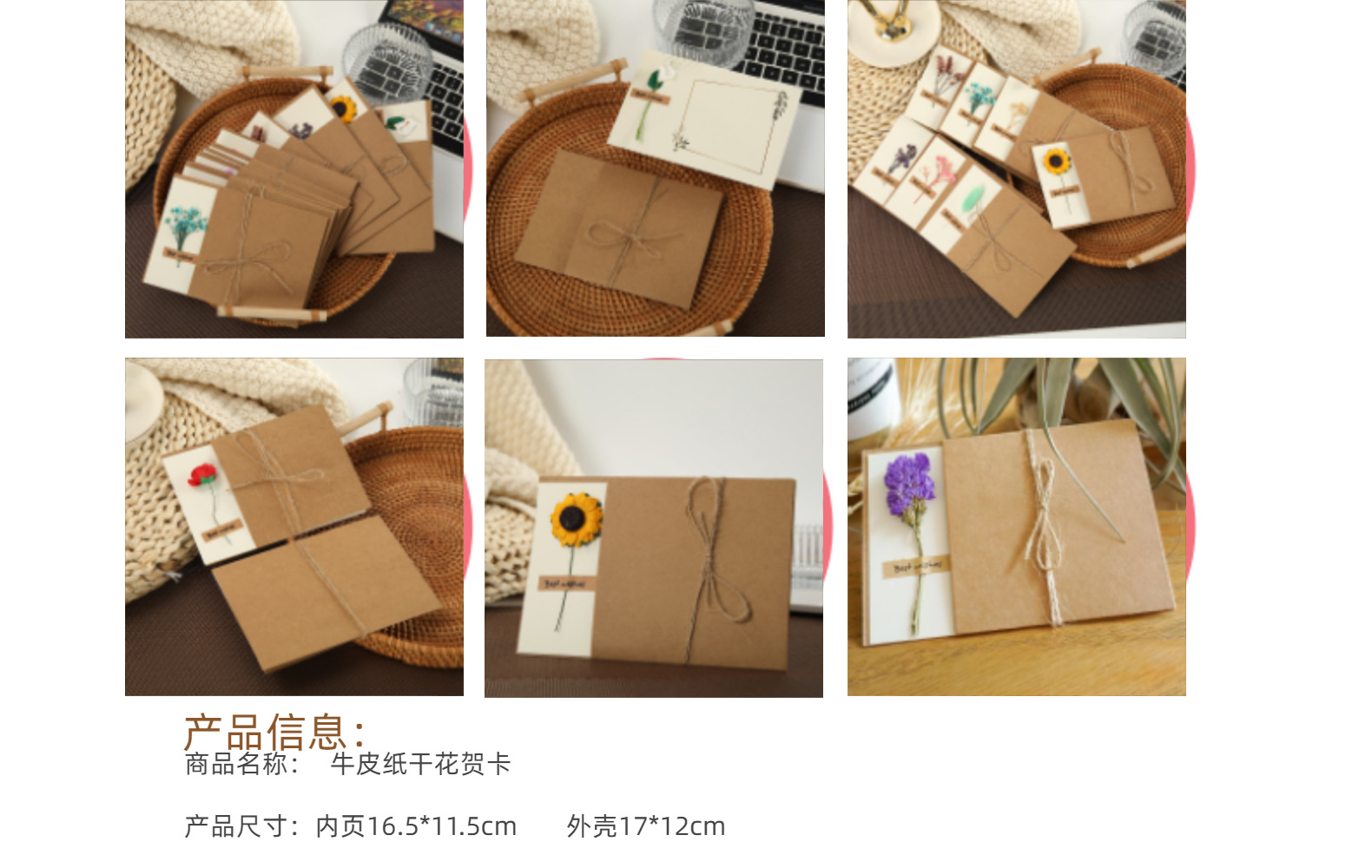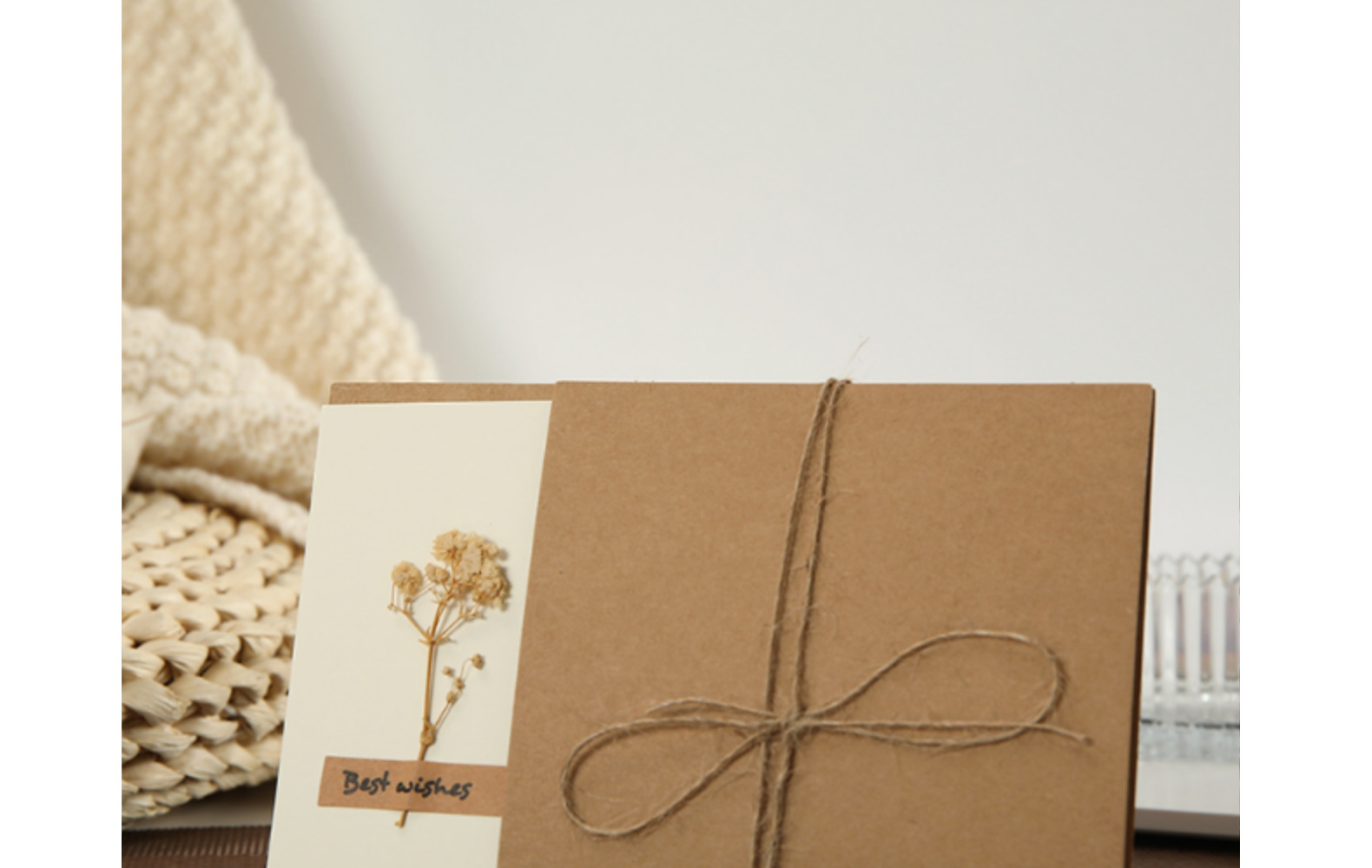 感谢卡复古插卡牛皮纸干花贺卡教师节贺卡中秋节卡片商务毕业祝福