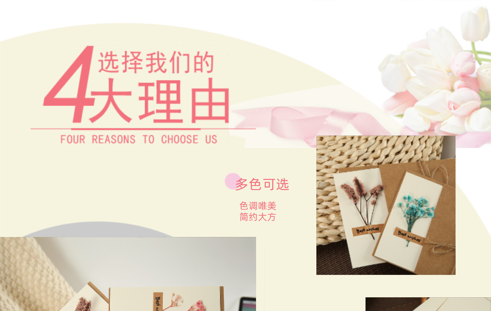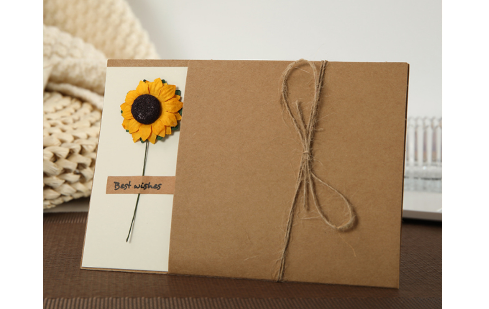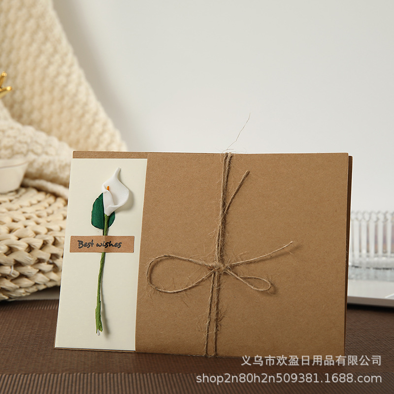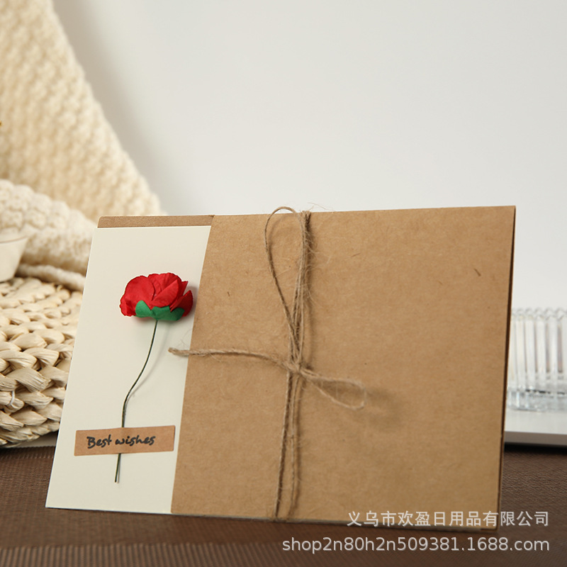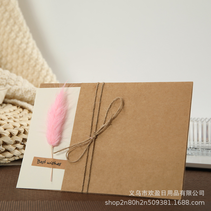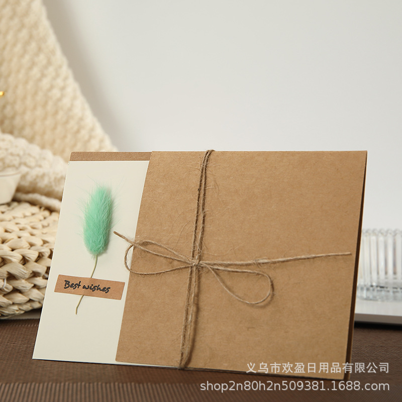 感谢卡复古插卡牛皮纸干花贺卡教师节贺卡中秋节卡片商务毕业祝福