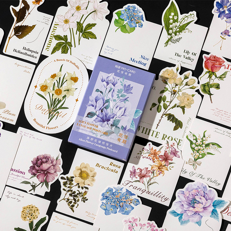 陌墨盒装明信片 花信有期 文艺风植物花卉卡片创意留言贺卡30张入