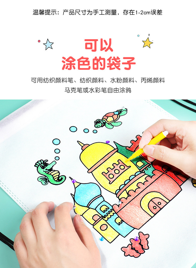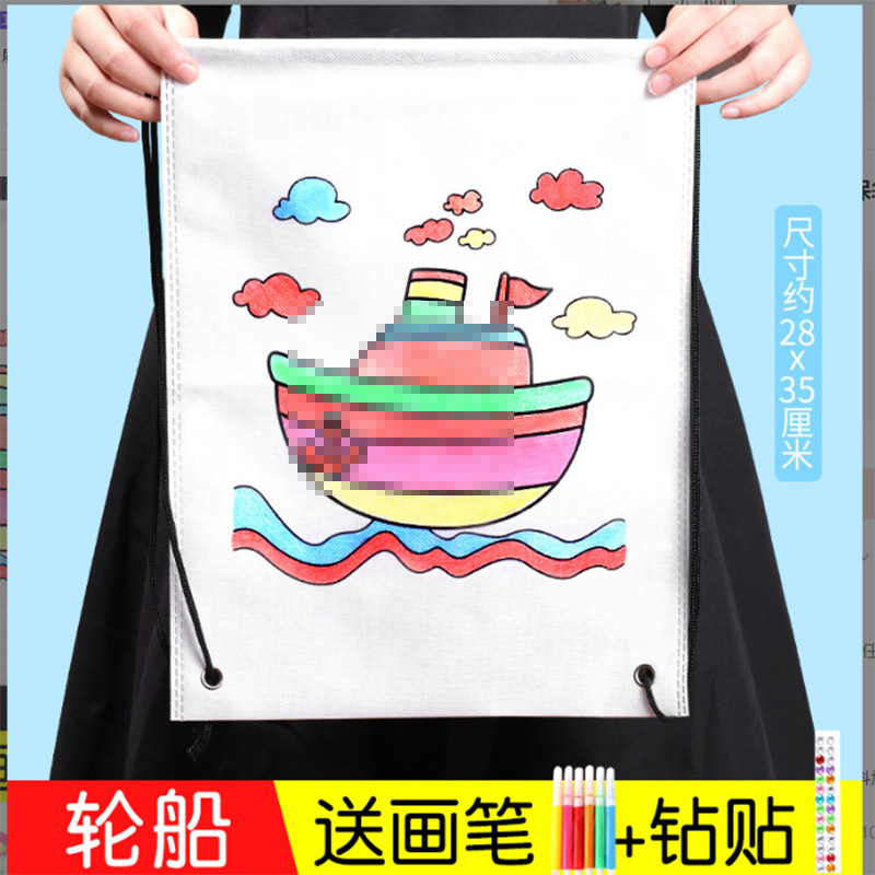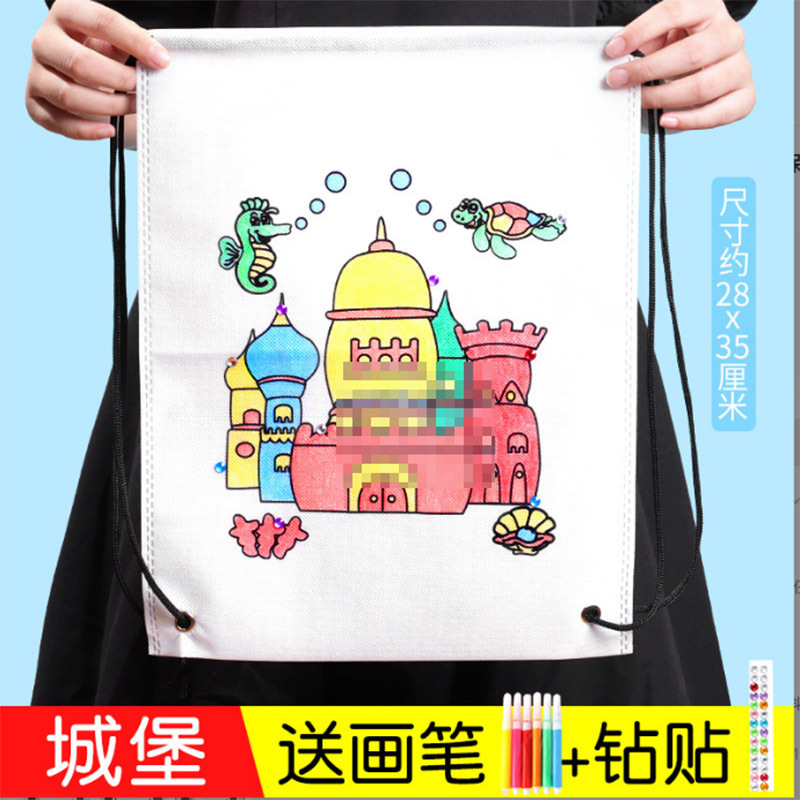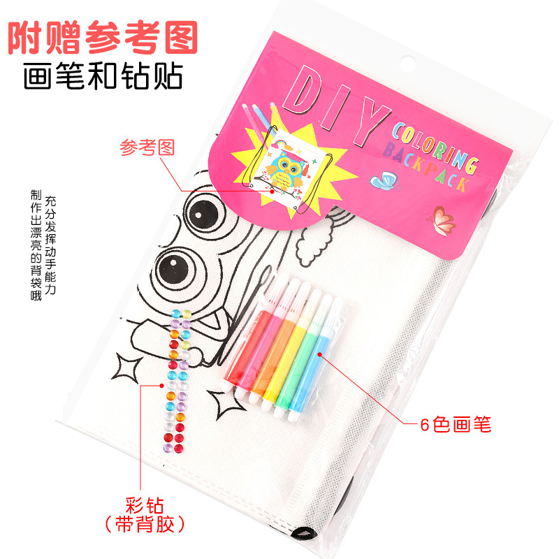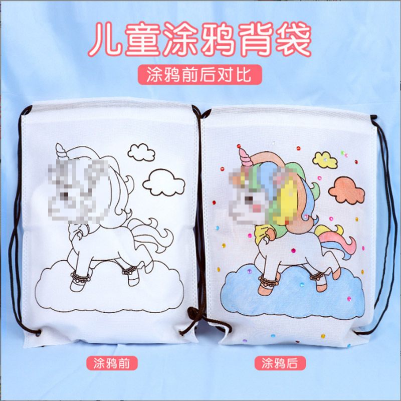 亚马逊涂鸦无纺布背包 儿童diy手工制作环保袋背包涂色绘画束口袋