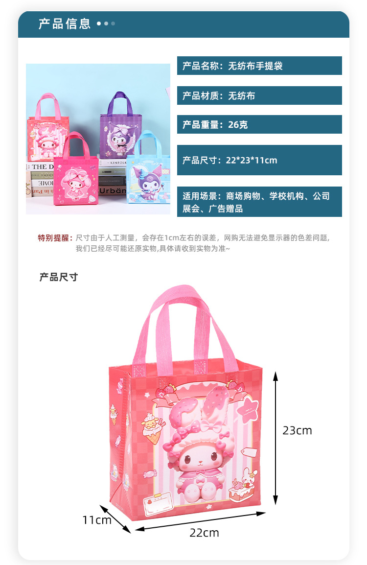 跨境可爱卡通酷洛米兔子礼物包装袋礼品儿童糖果服装无纺布补习袋