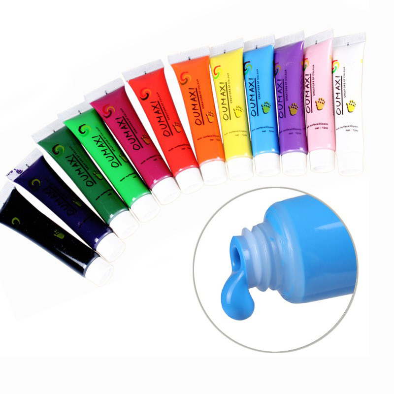 美甲12色3D指甲彩绘画花颜料画花颜料美甲排笔颜料套装12ML