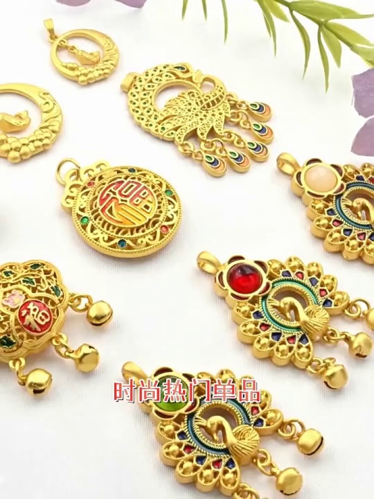 古法金滴油保色福字吊坠 微镶宝石孔雀配饰手工diy项链毛衣链配件