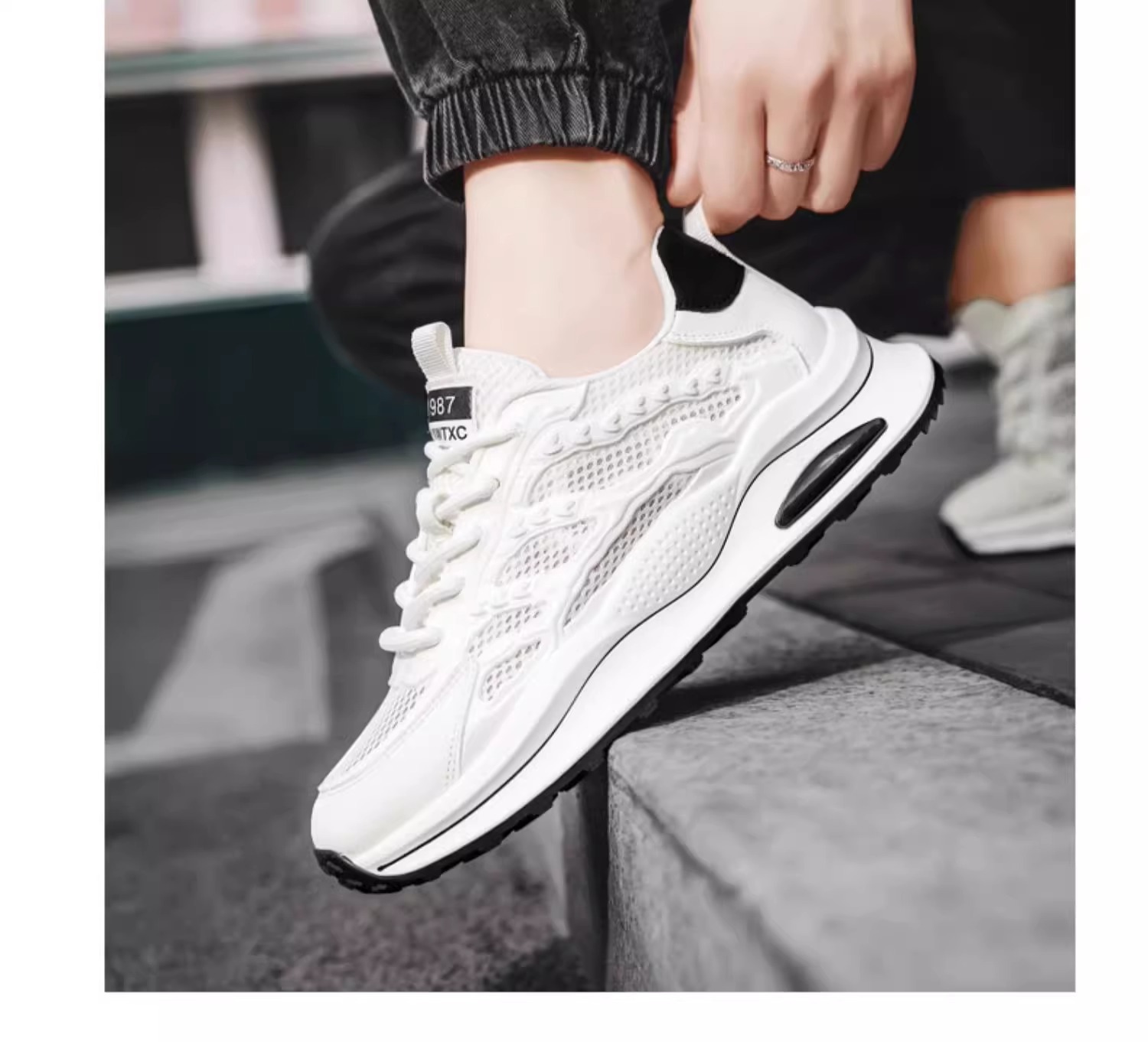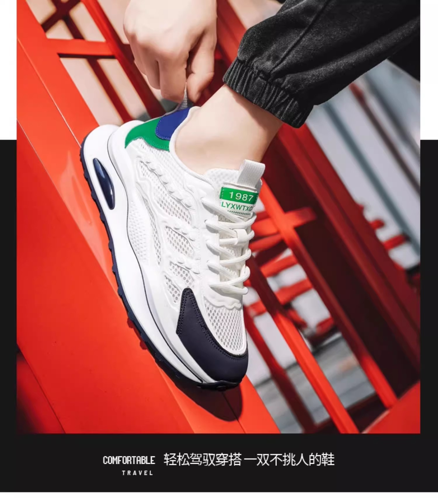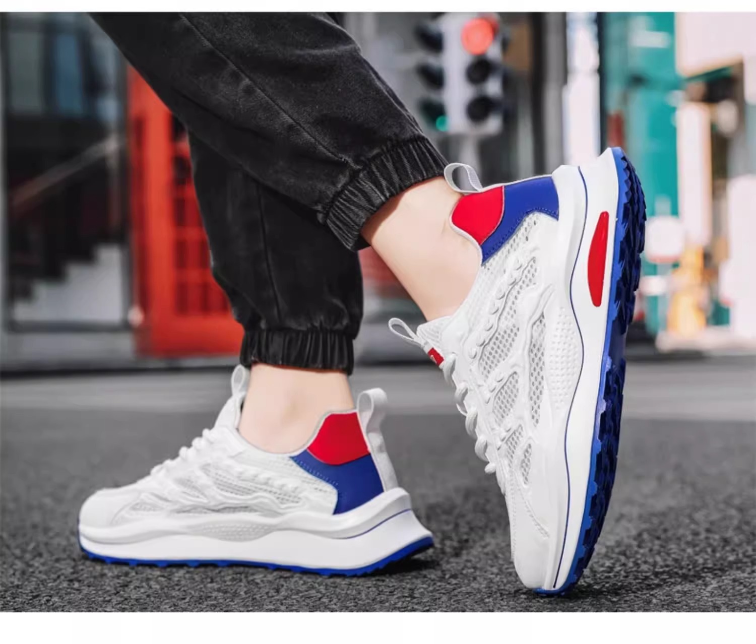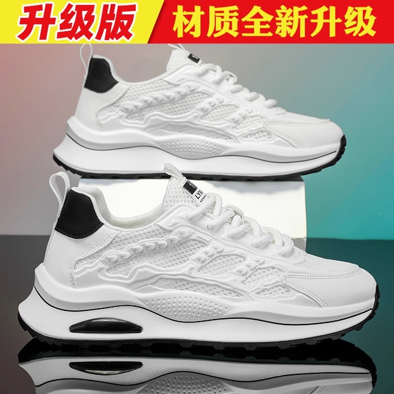 夏季透气男鞋2025新款户外网面网鞋运动休闲初中学生厚底老爹潮鞋