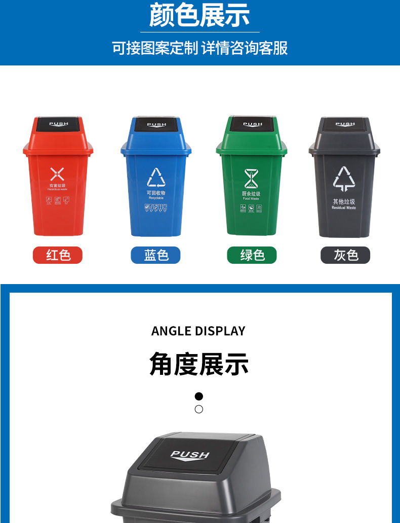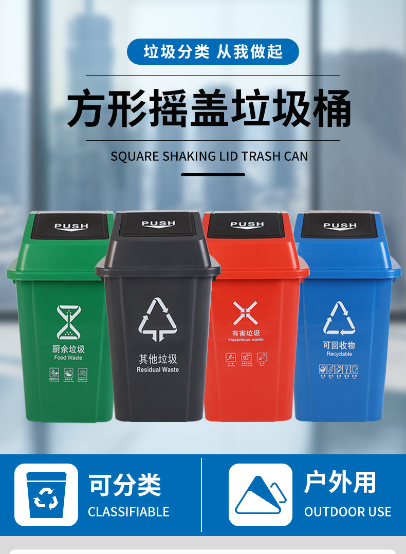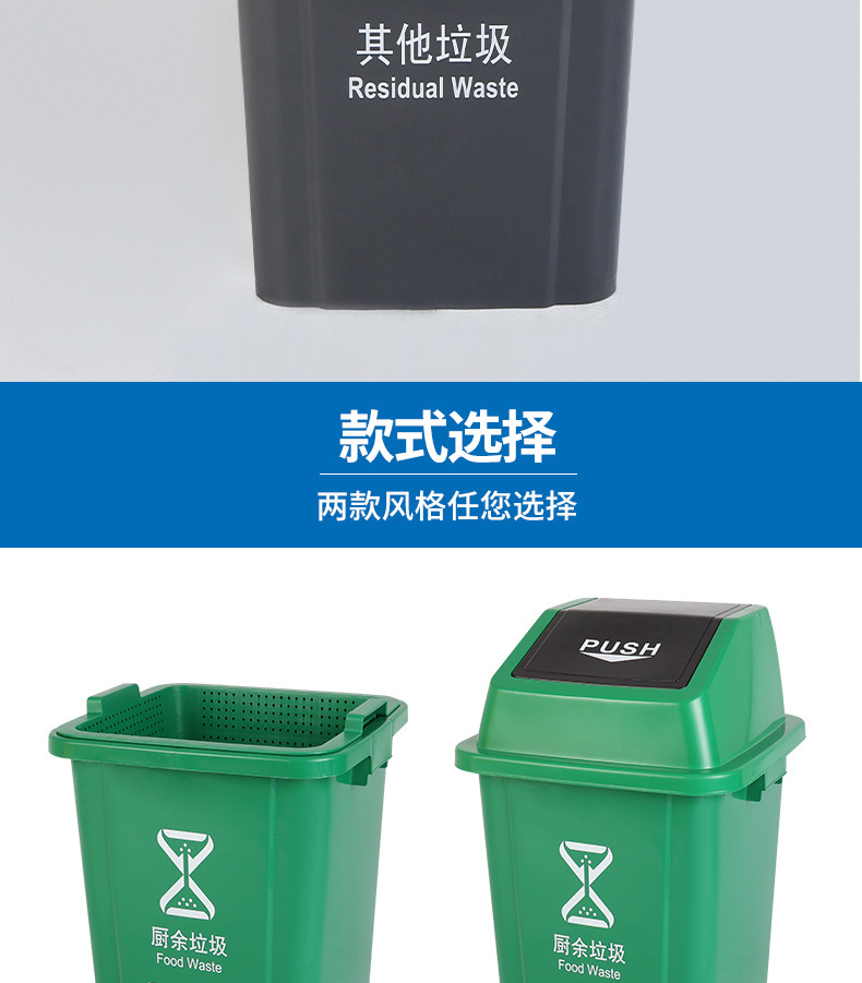 正方形商用大号垃圾桶厨房大容量带盖垃圾箱家用餐饮柜桶定制印刷