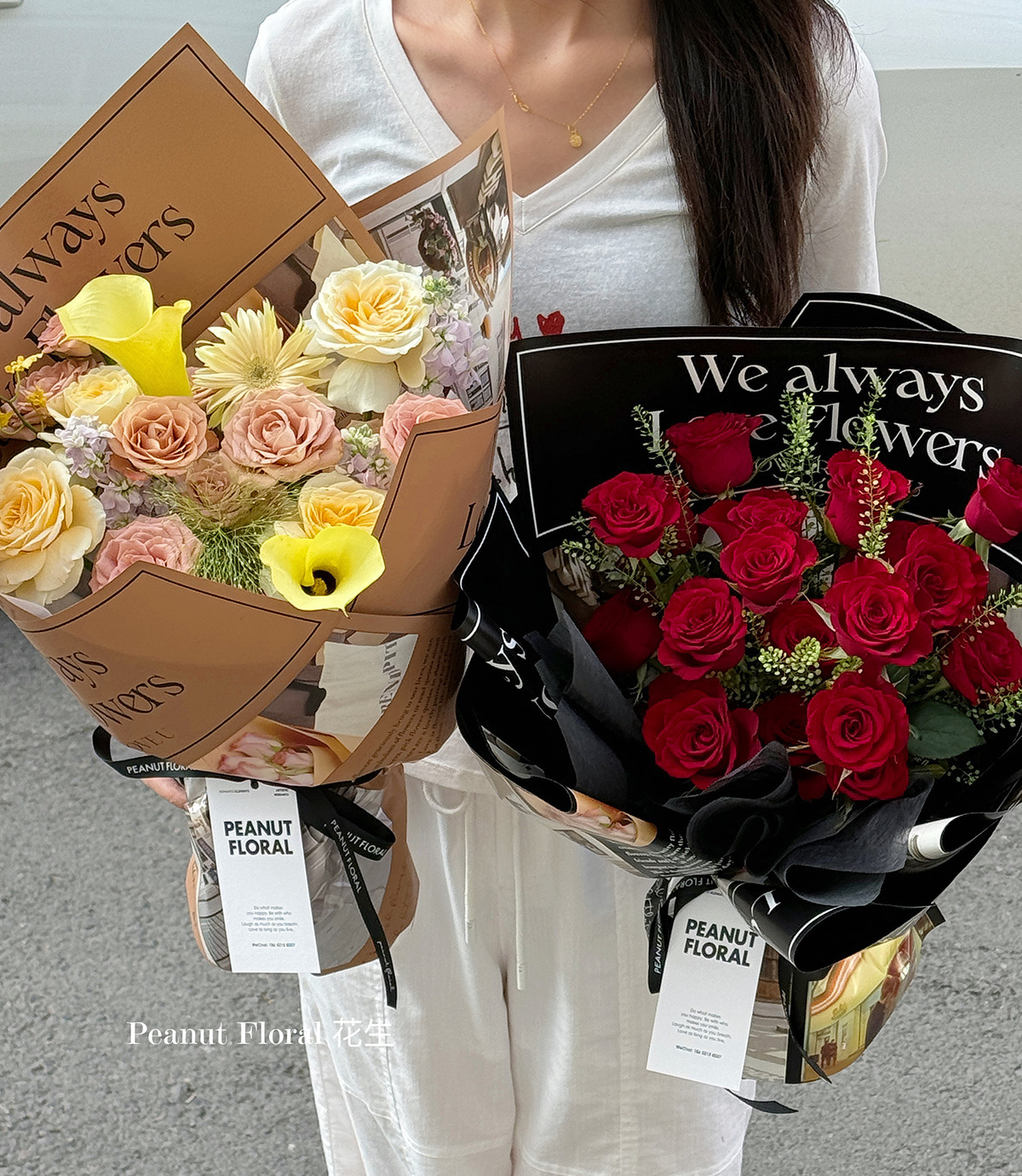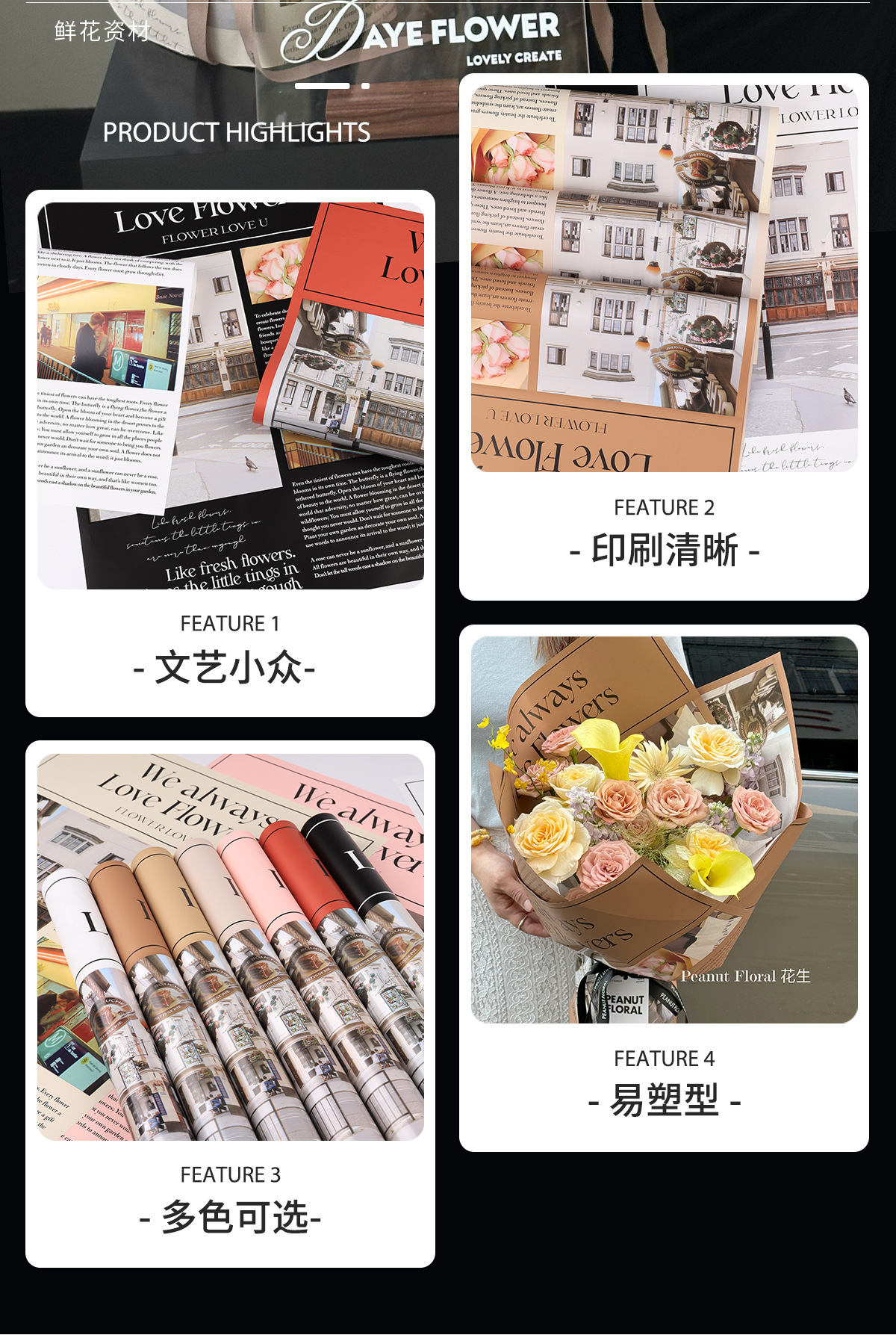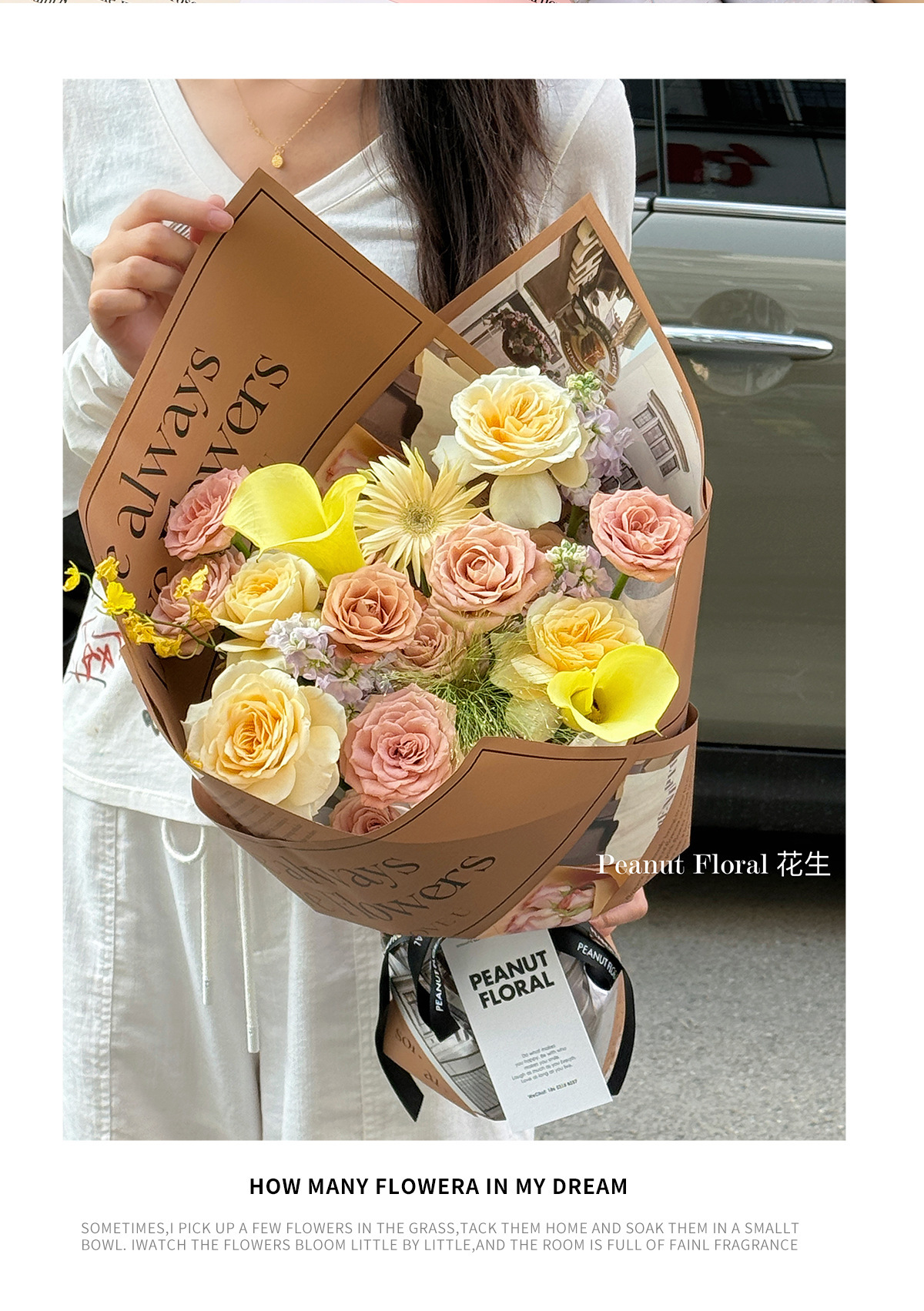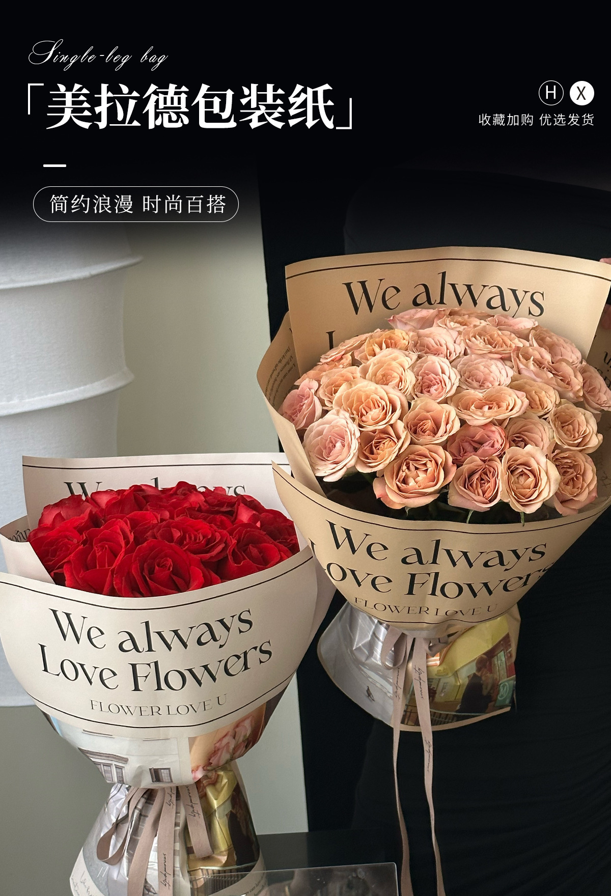 包装纸美拉德风格报包装纸花束高级感防水珠光膜花艺纸七夕包花纸