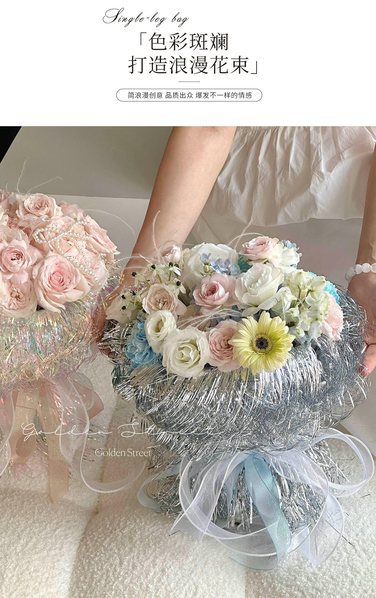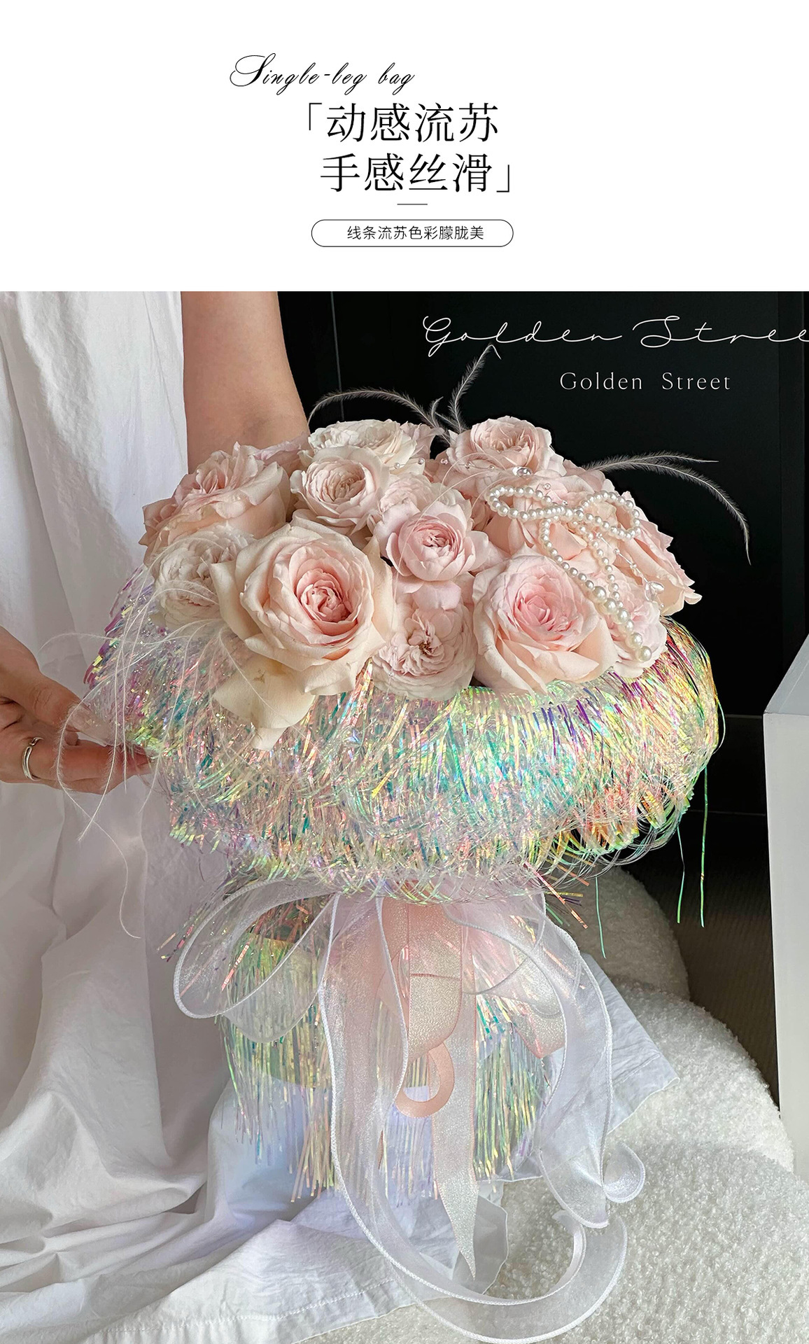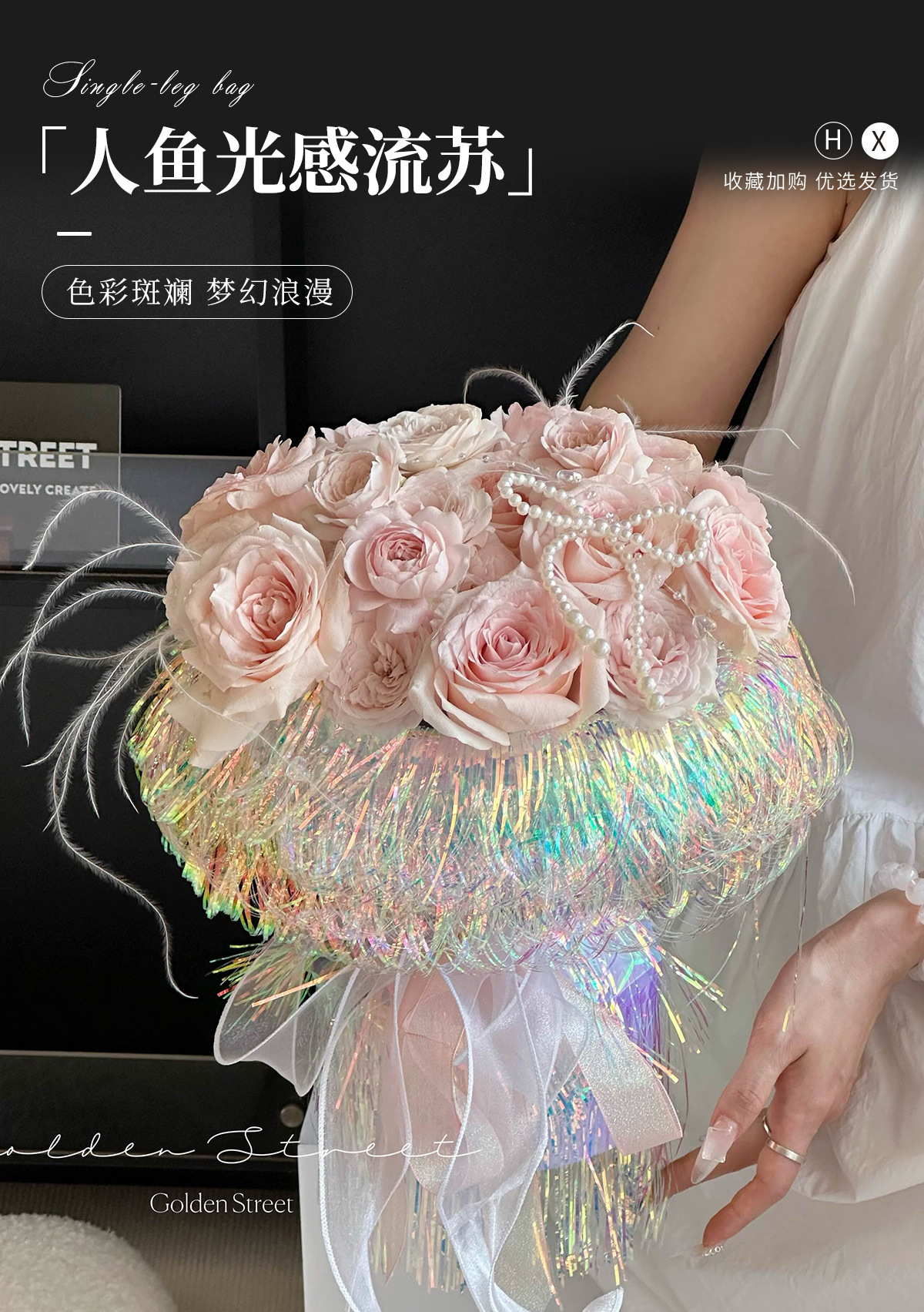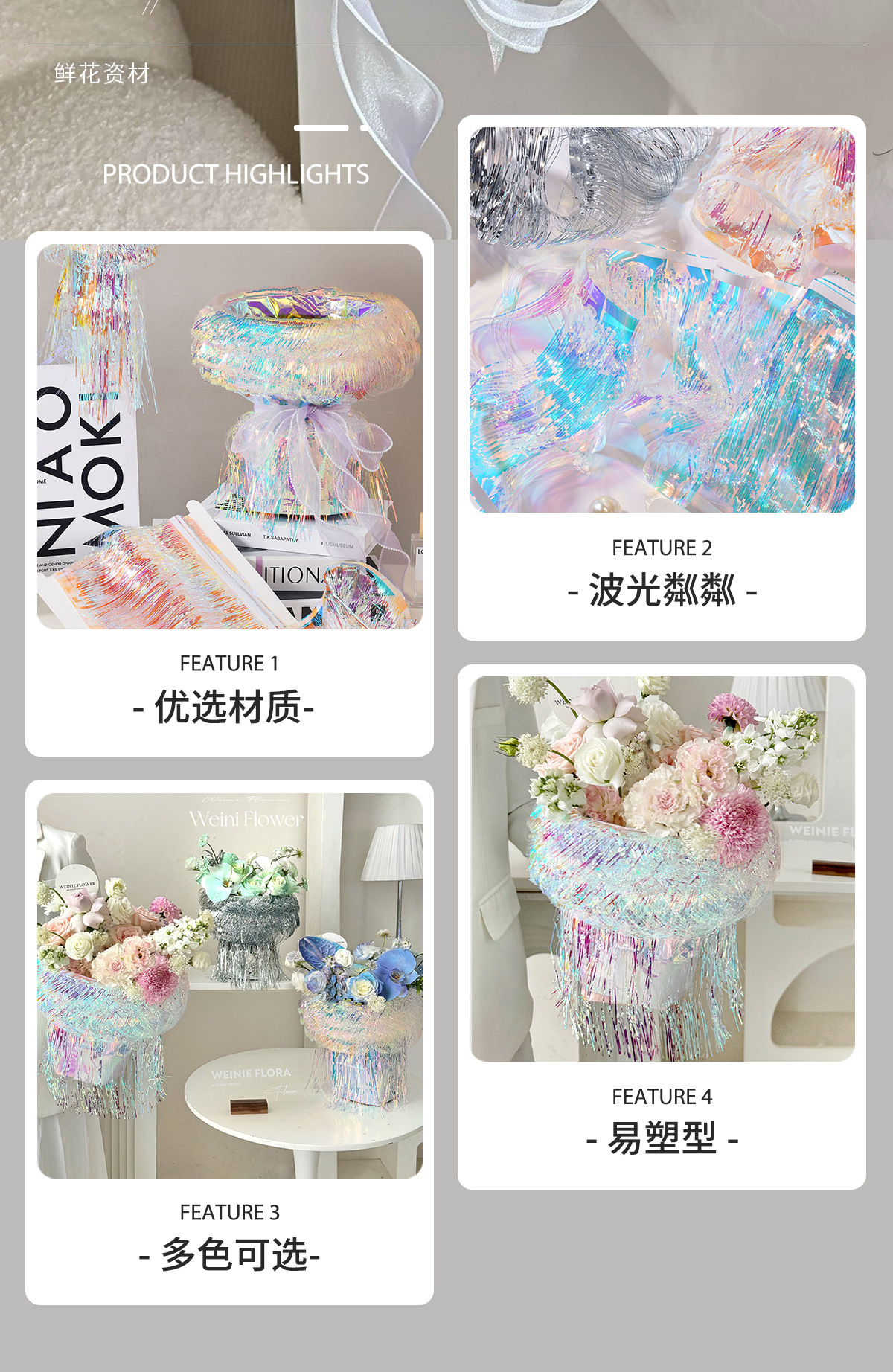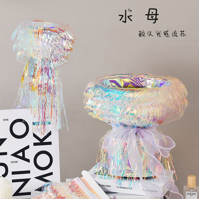人鱼姬光感流苏包花材料幻彩膜水母花艺镭射包花纸七夕包装纸