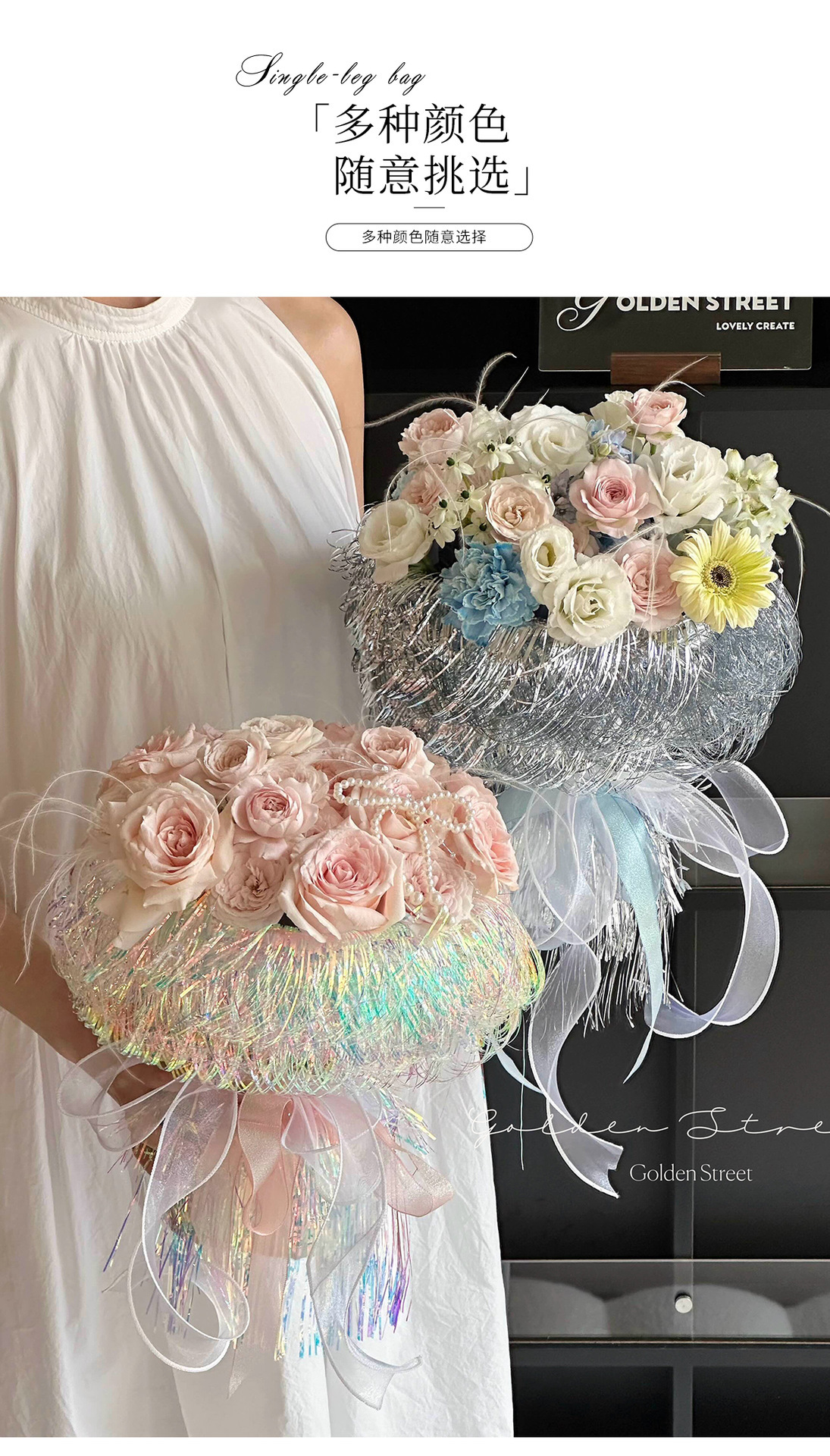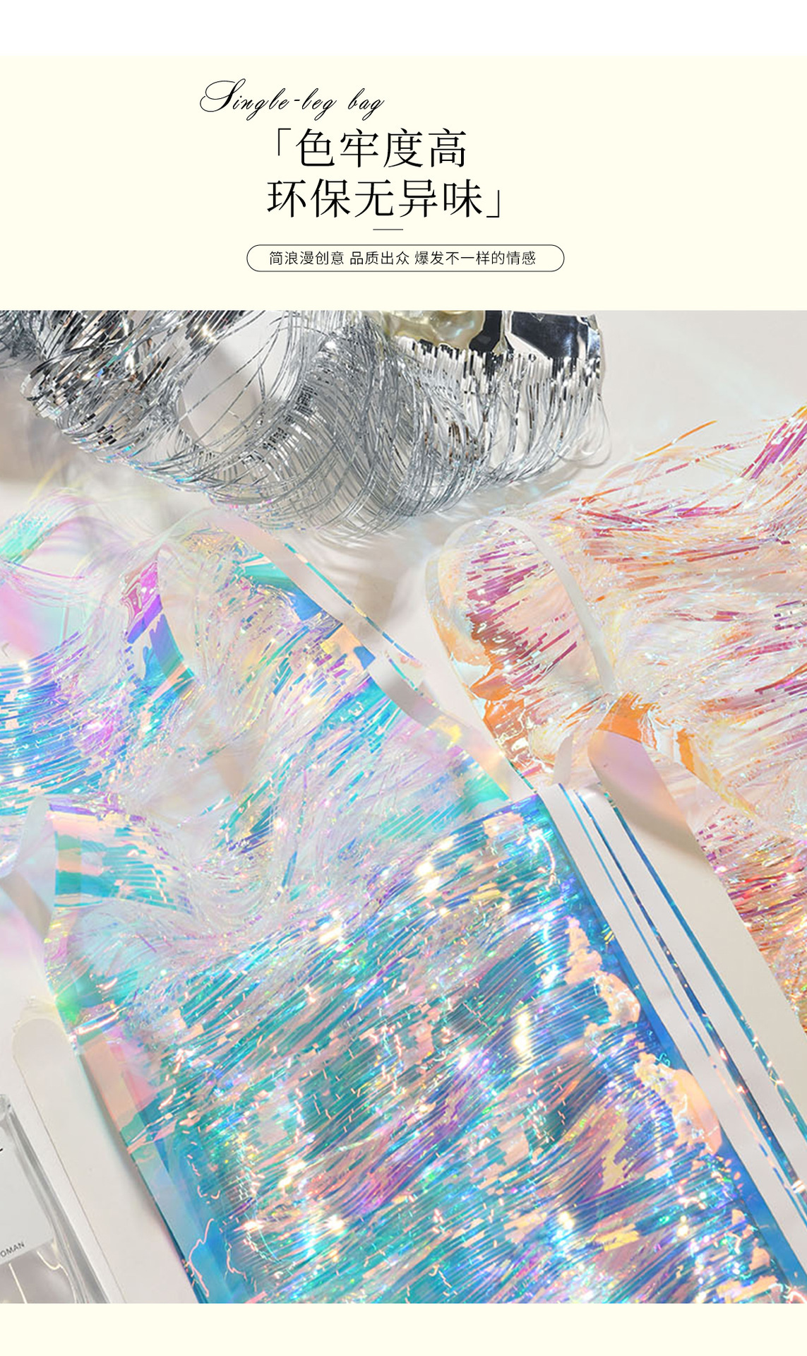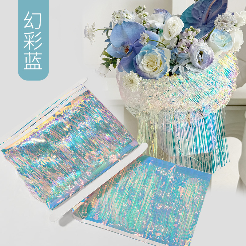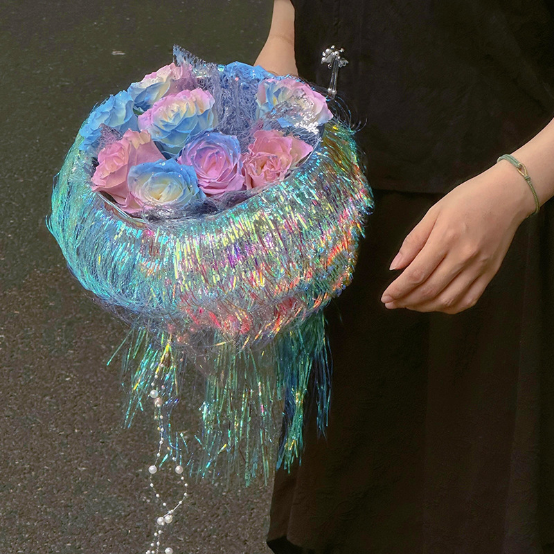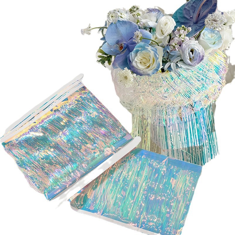 人鱼姬光感流苏包花材料幻彩膜水母花艺镭射包花纸七夕包装纸