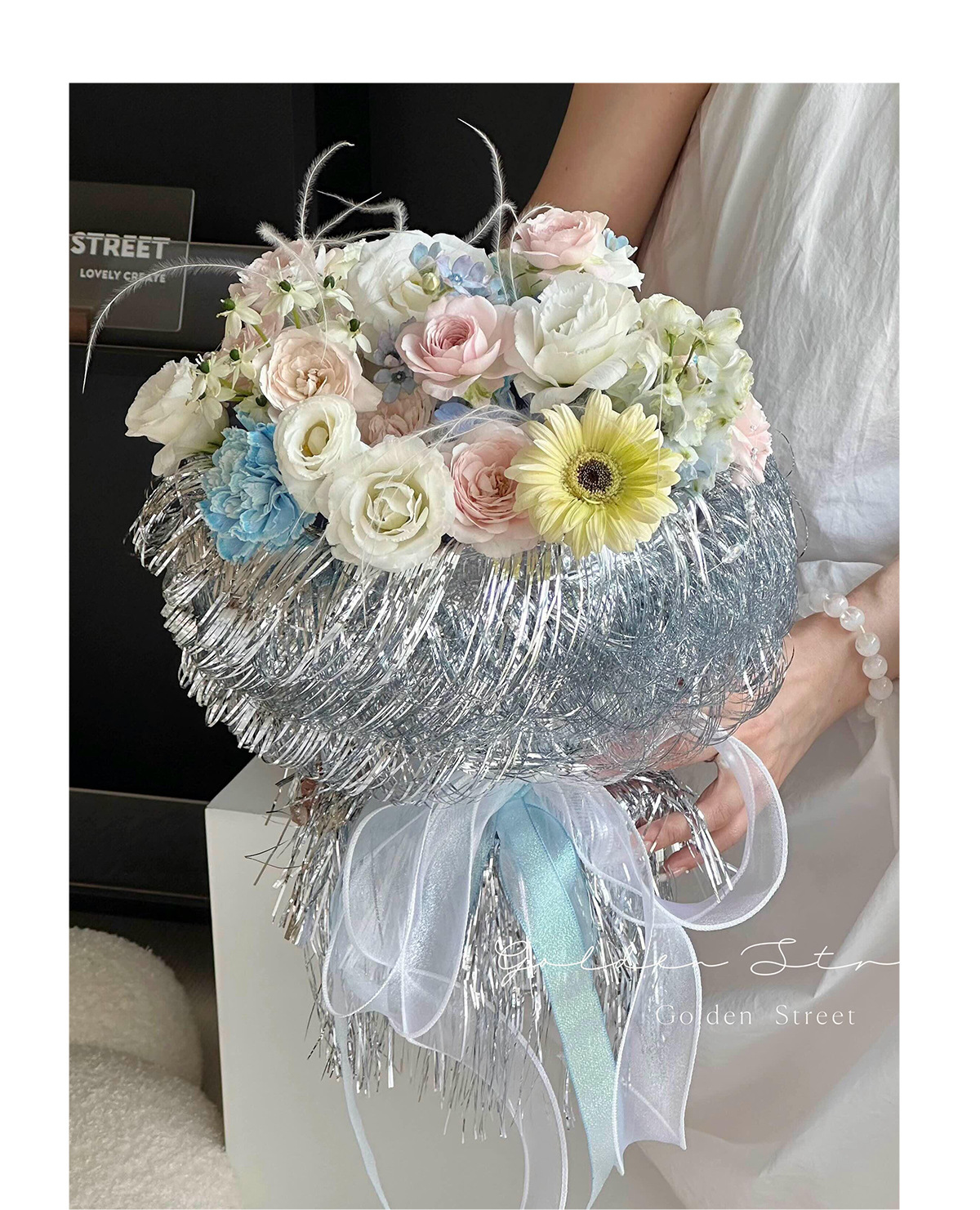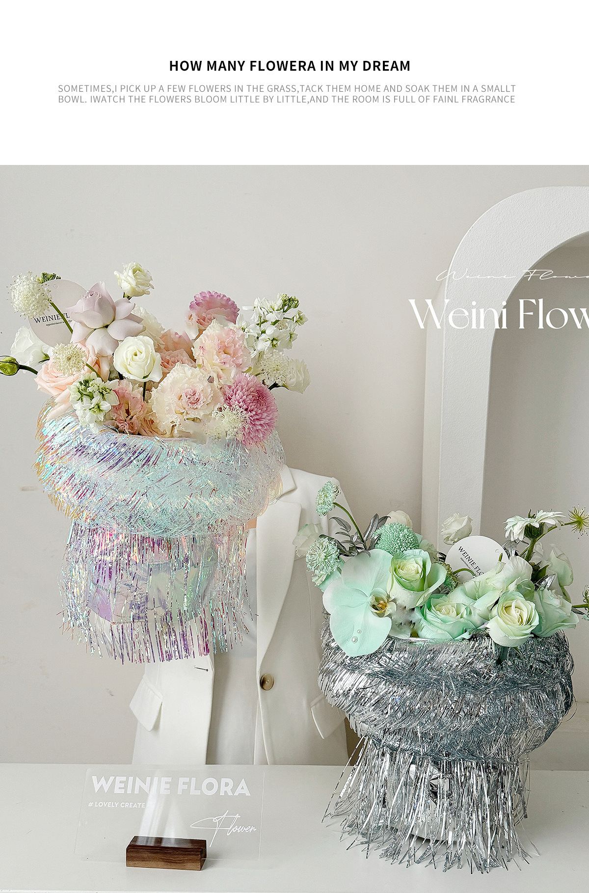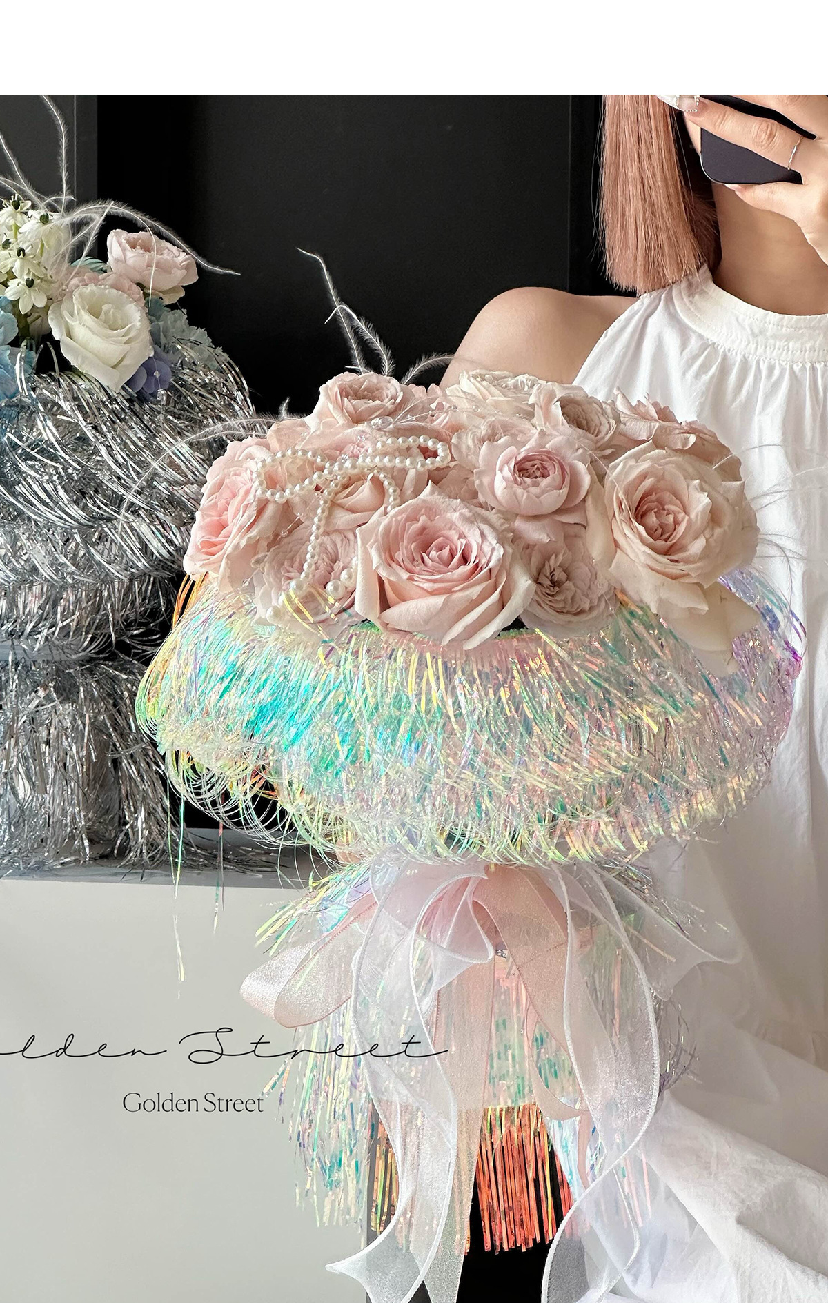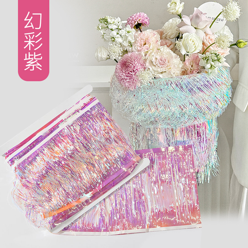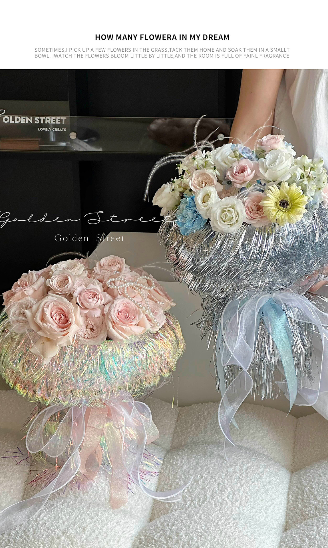 人鱼姬光感流苏包花材料幻彩膜水母花艺镭射包花纸七夕包装纸