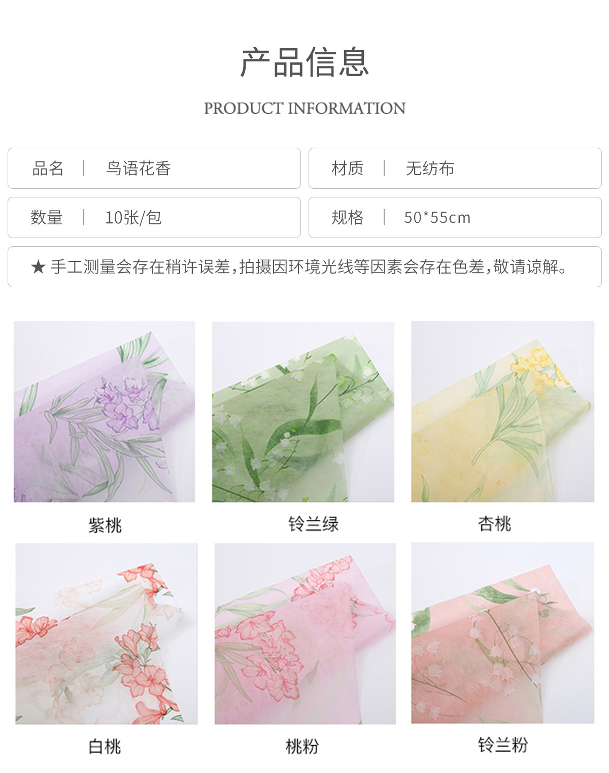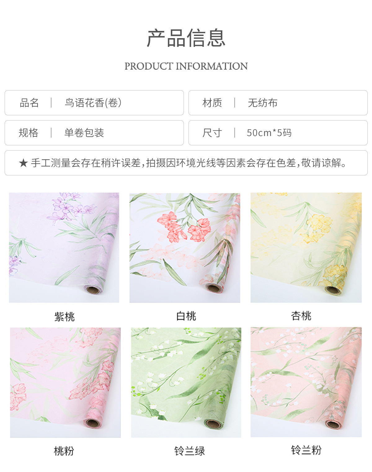 鸟语花香包花纸花店花艺包装材料打包纸无纺布鲜花包装七夕包装纸