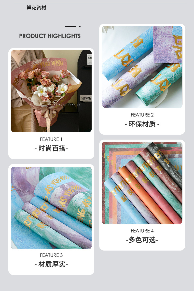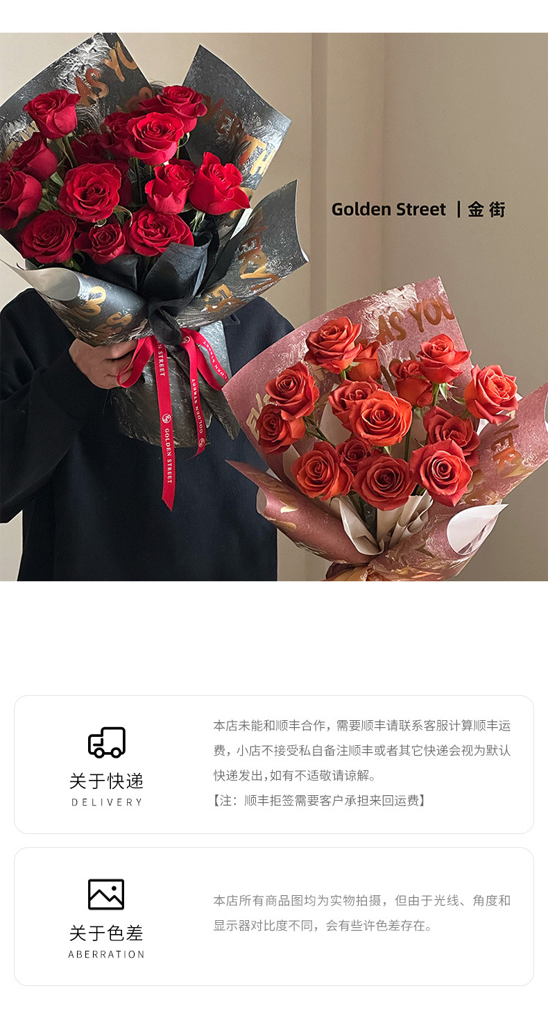 烫金浪漫派系列鲜花包装纸艺术纸花店花艺资材情人节花束包装纸