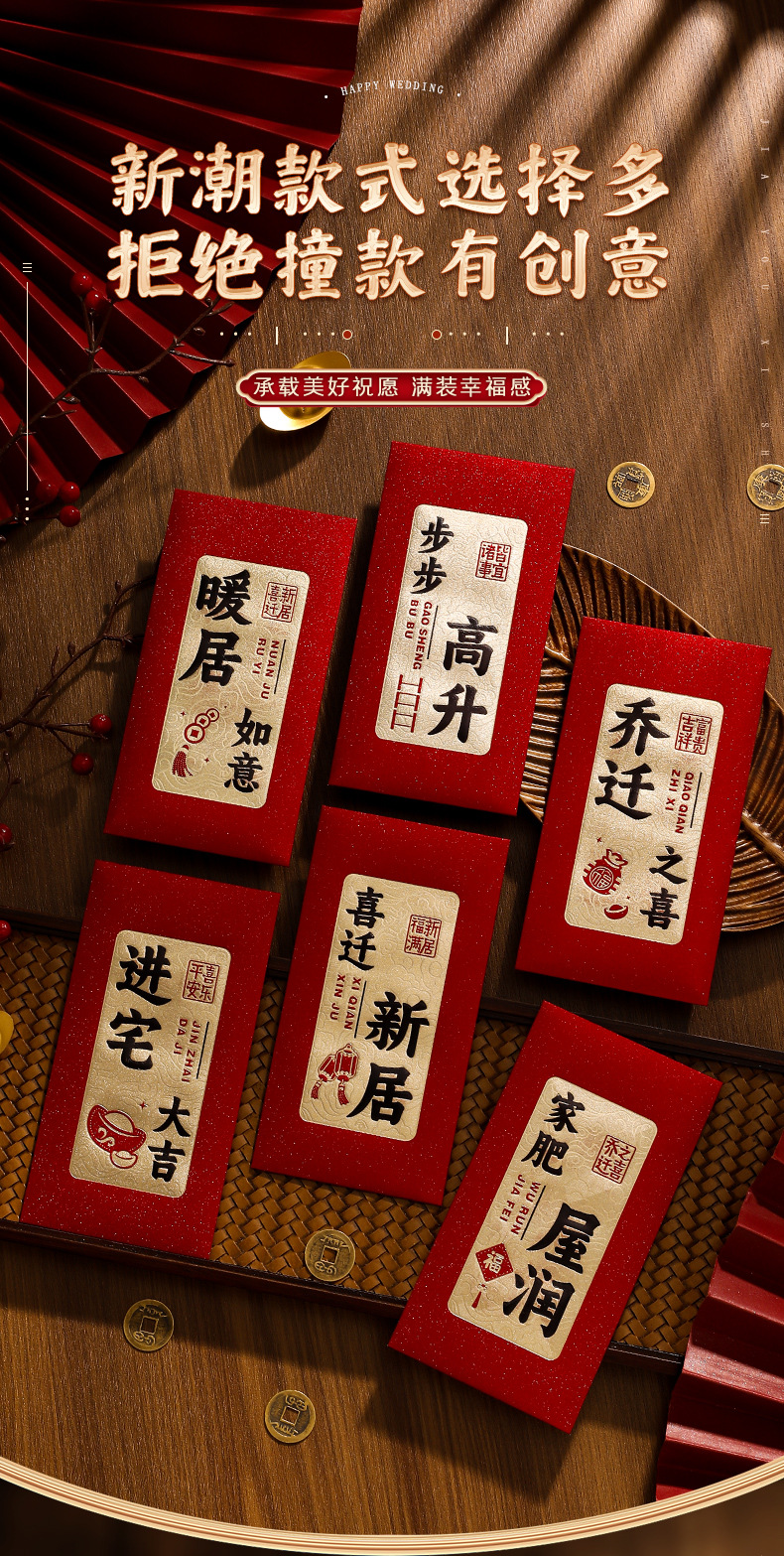 创意中式国风乔迁搬家书法红包新居入宅利是封送祝福小红包批发