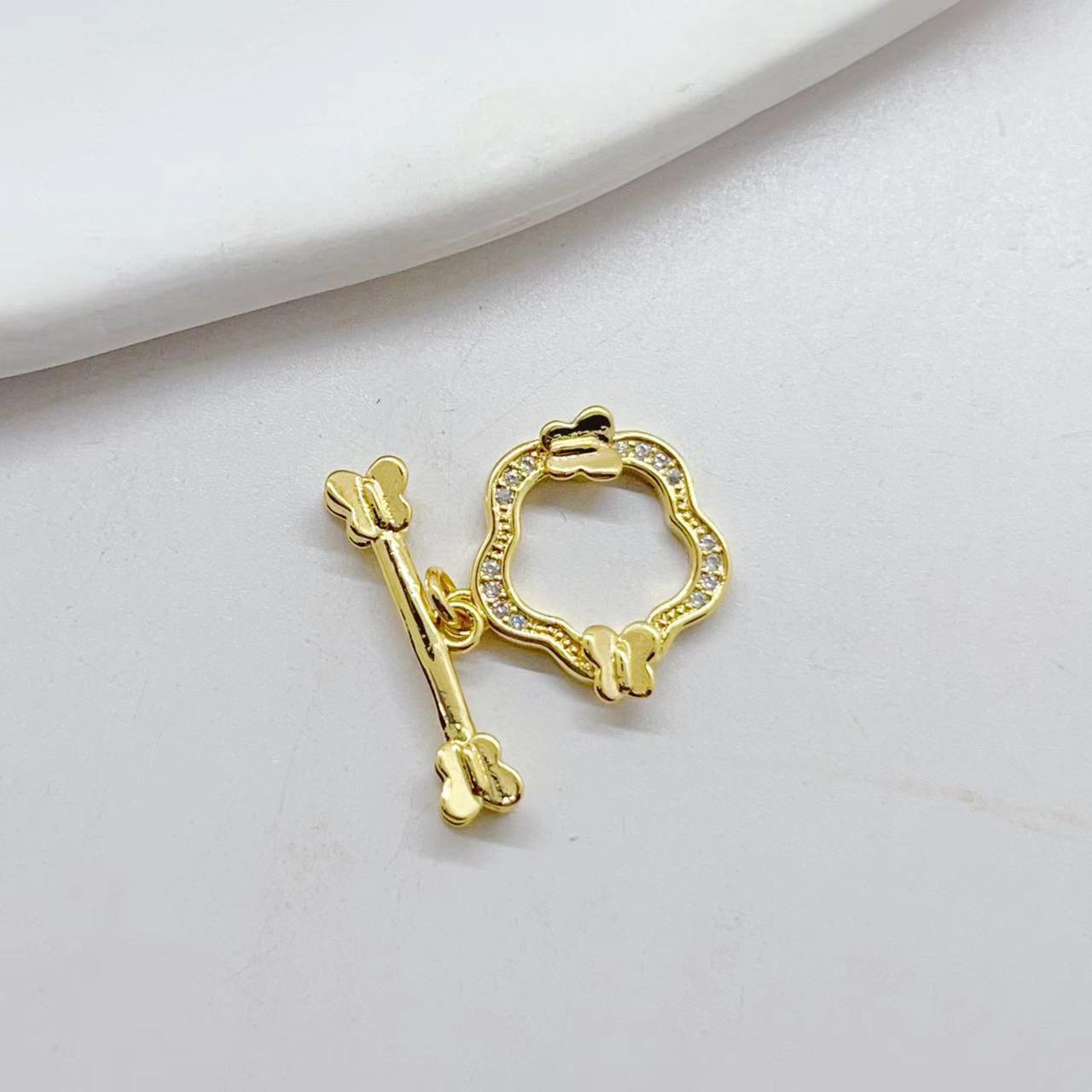铜包金微镶锆石花朵小蝴蝶OT链接扣DIY手工饰品手链项链耳饰配件