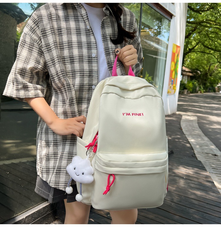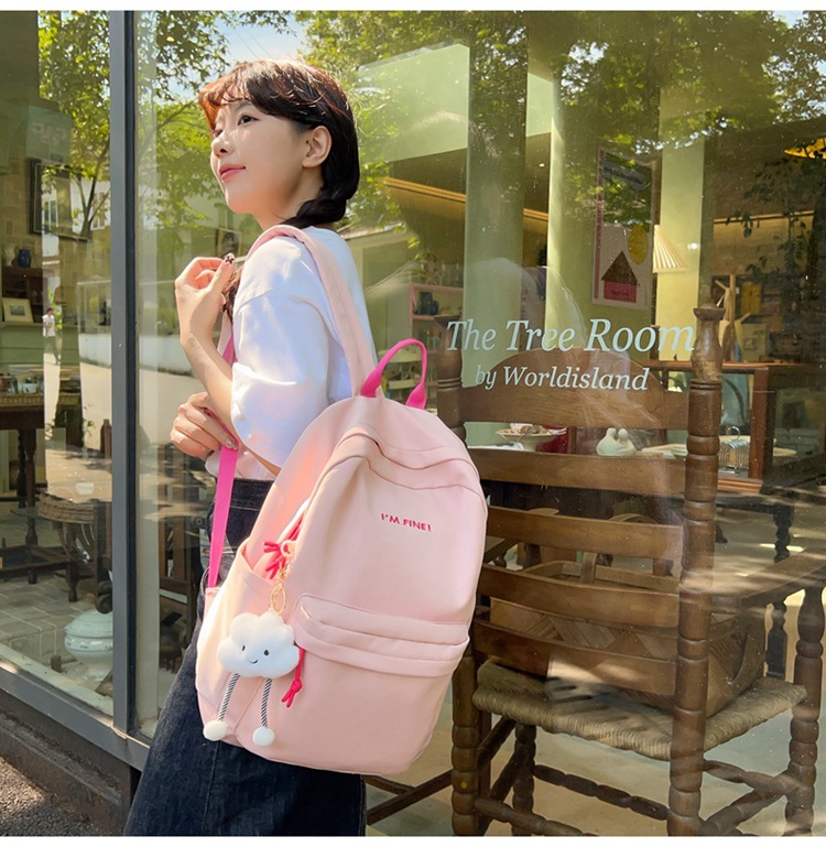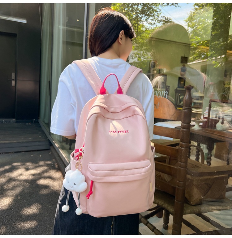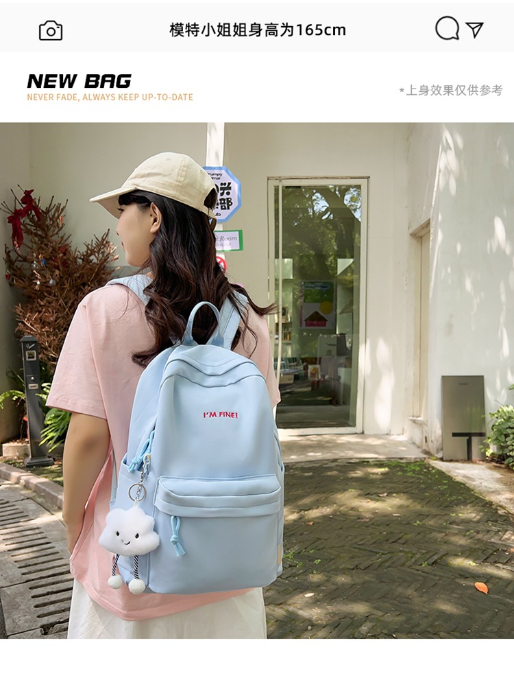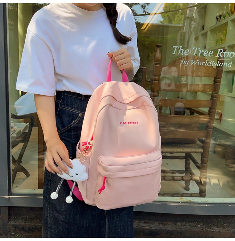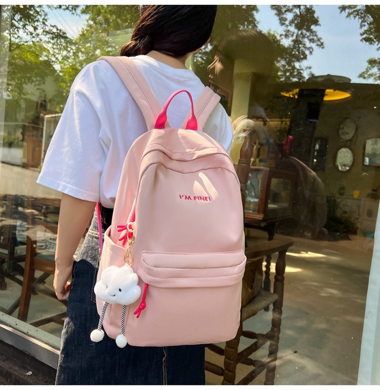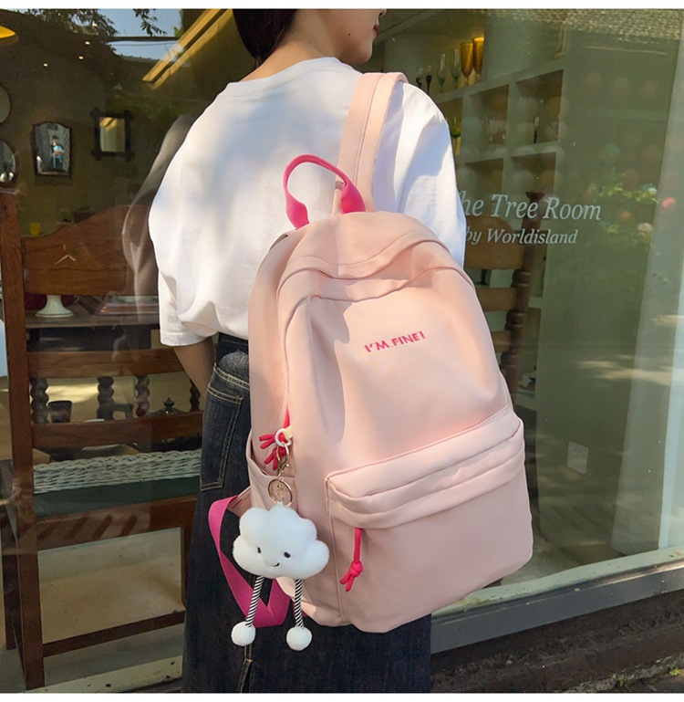 新款纯色字母清新轻便双肩背包 高颜值校园双肩包