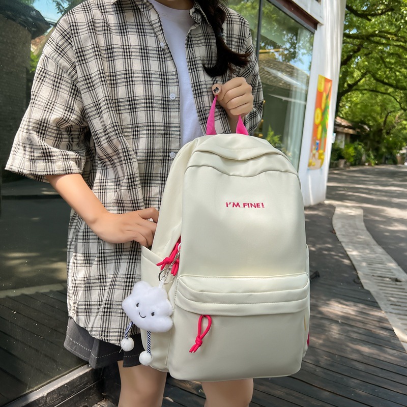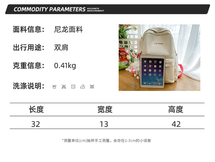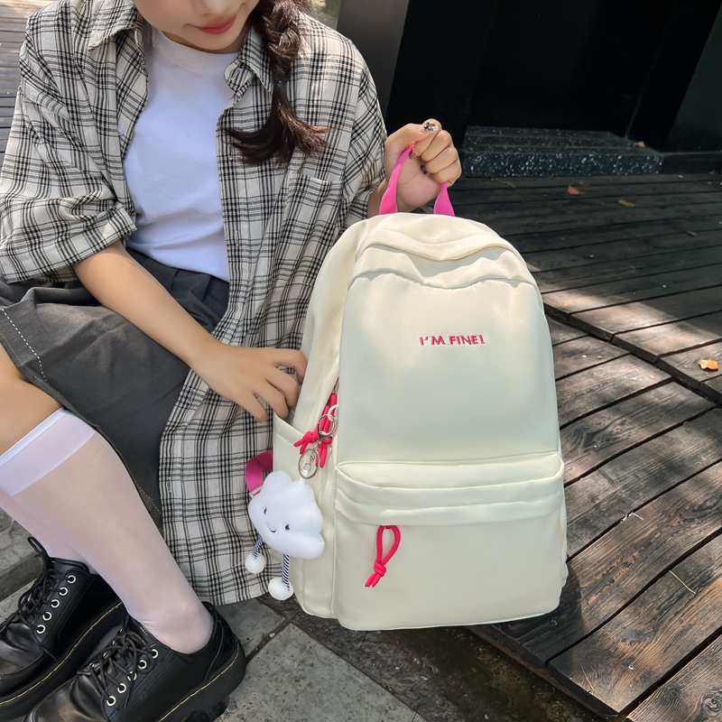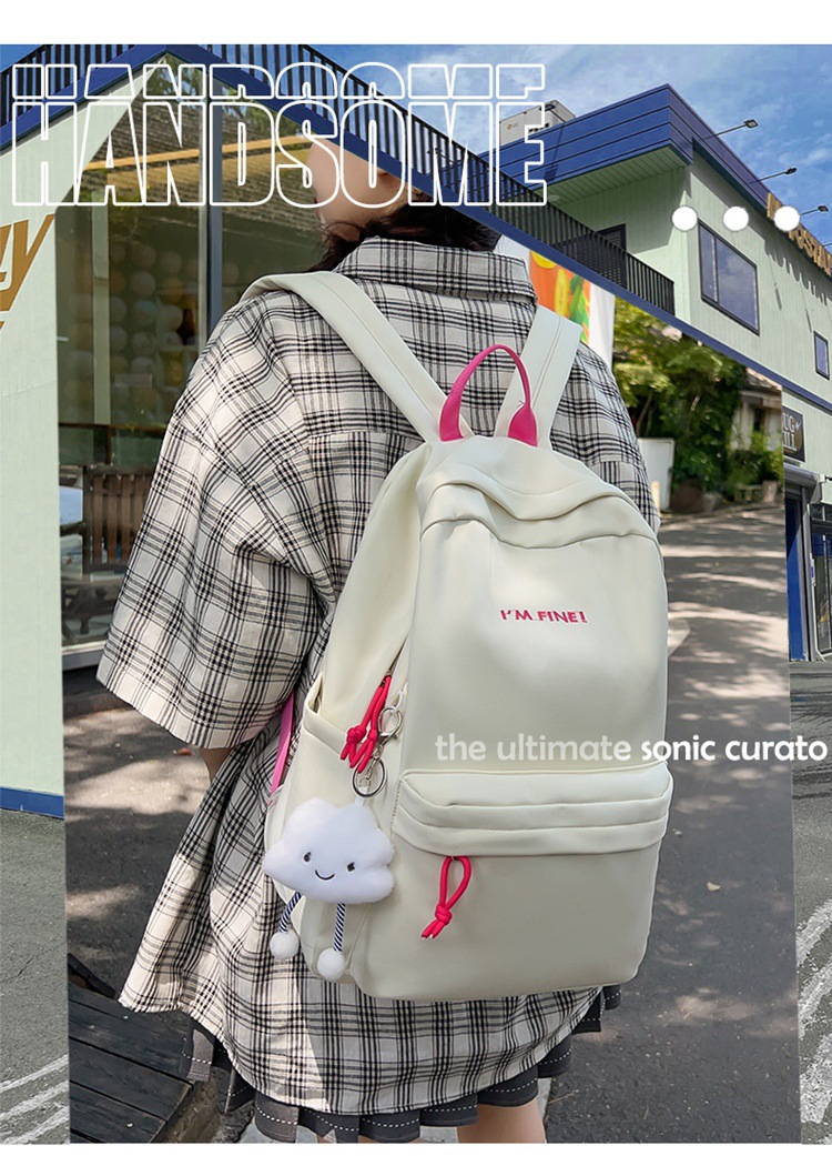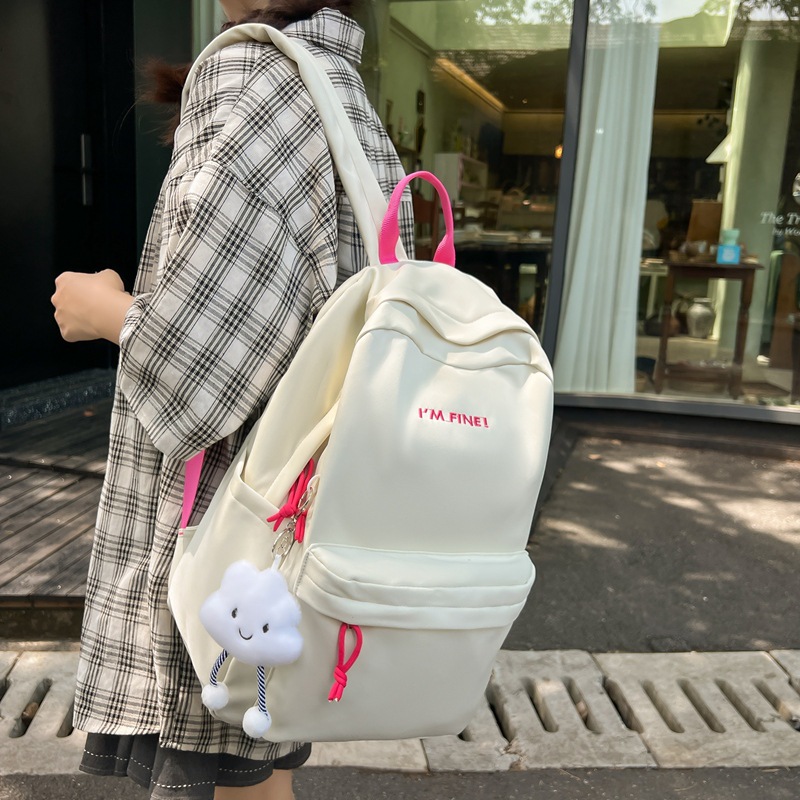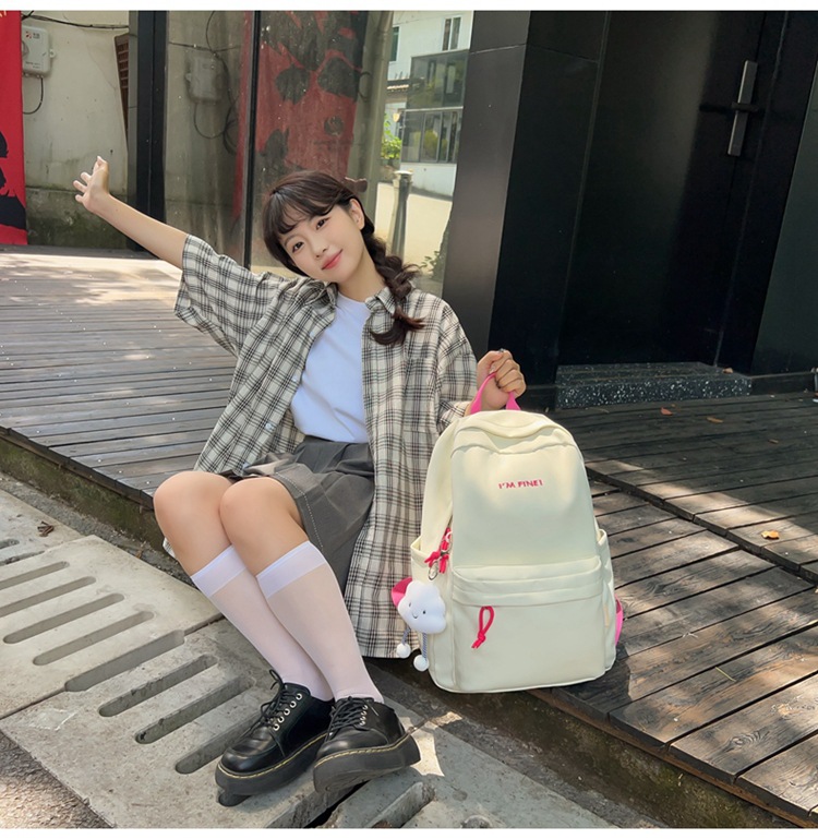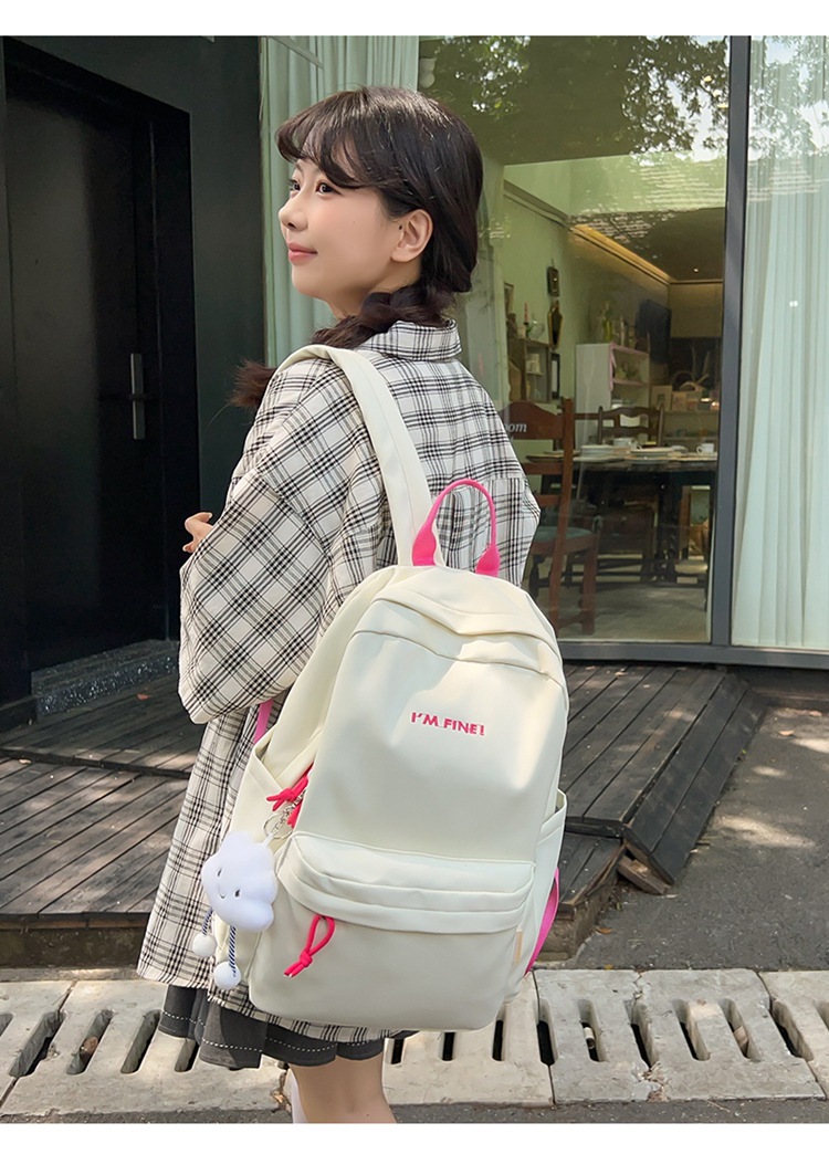 新款纯色字母清新轻便双肩背包 高颜值校园双肩包