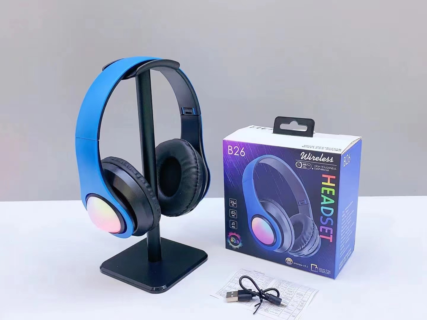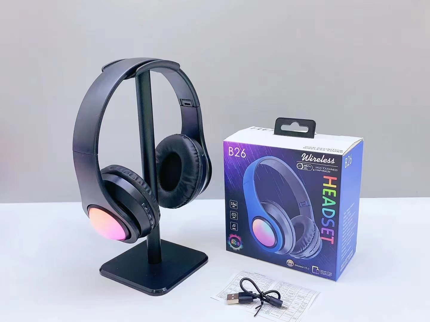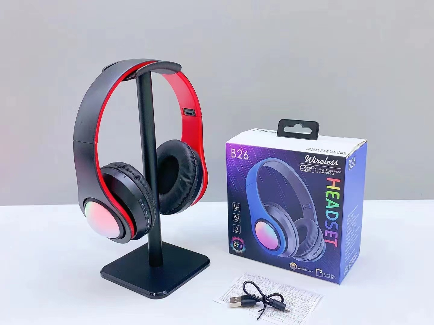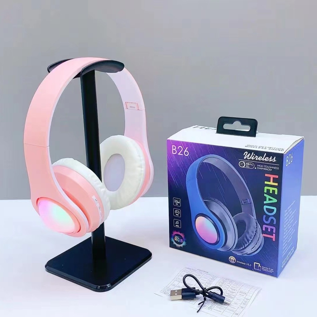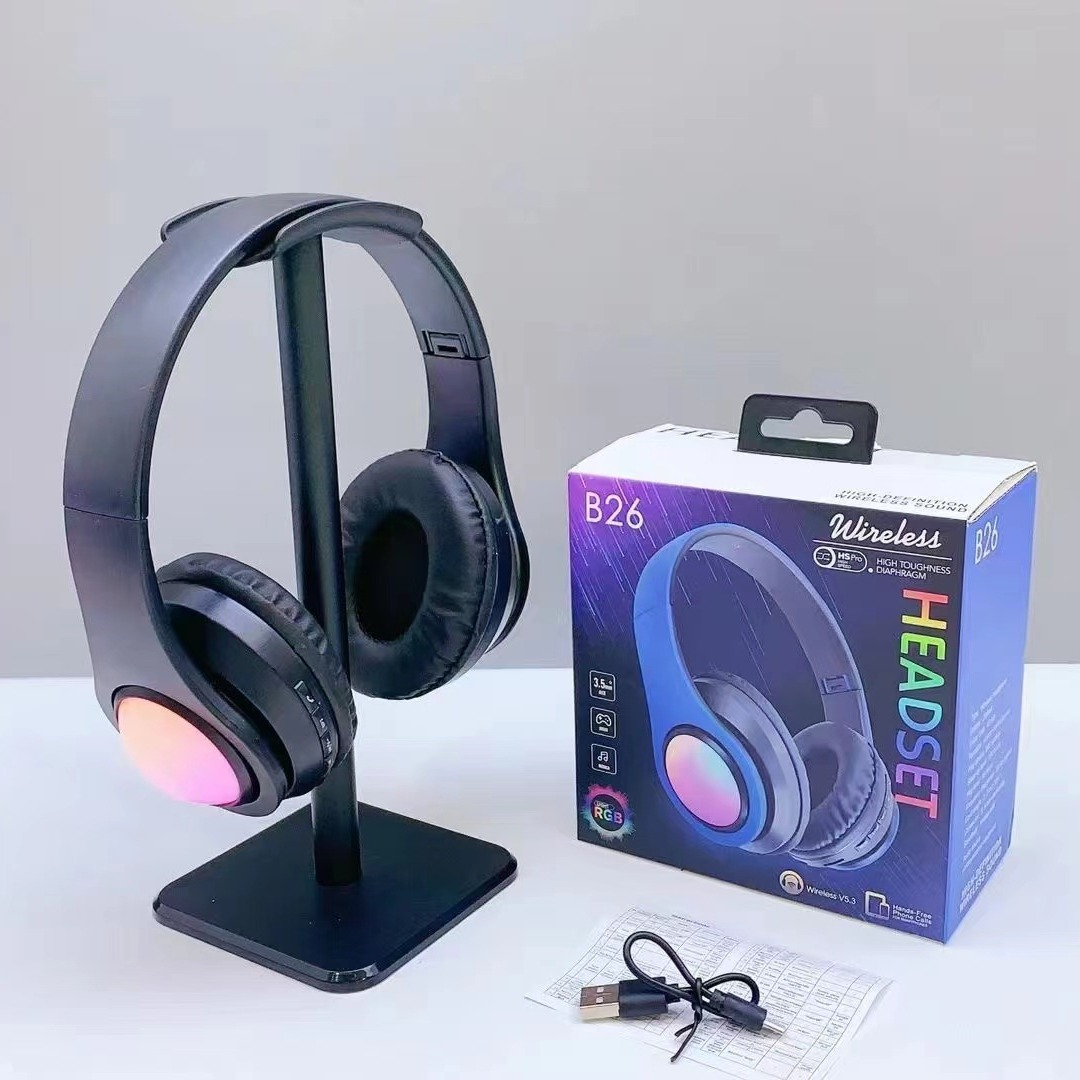 跨境新款B26 发光无线耳机头带通话折叠插卡头戴式蓝牙耳机耳麦