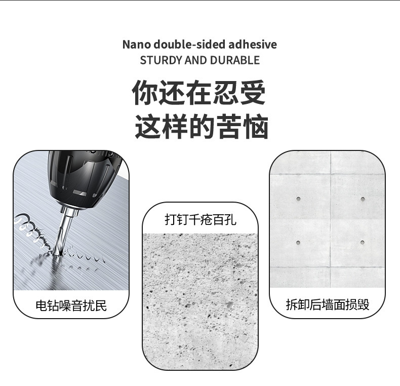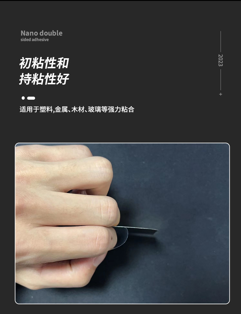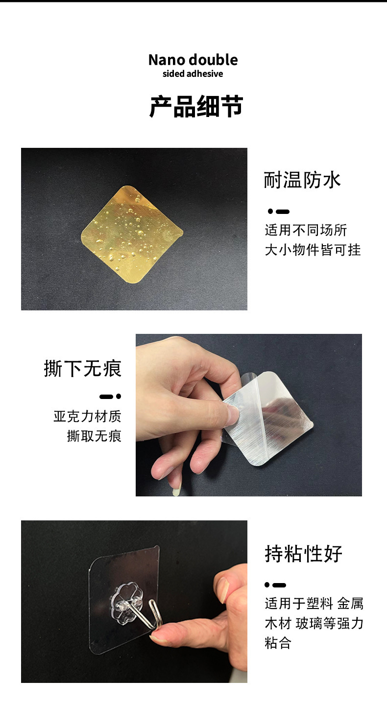 外贸批发纳米单面胶片 黑色亚克力可移胶无痕挂钩固定强力魔术贴