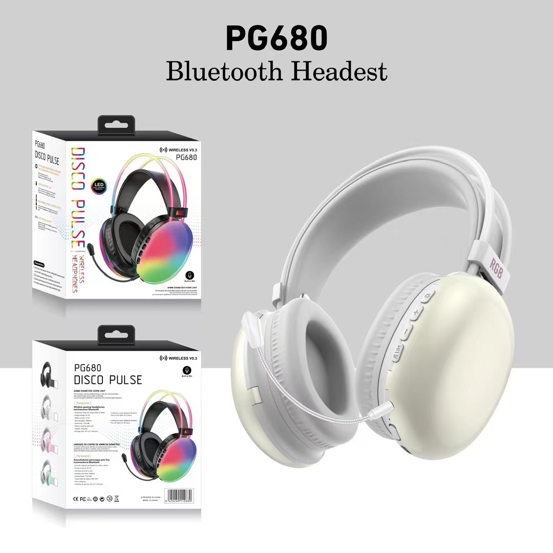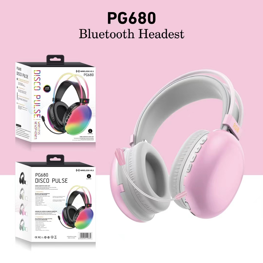 跨境新款 PG680头戴式蓝牙耳机RGB流光炫彩灯话务电竞游戏耳机