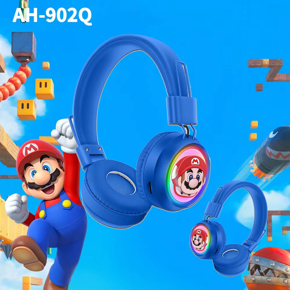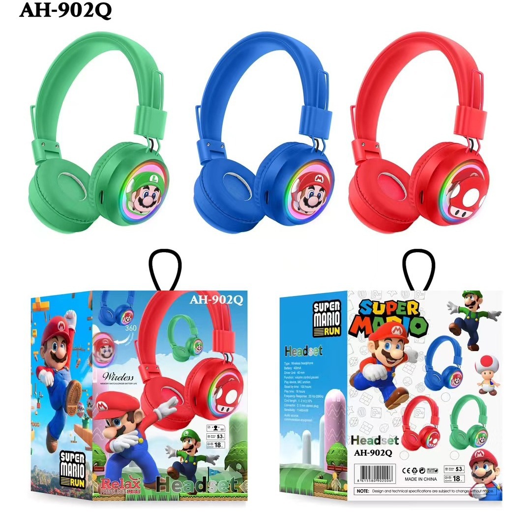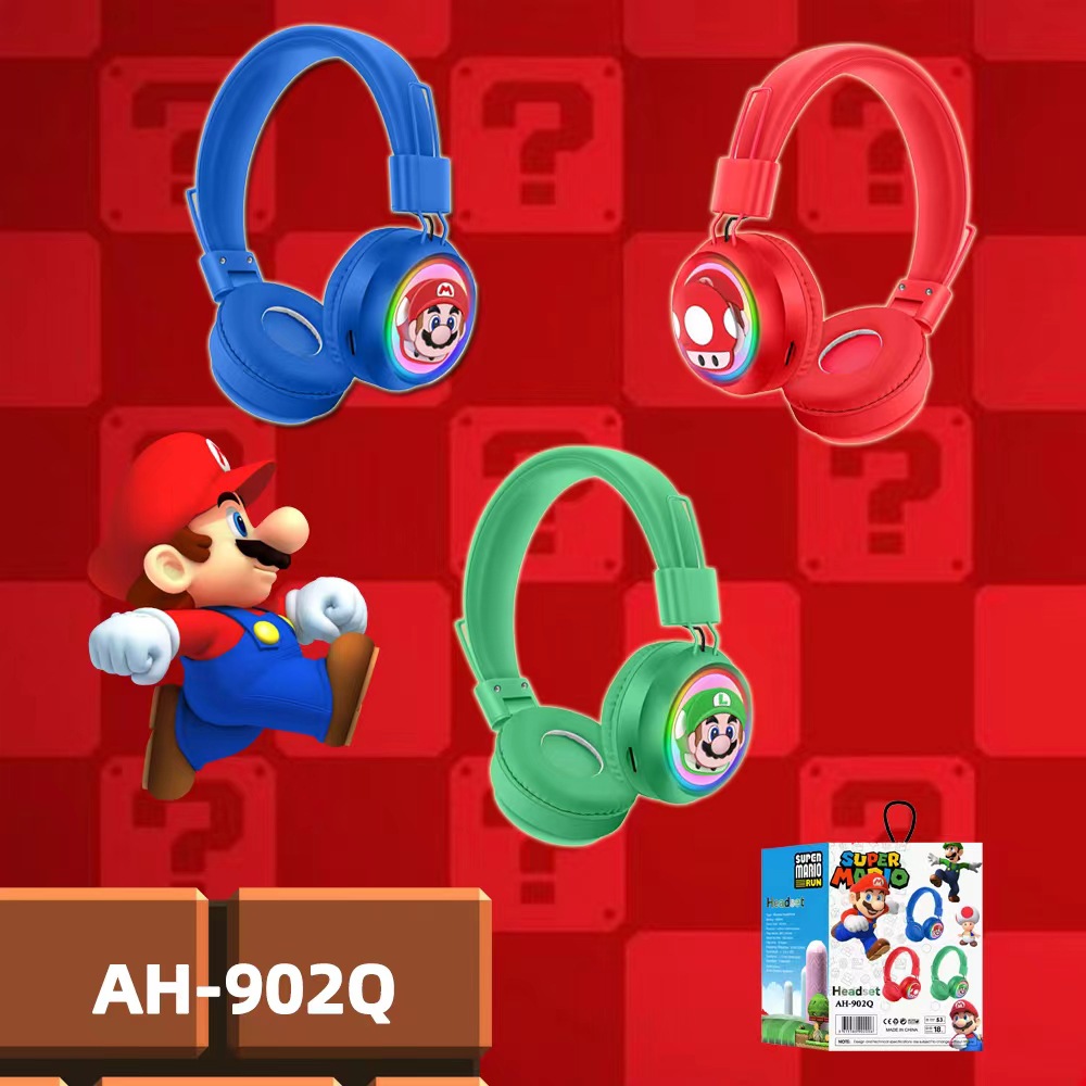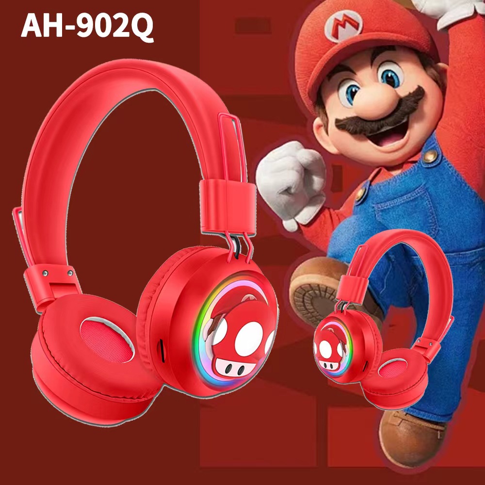 新品爆款AH-902Q头戴式蓝牙耳机RGB灯卡通可爱图案无线耳麦