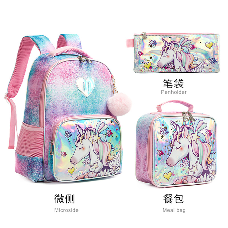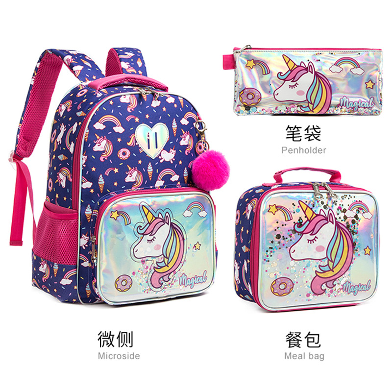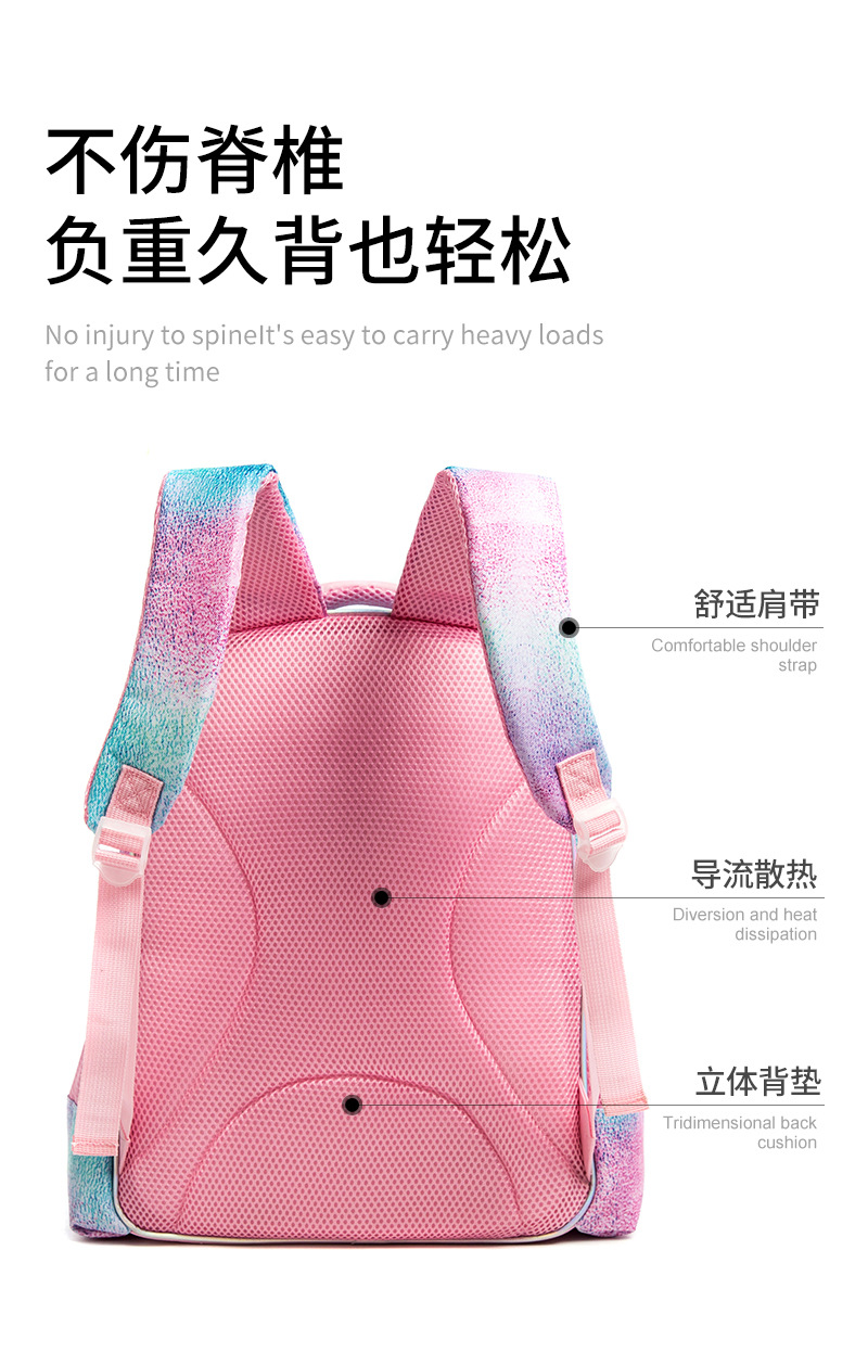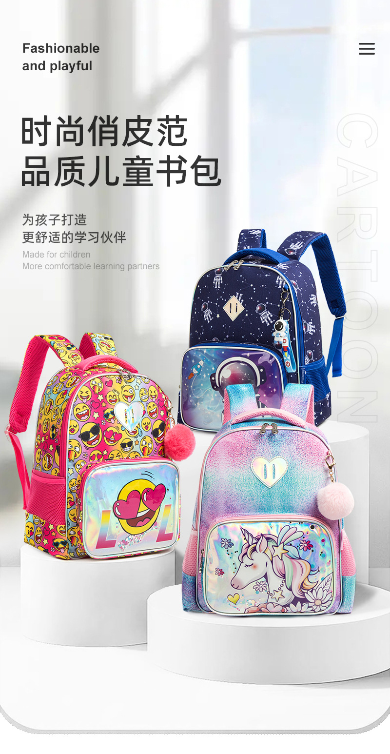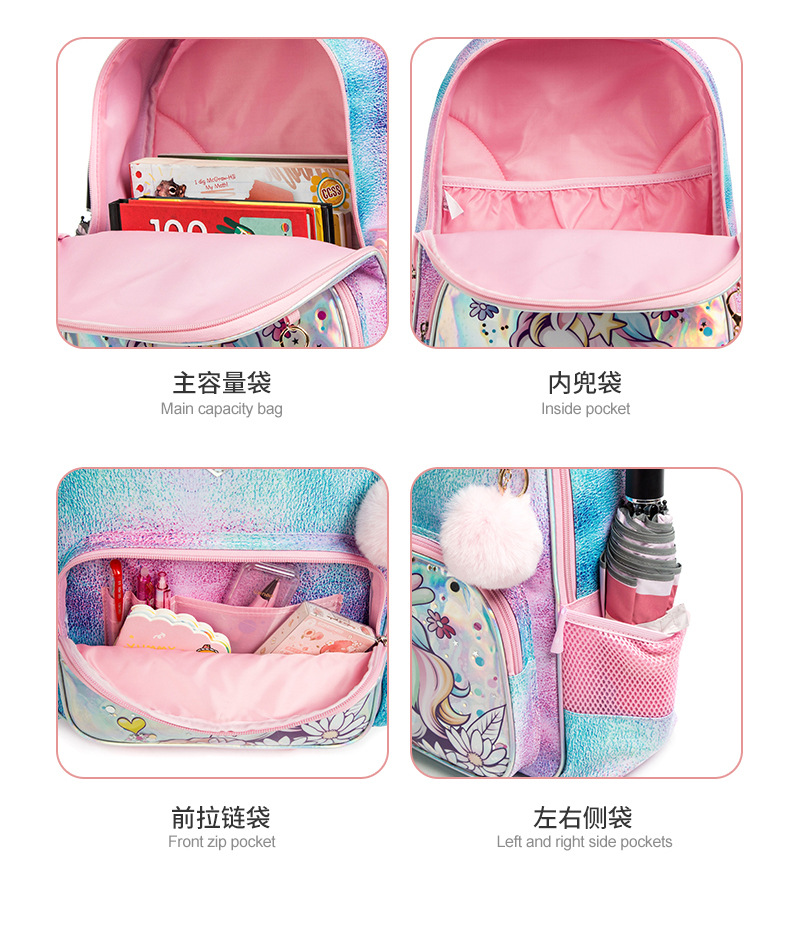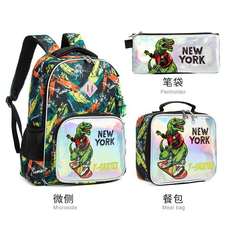 跨境新款幻彩卡通16寸小学生通用背包减负透气儿童可爱书包三件套