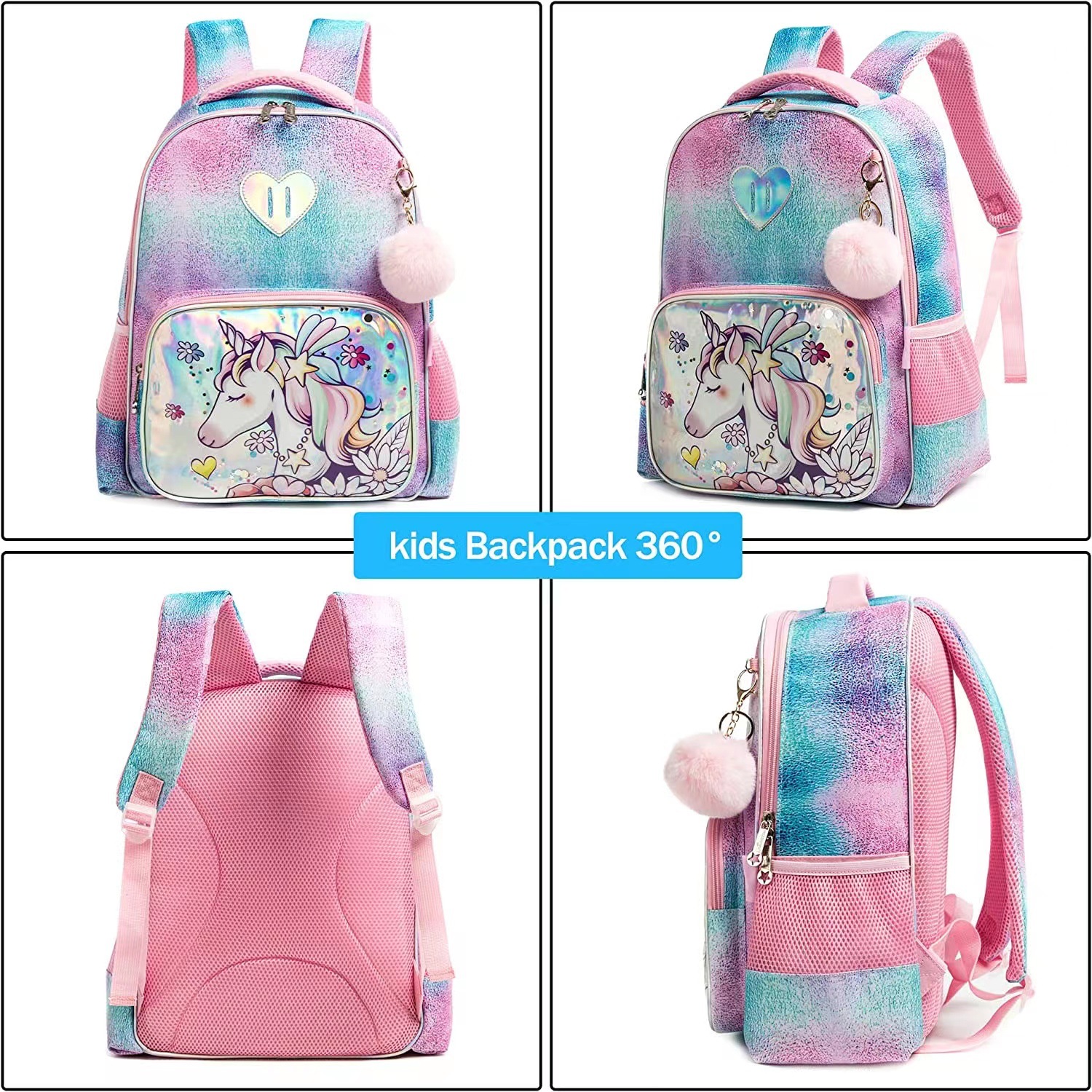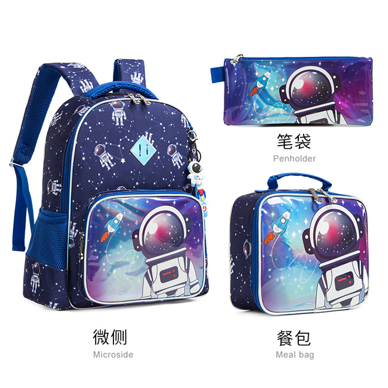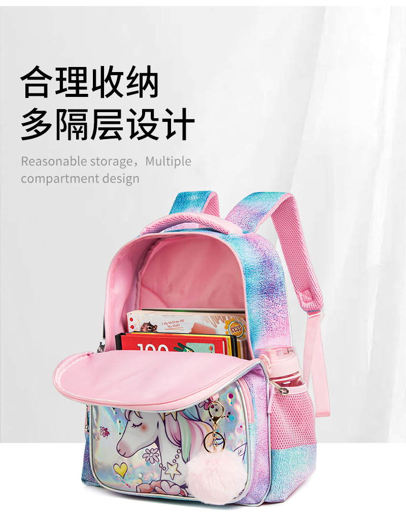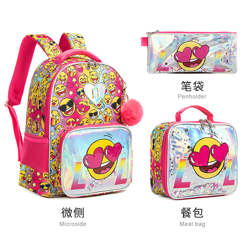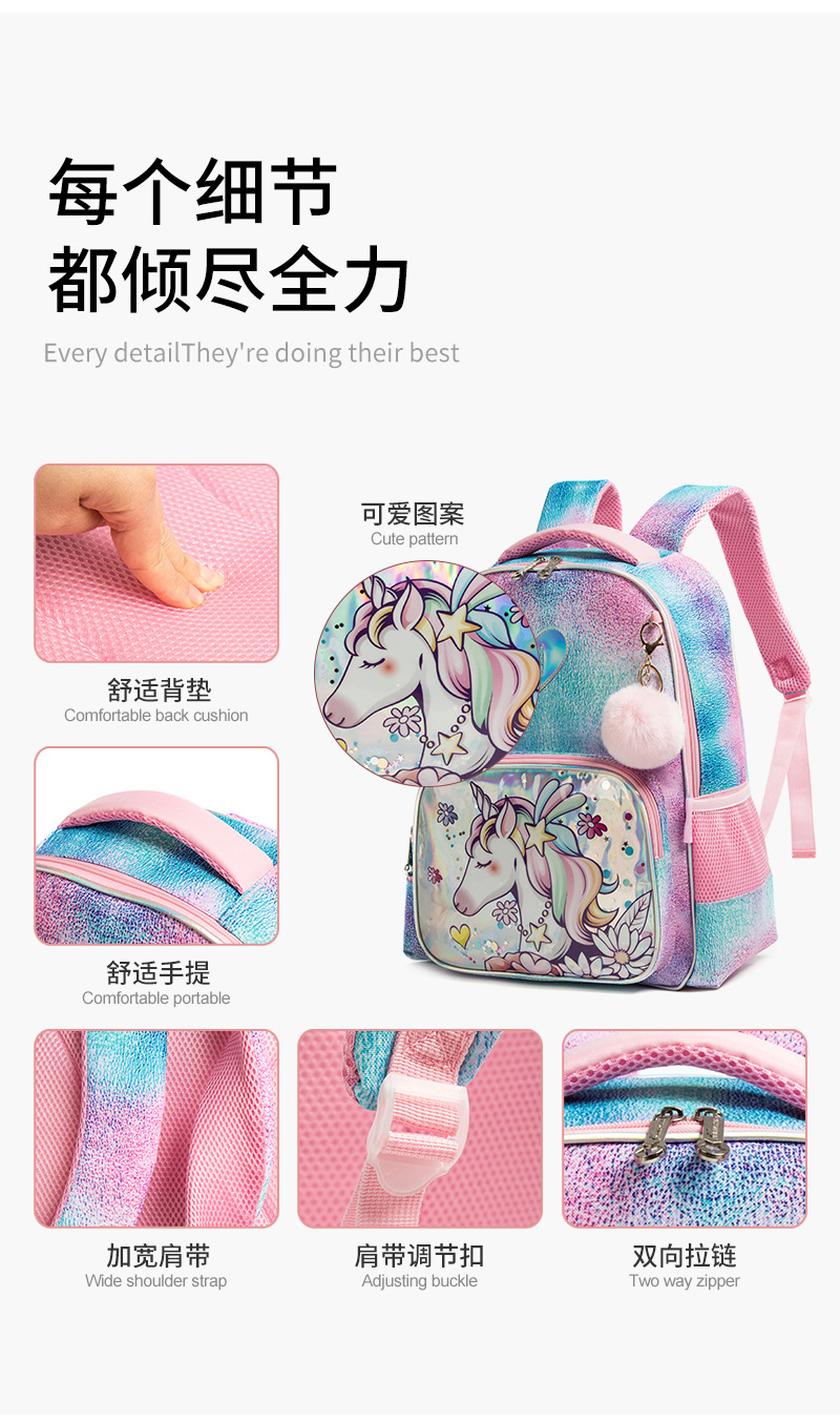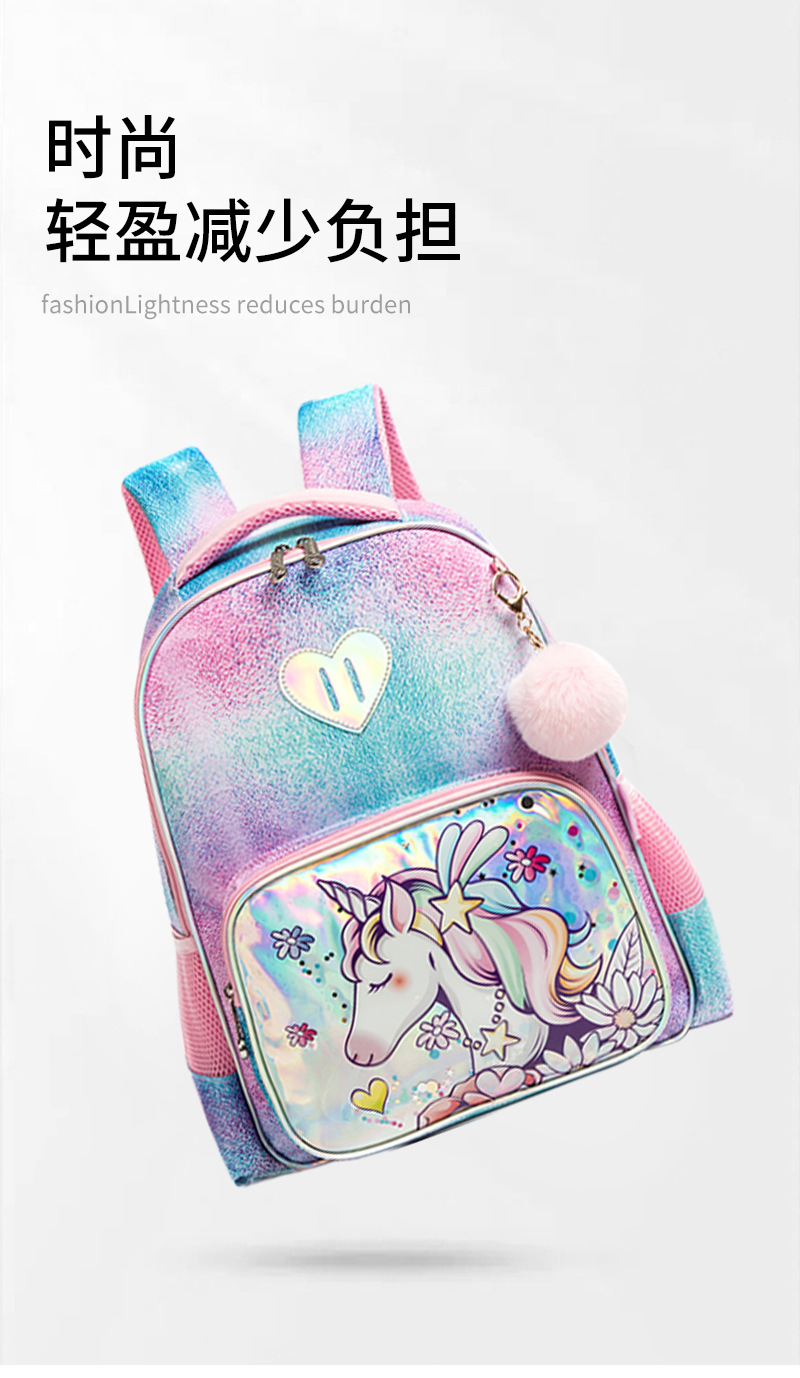 跨境新款幻彩卡通16寸小学生通用背包减负透气儿童可爱书包三件套