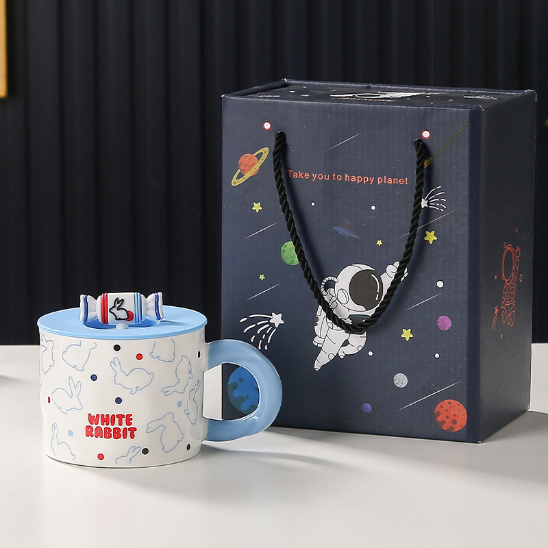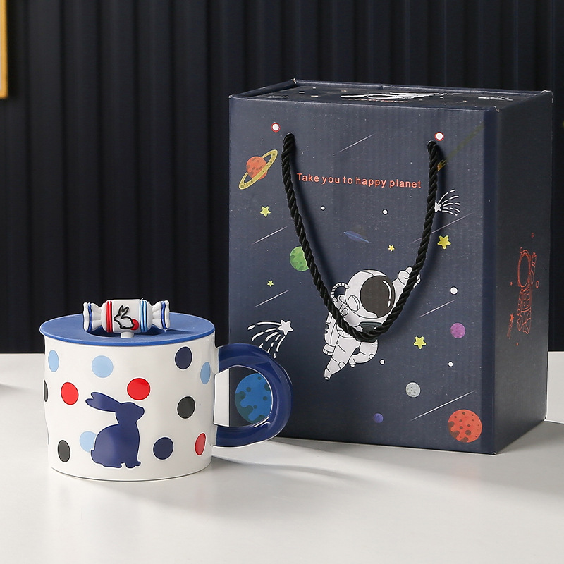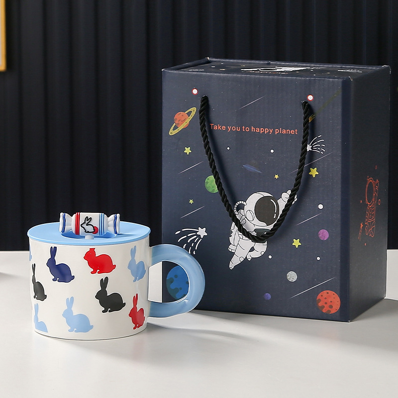 大白兔马克杯创意奶糖带盖高颜值陶瓷杯大容量女生水杯情侣早餐杯