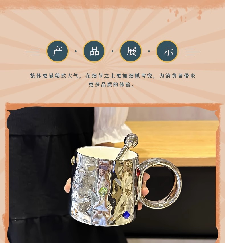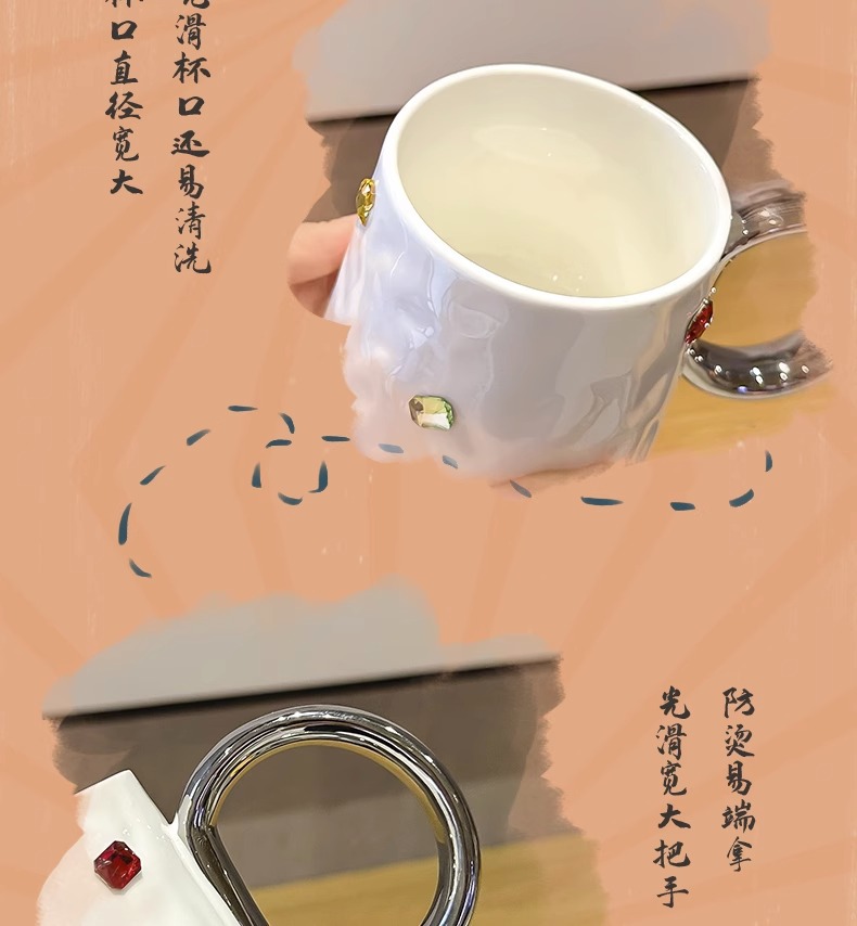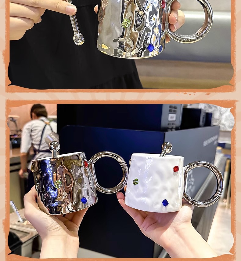 轻奢高级感小众设计宝石马克杯家用杯子陶瓷高颜值办公室情侣对杯