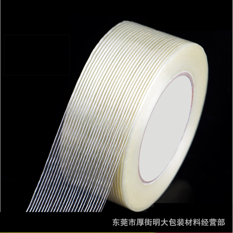 厂家直销 条纹纤维胶带 强力透明纤维胶模具电池捆绑胶带不残胶带