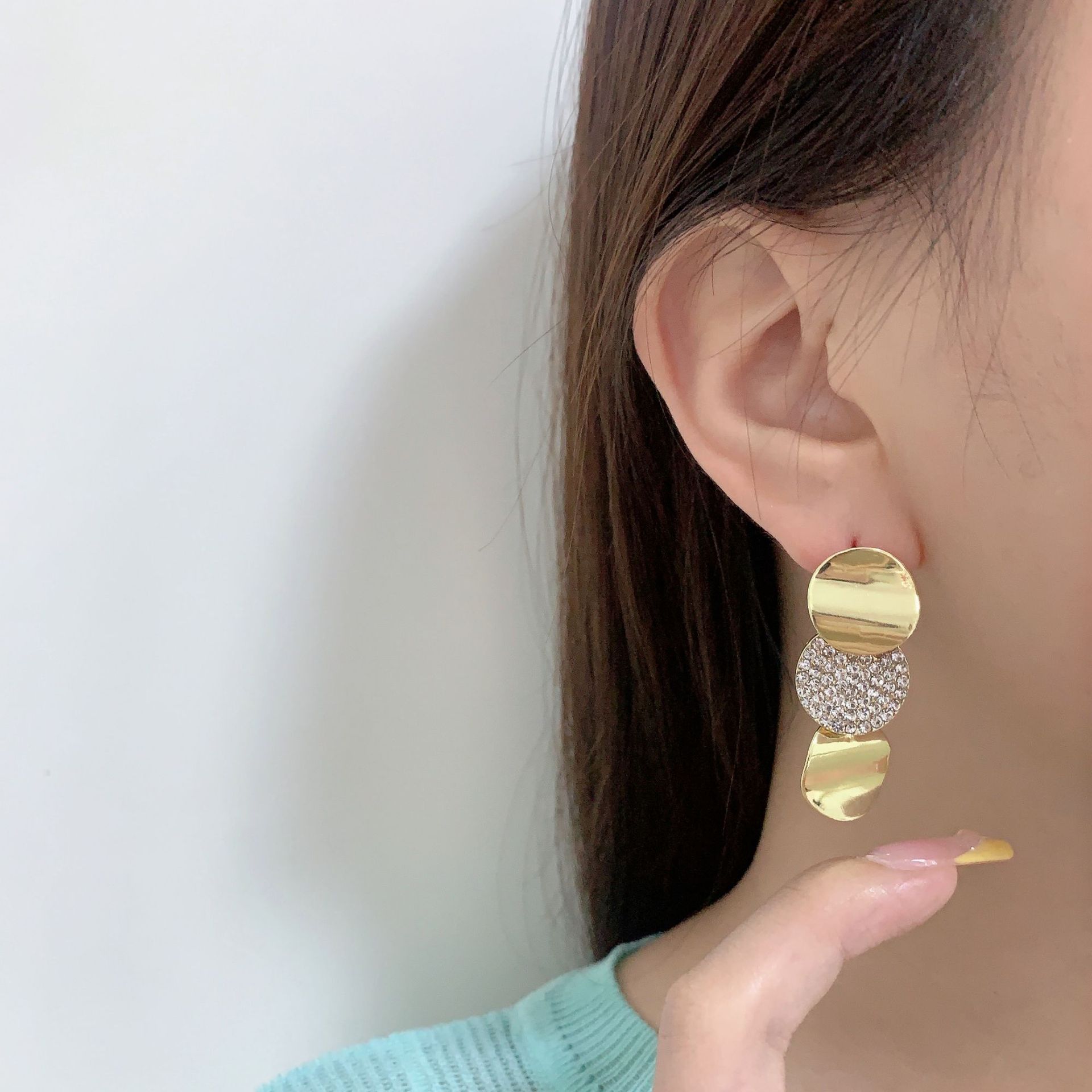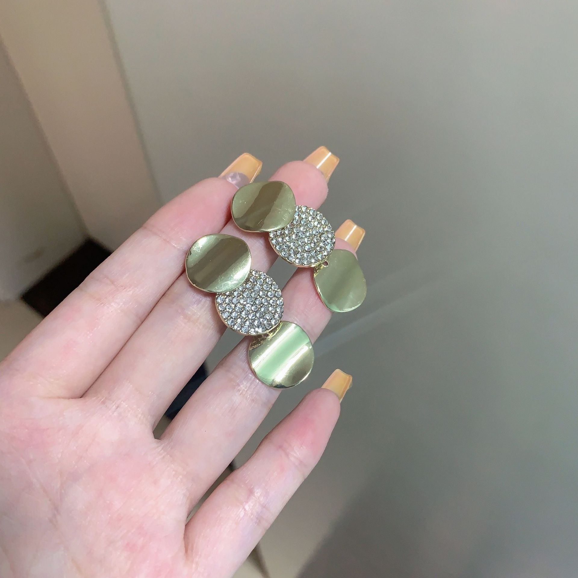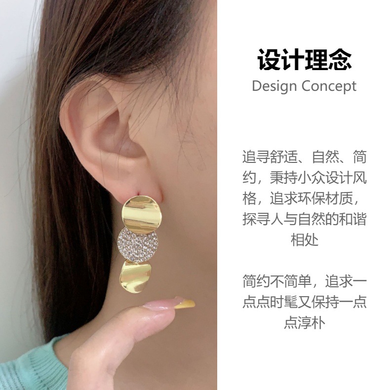 超闪金色圆片耳环2024年新款银针耳坠小众独特耳饰高级感轻奢耳钉