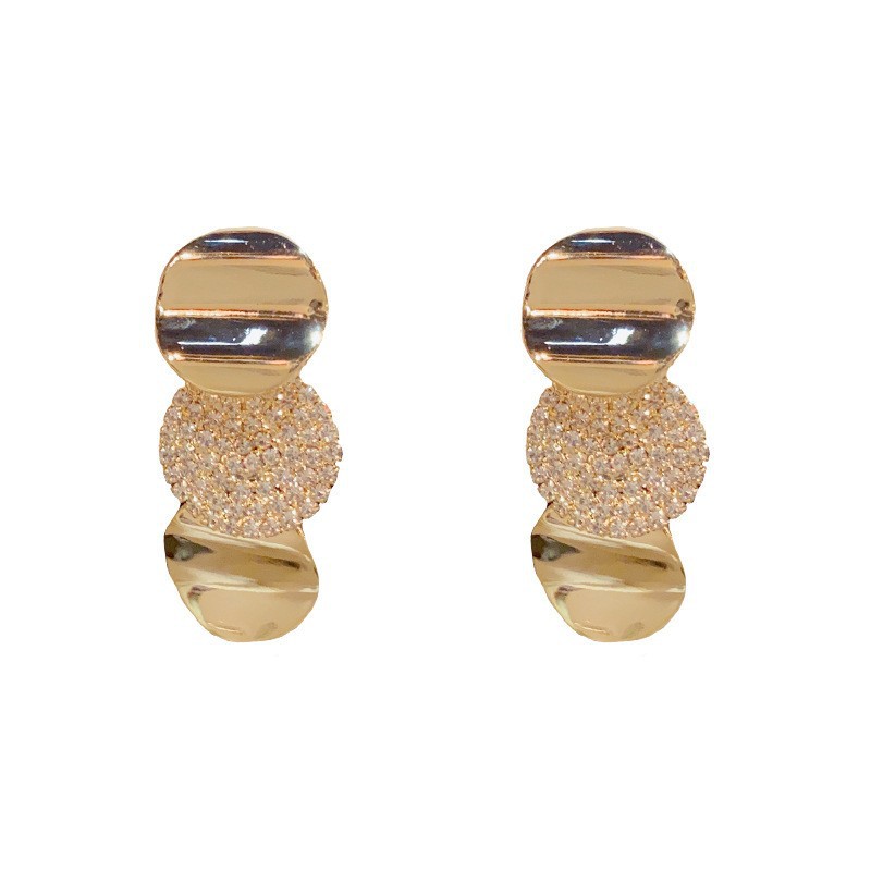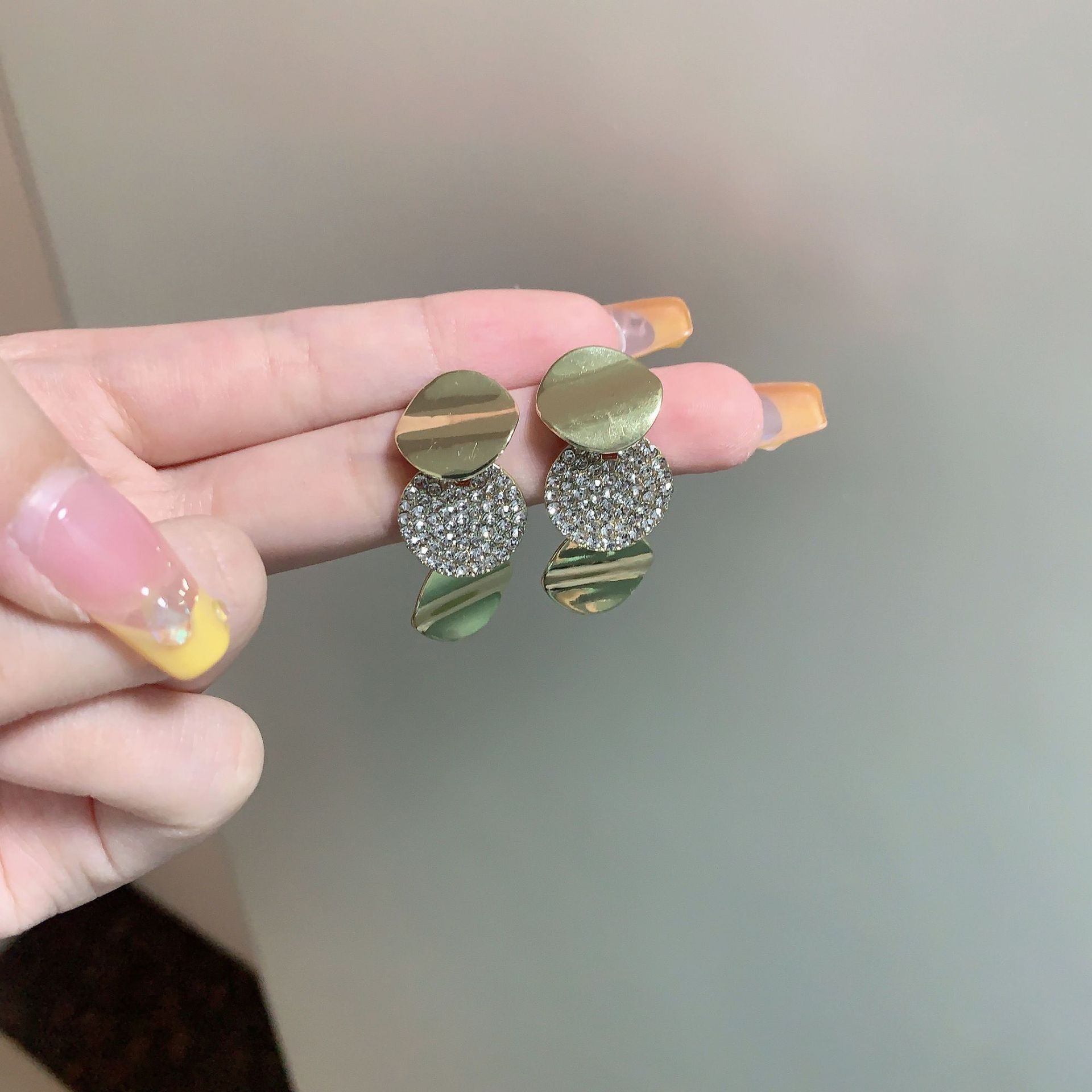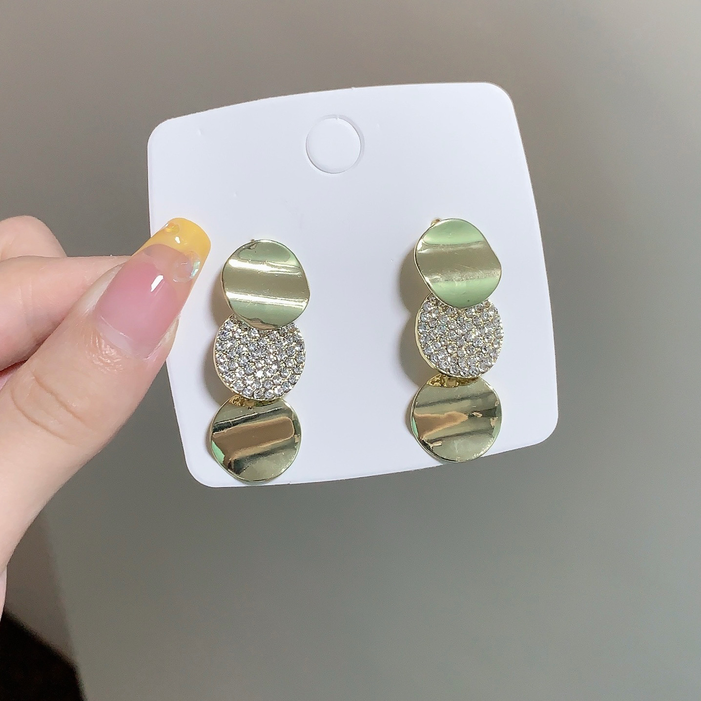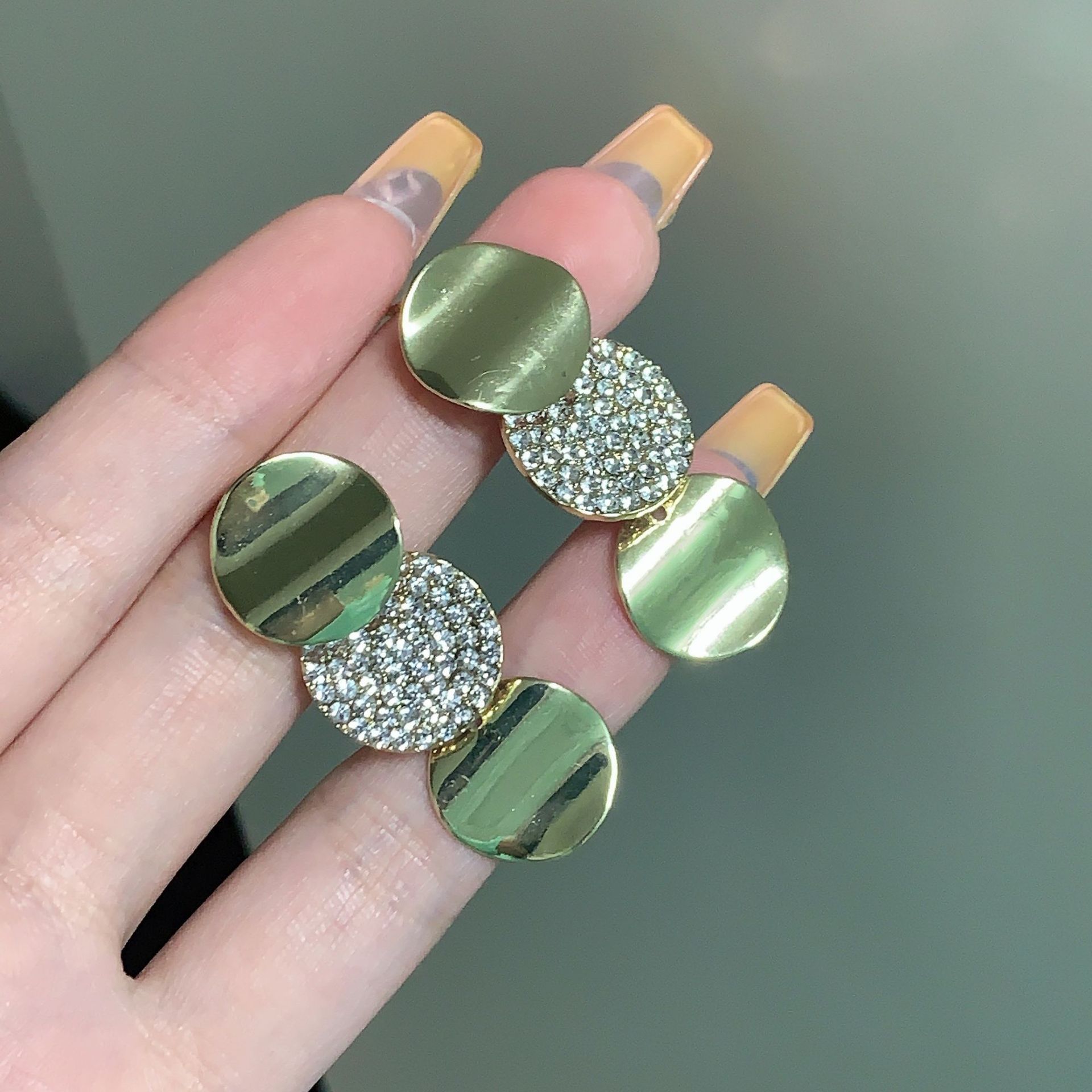 超闪金色圆片耳环2024年新款银针耳坠小众独特耳饰高级感轻奢耳钉