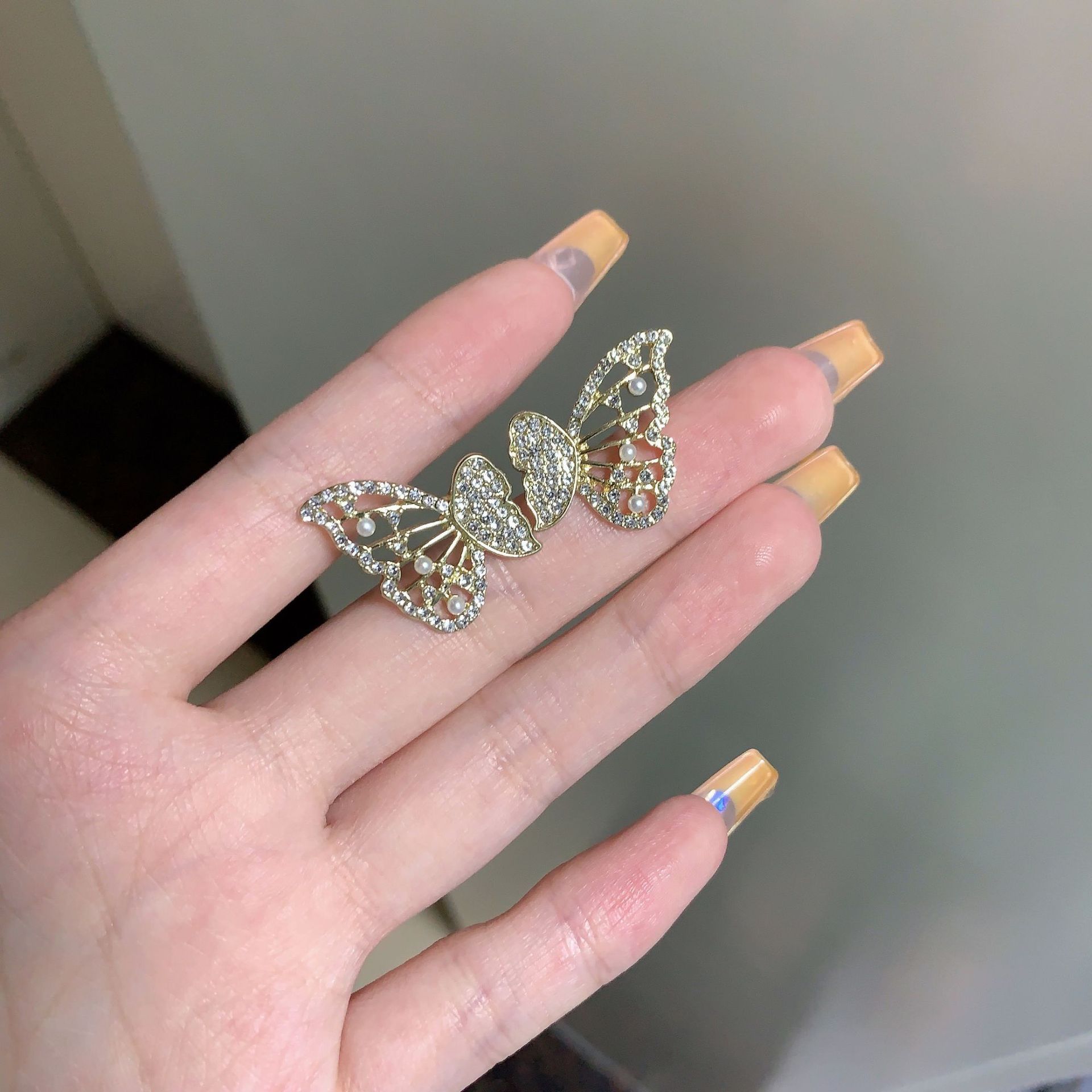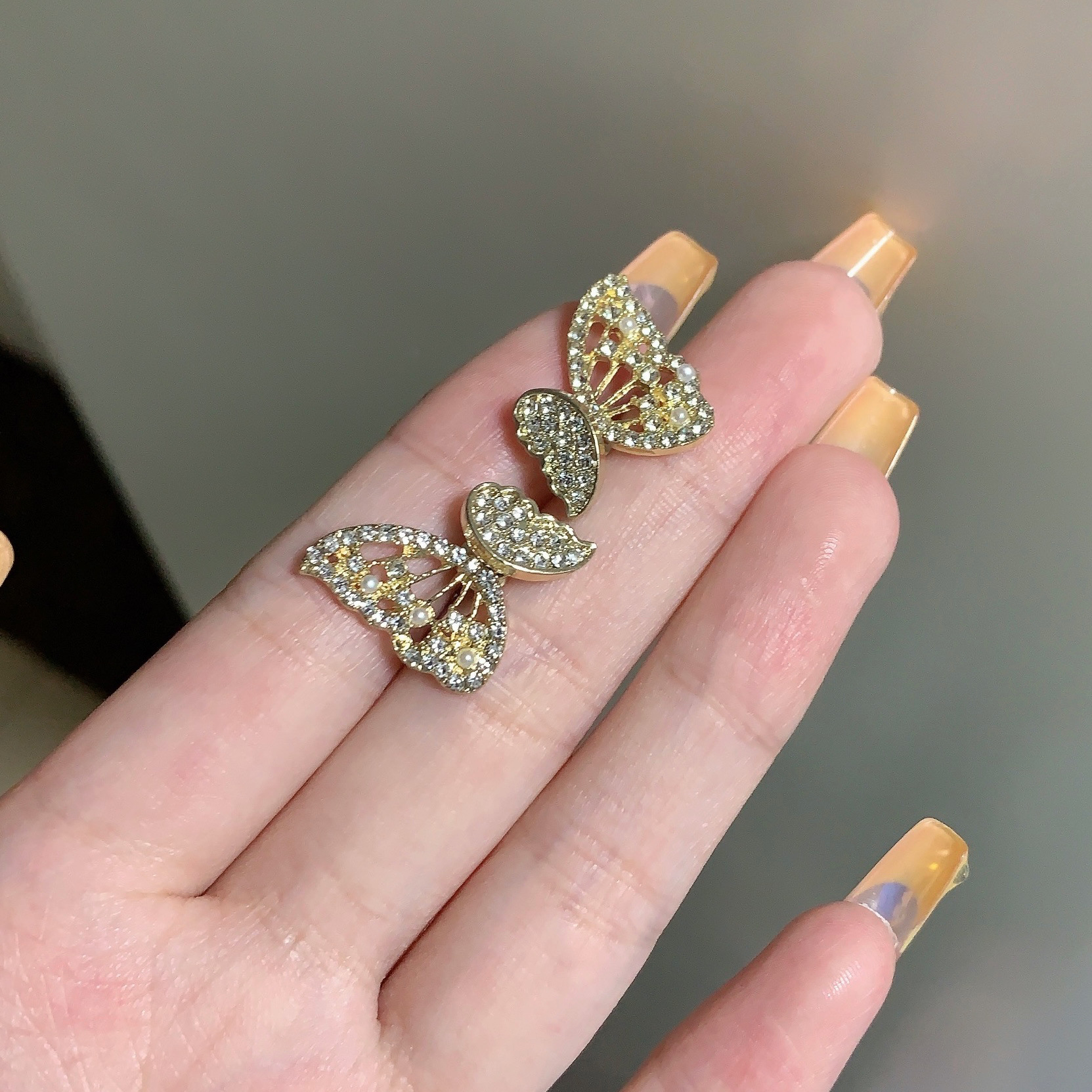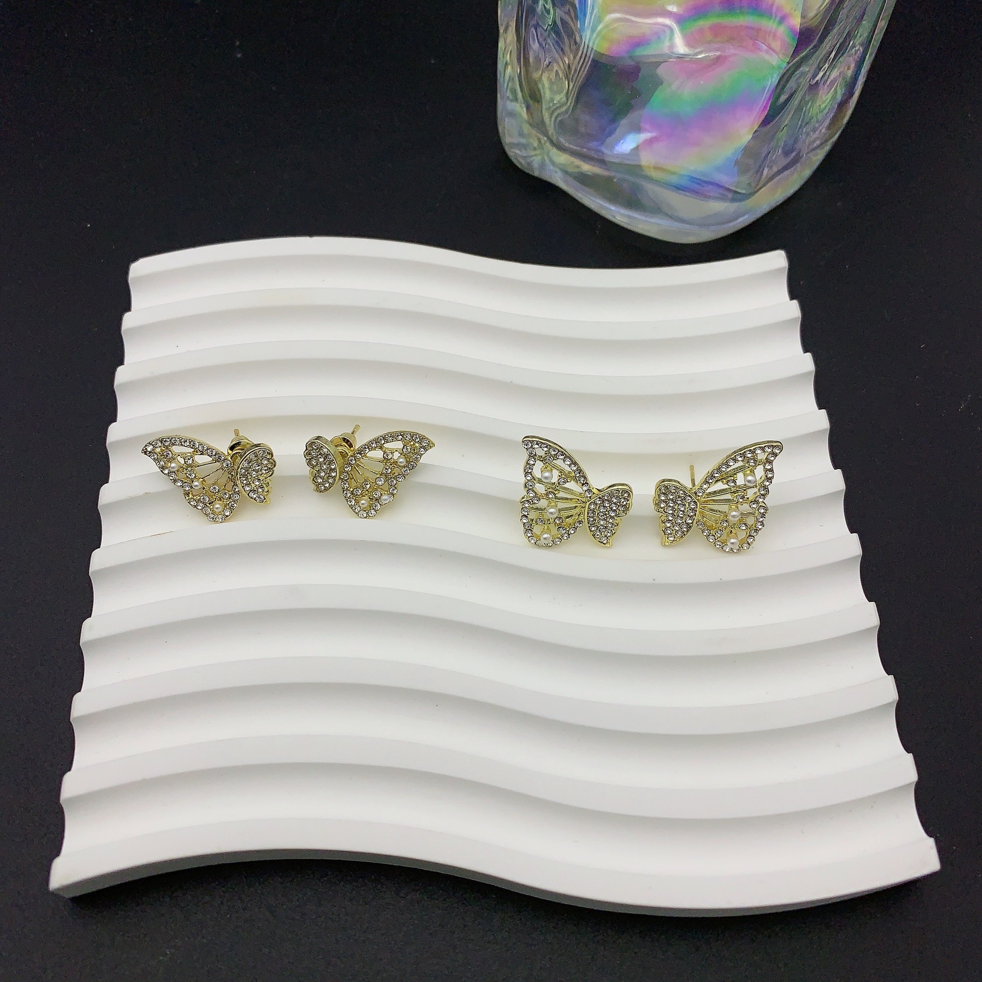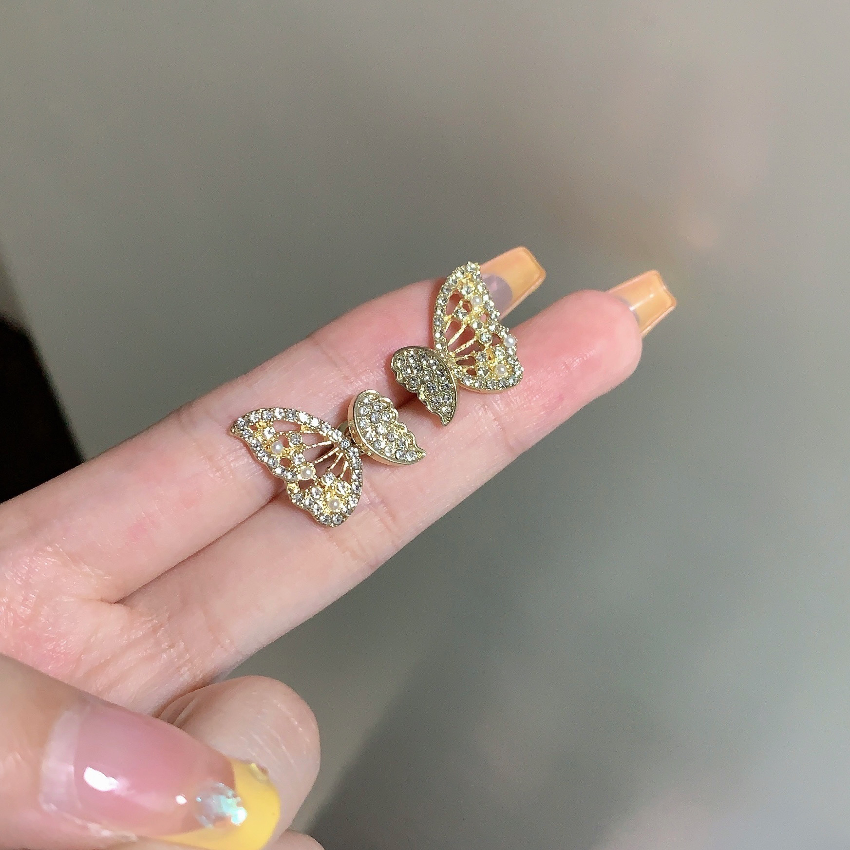 2024秋夏韩式一款两戴后挂式蝴蝶镶钻耳环新款耳饰女s925银针耳饰