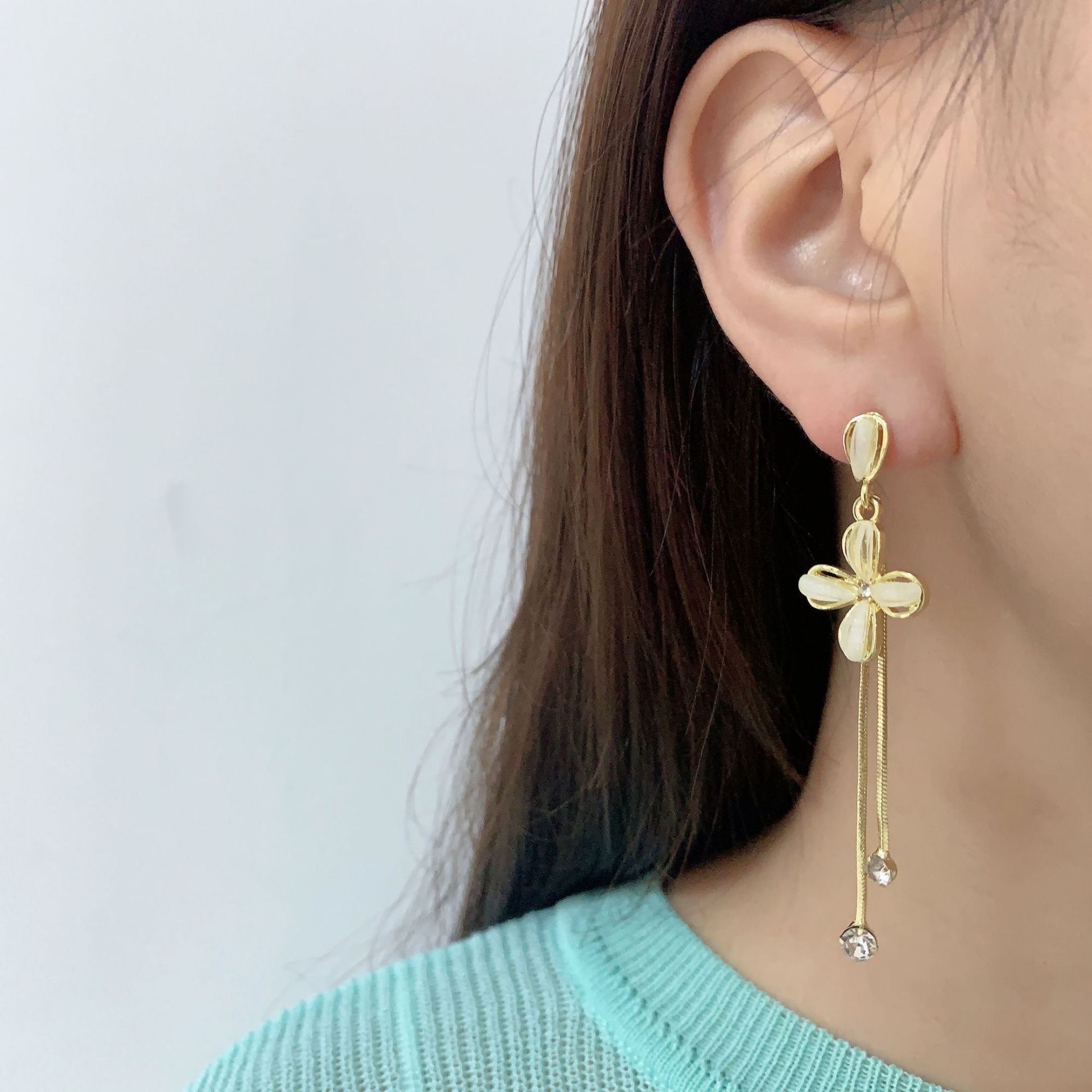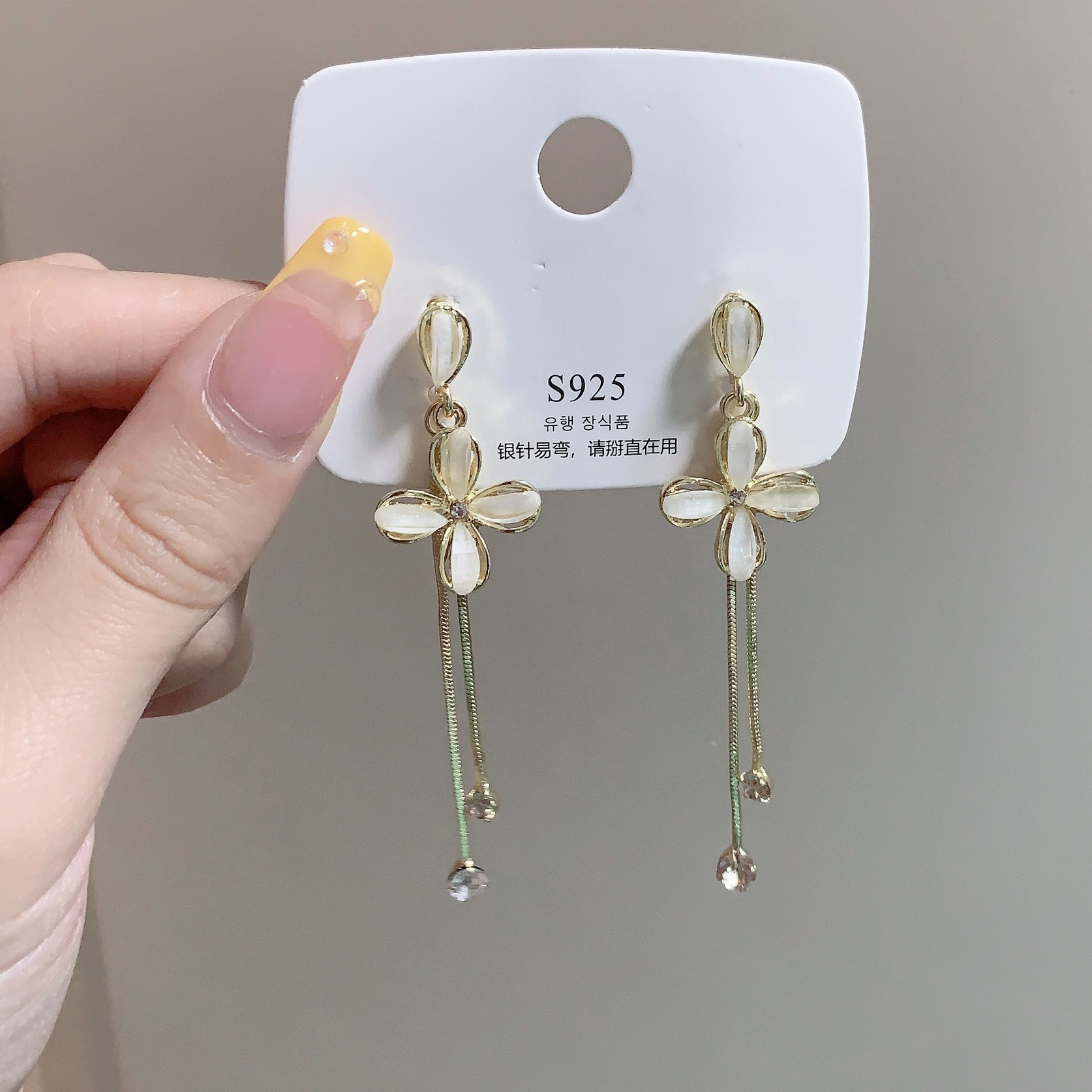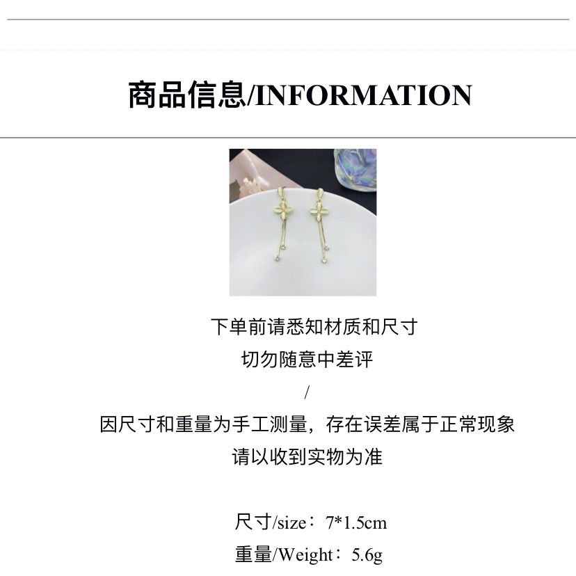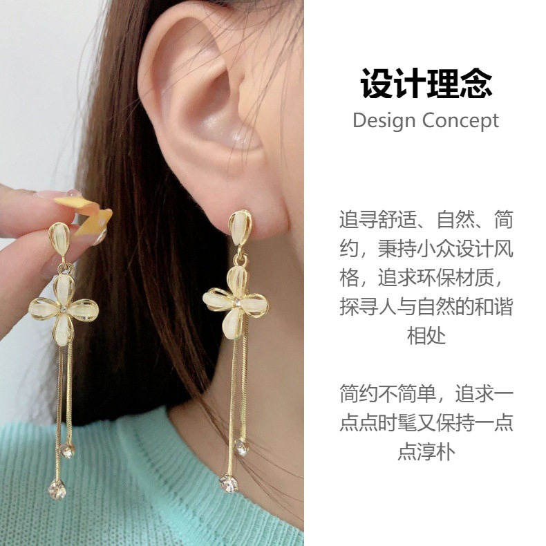 ins潮镶钻S925银针韩国新款长款流苏耳环女花朵耳钉网红同款耳饰