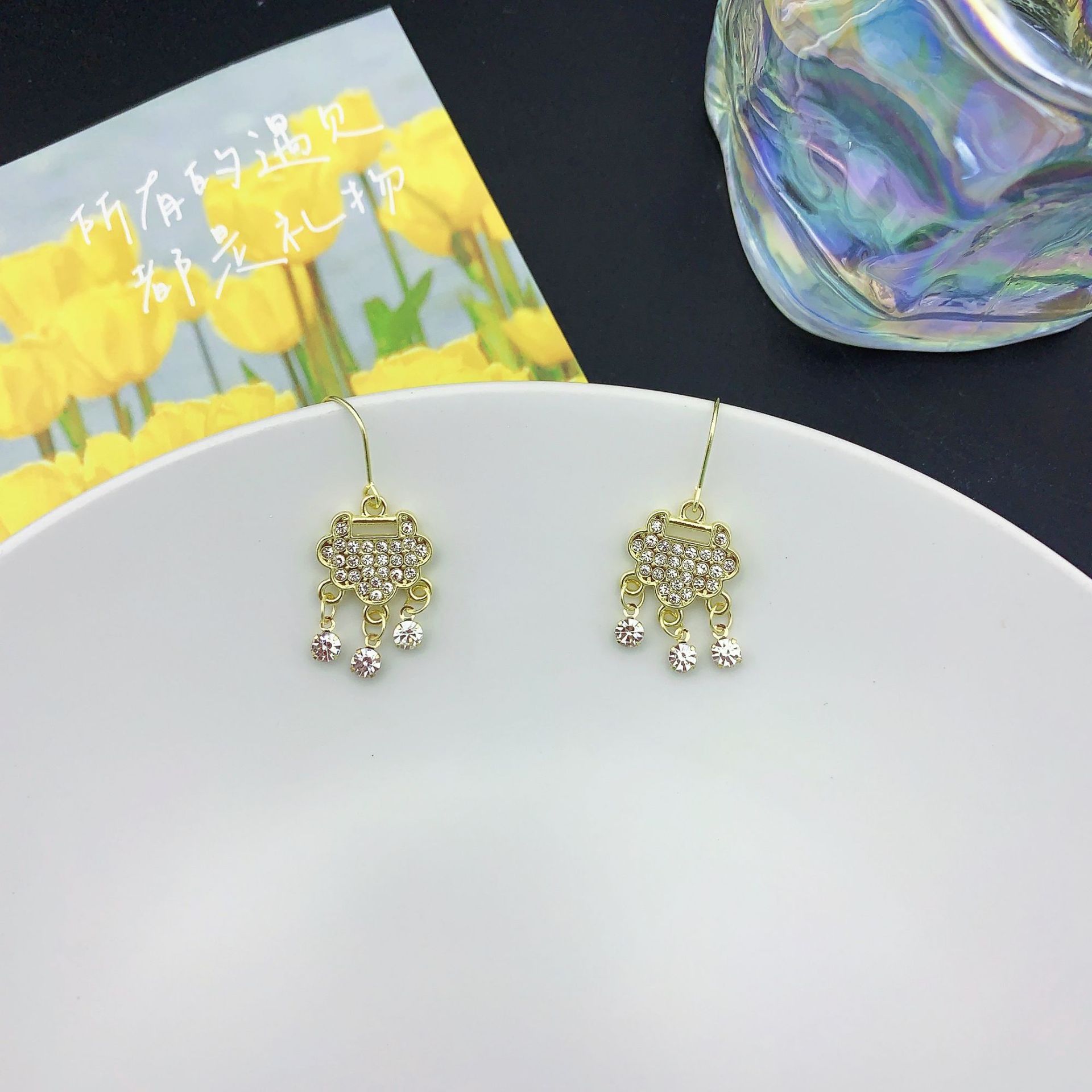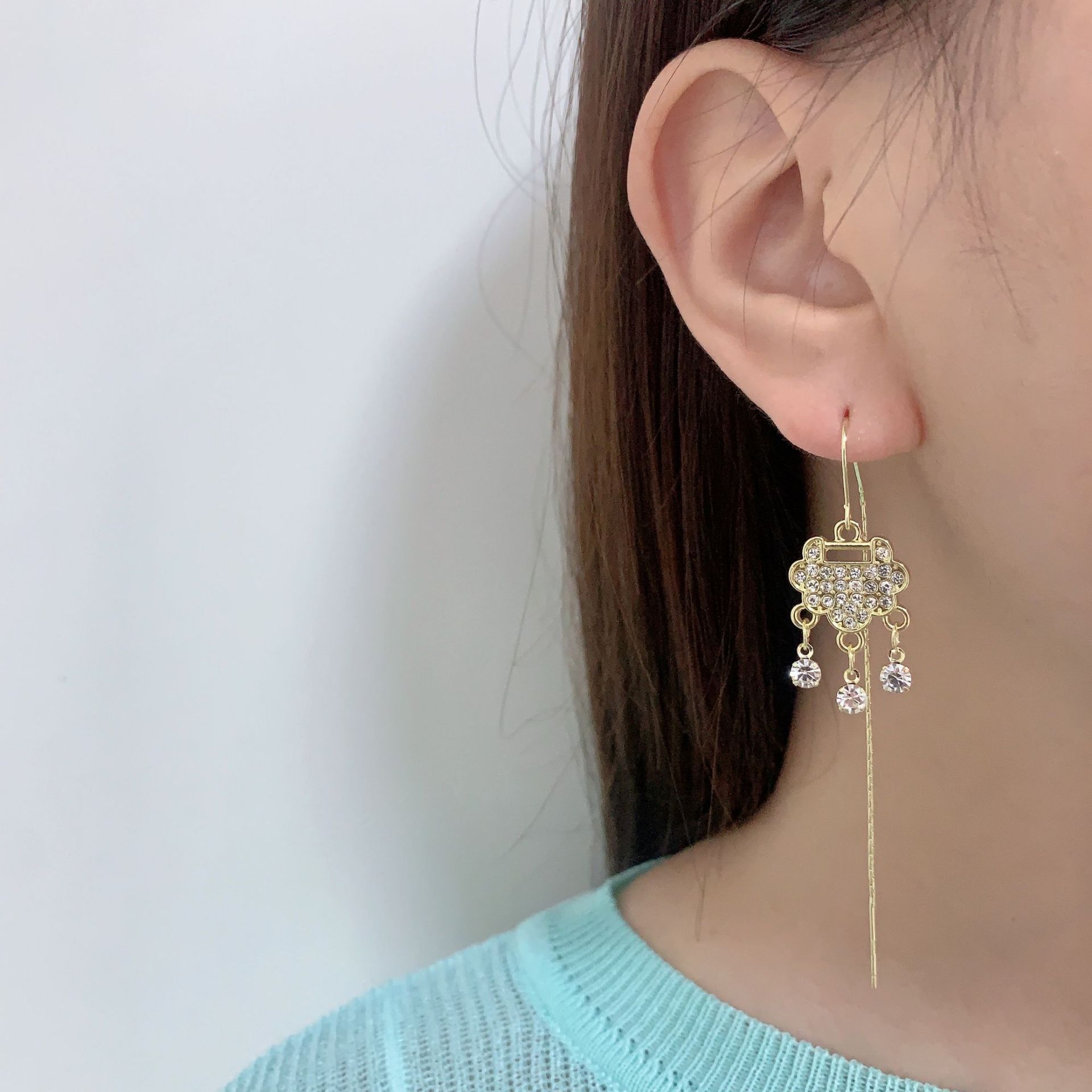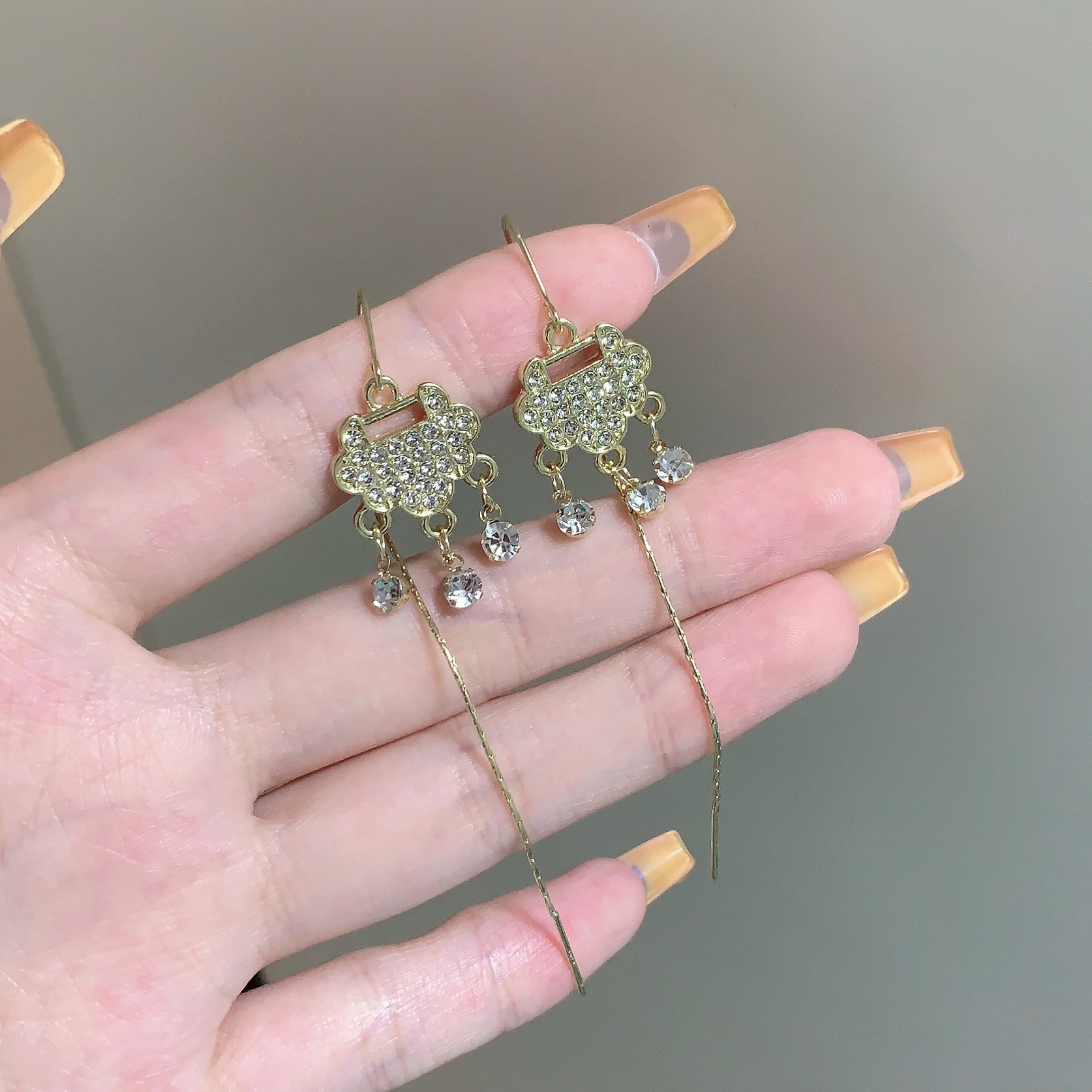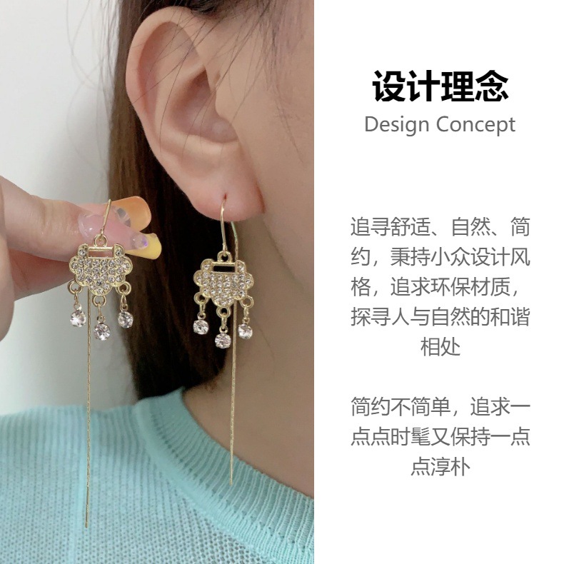 水滴平安锁抖音网红同款镶钻耳线女气质轻奢中国风小众高级感耳环