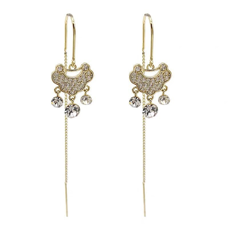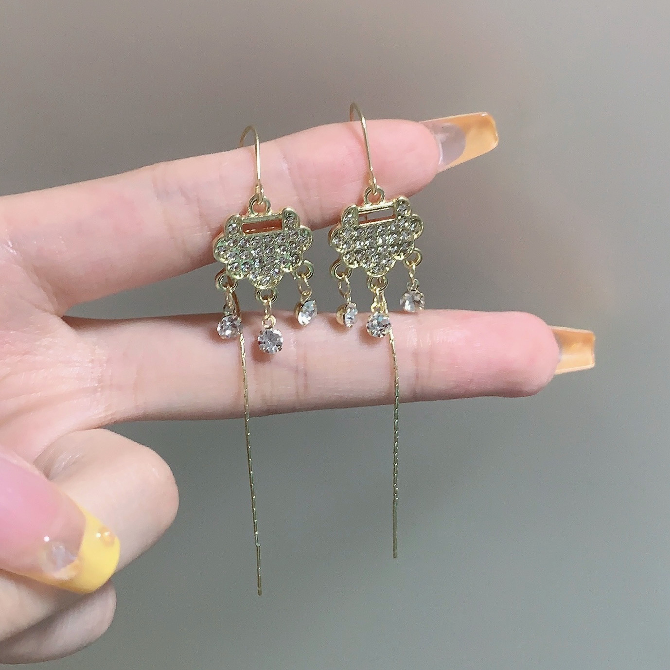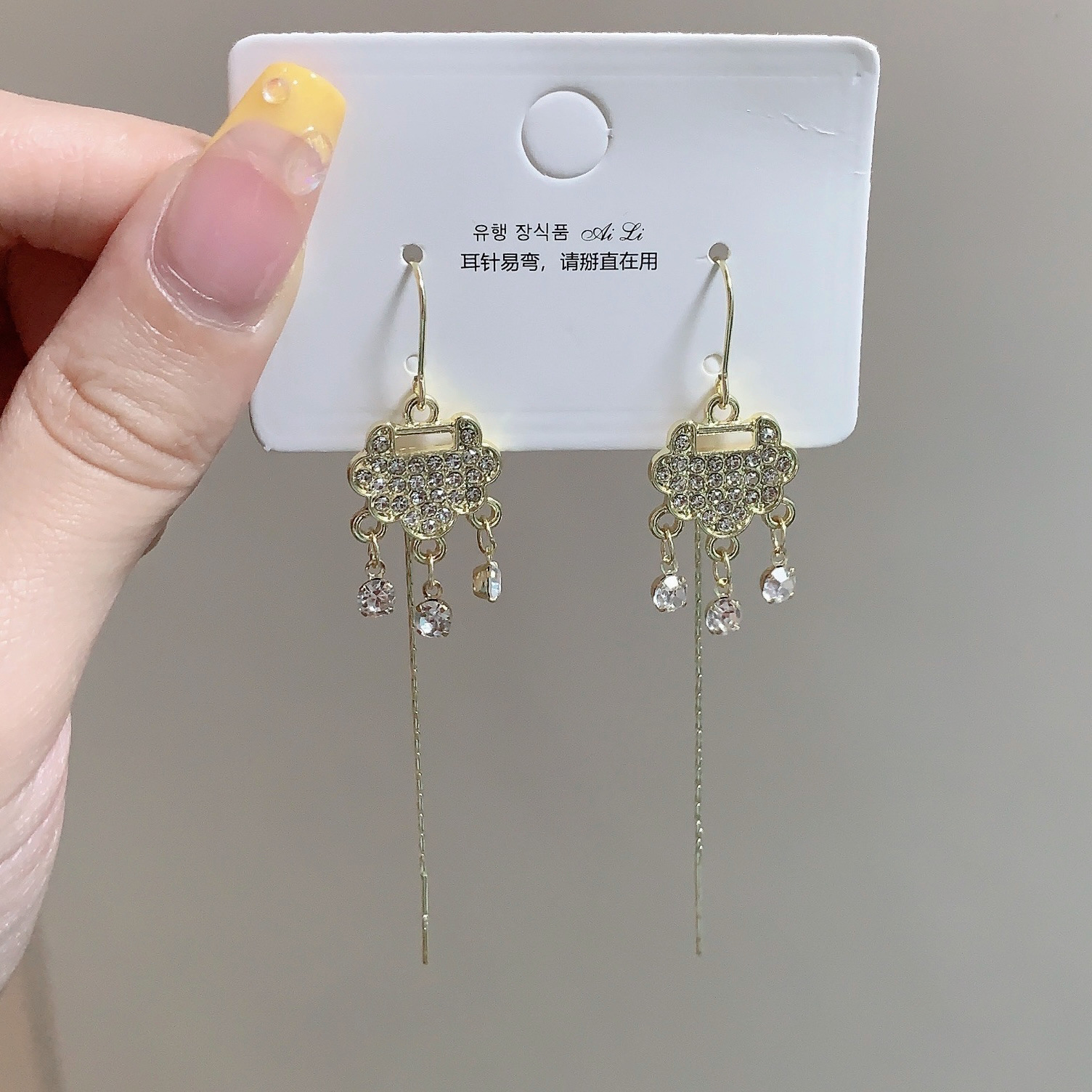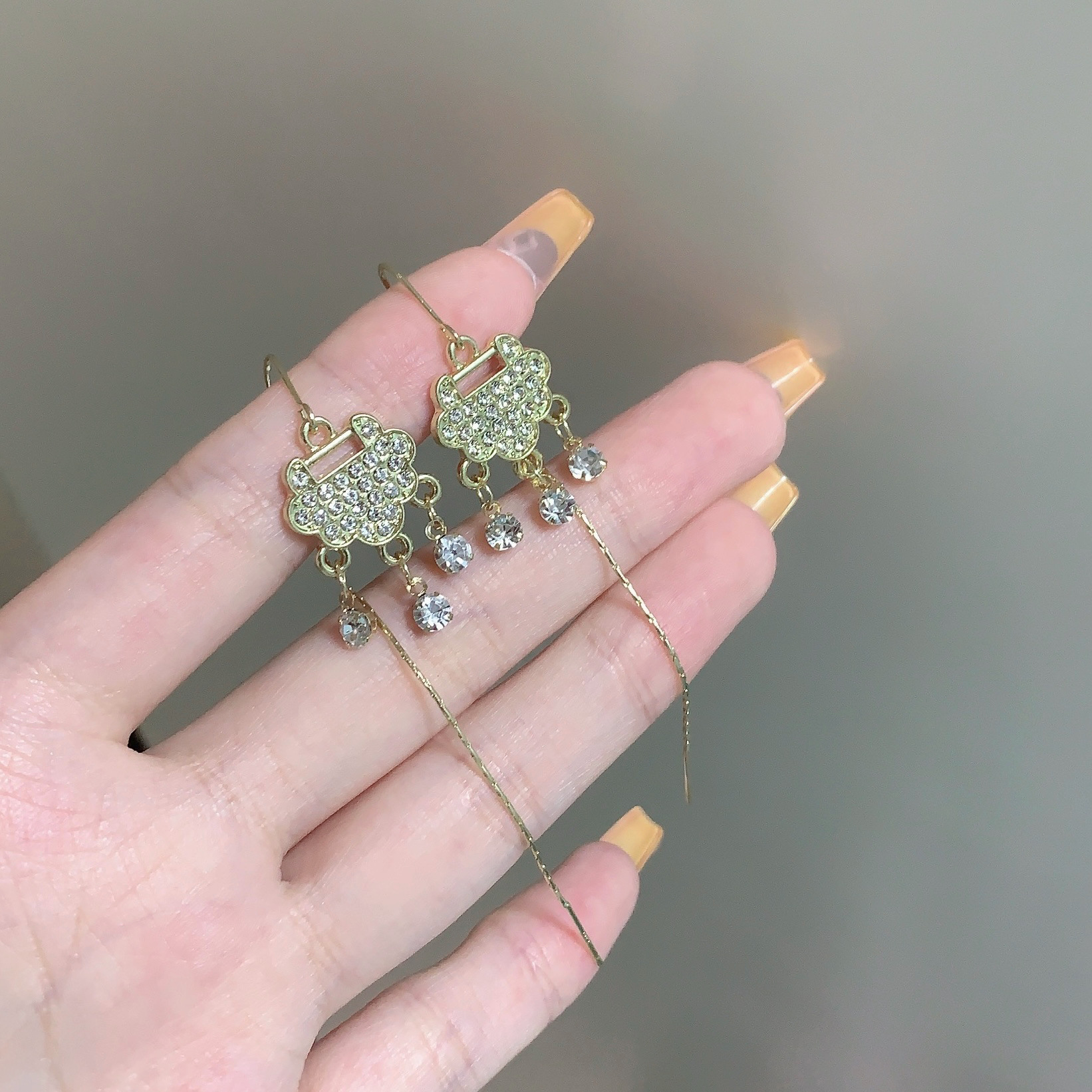 水滴平安锁抖音网红同款镶钻耳线女气质轻奢中国风小众高级感耳环