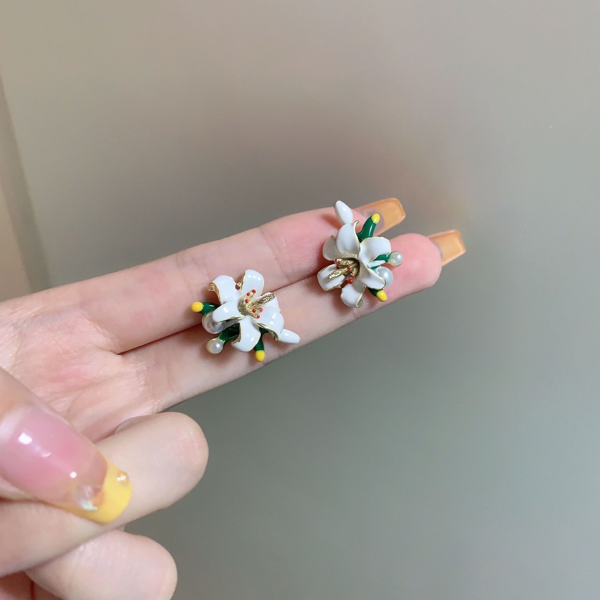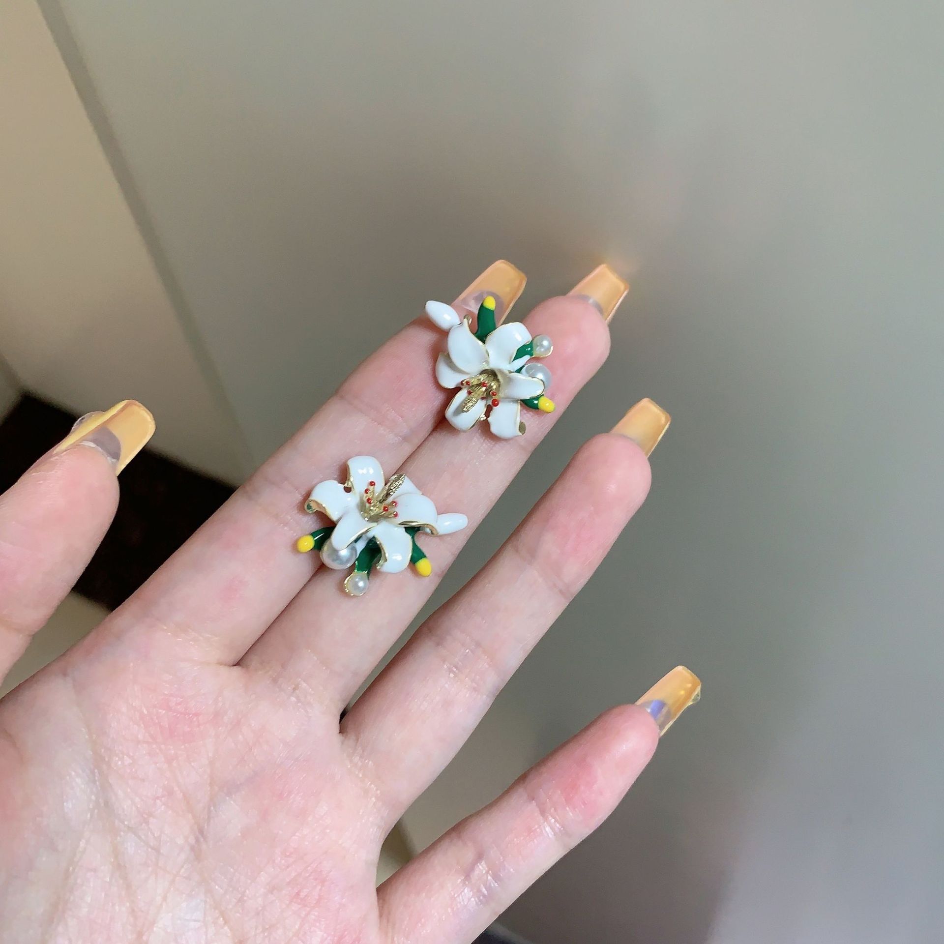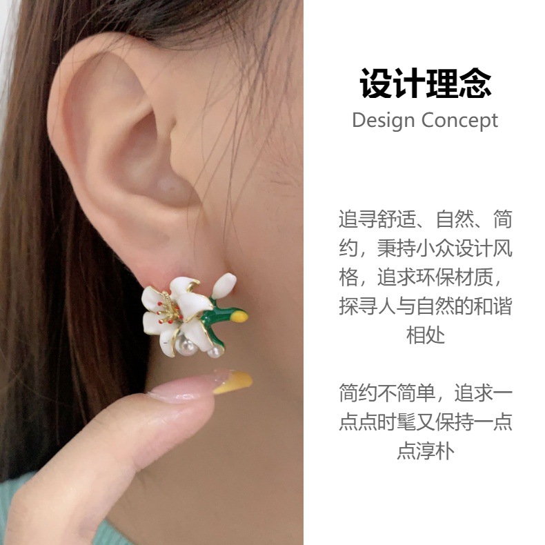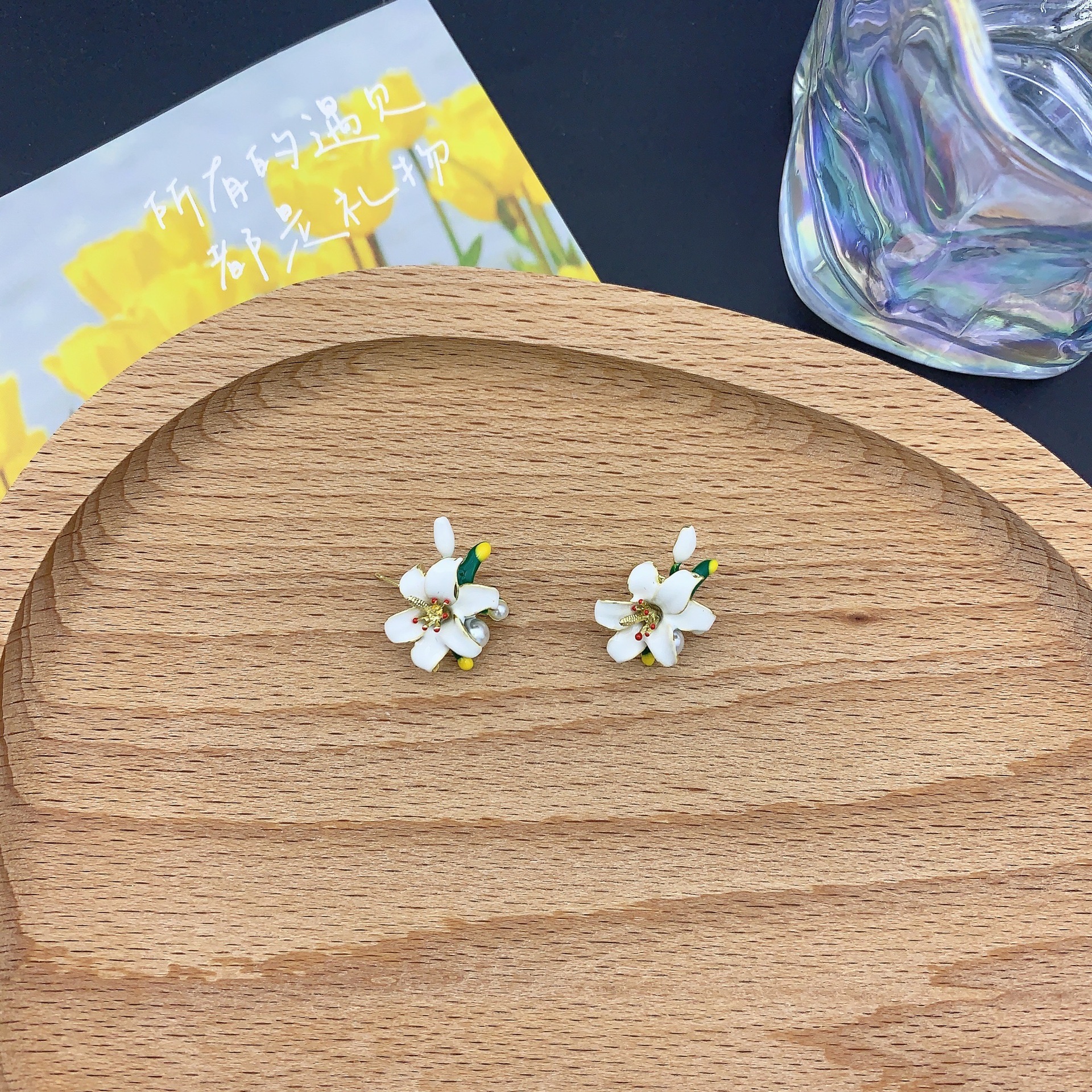 小清新甜美银针珍珠花朵耳环森系小众耳钉韩国气质高级感耳钉耳饰