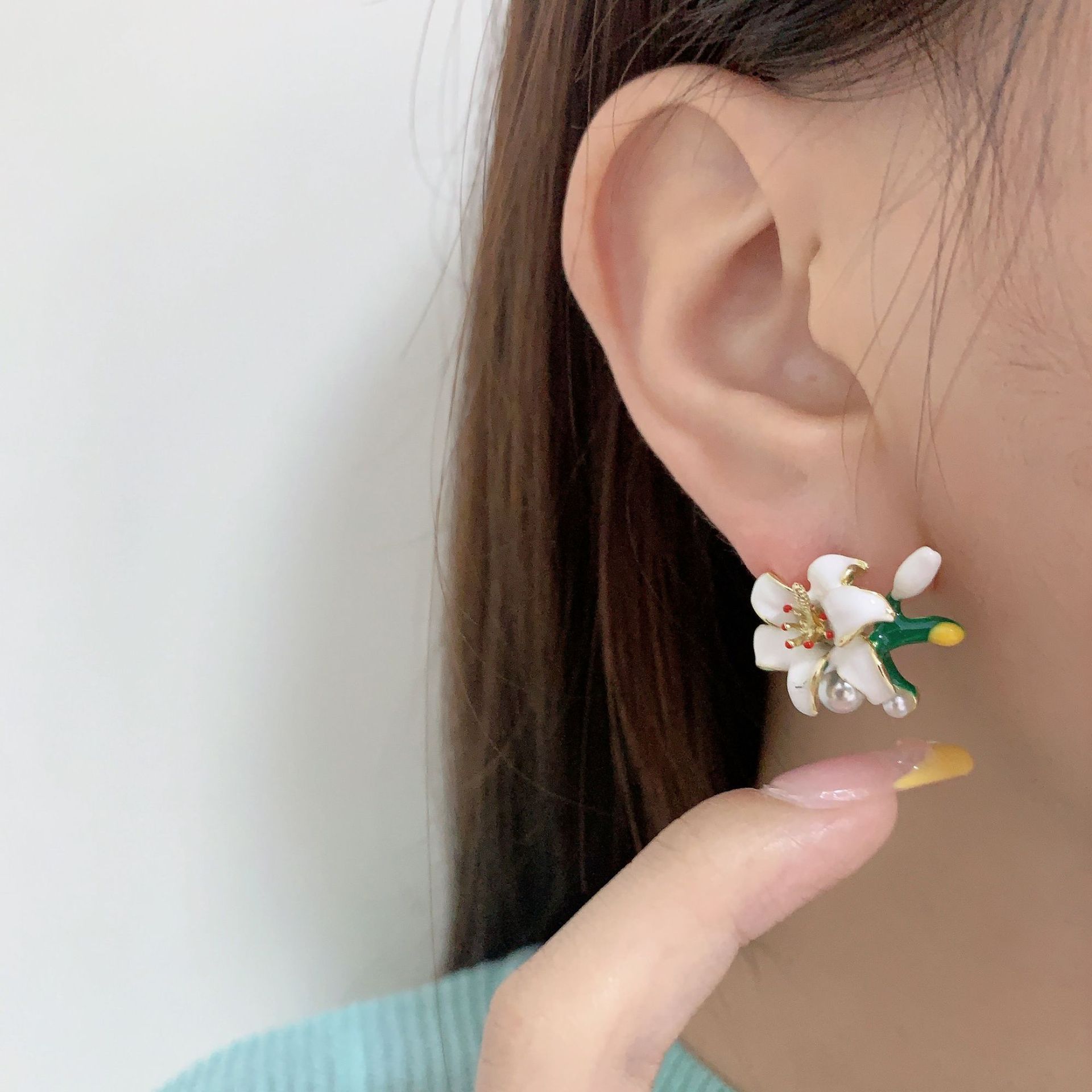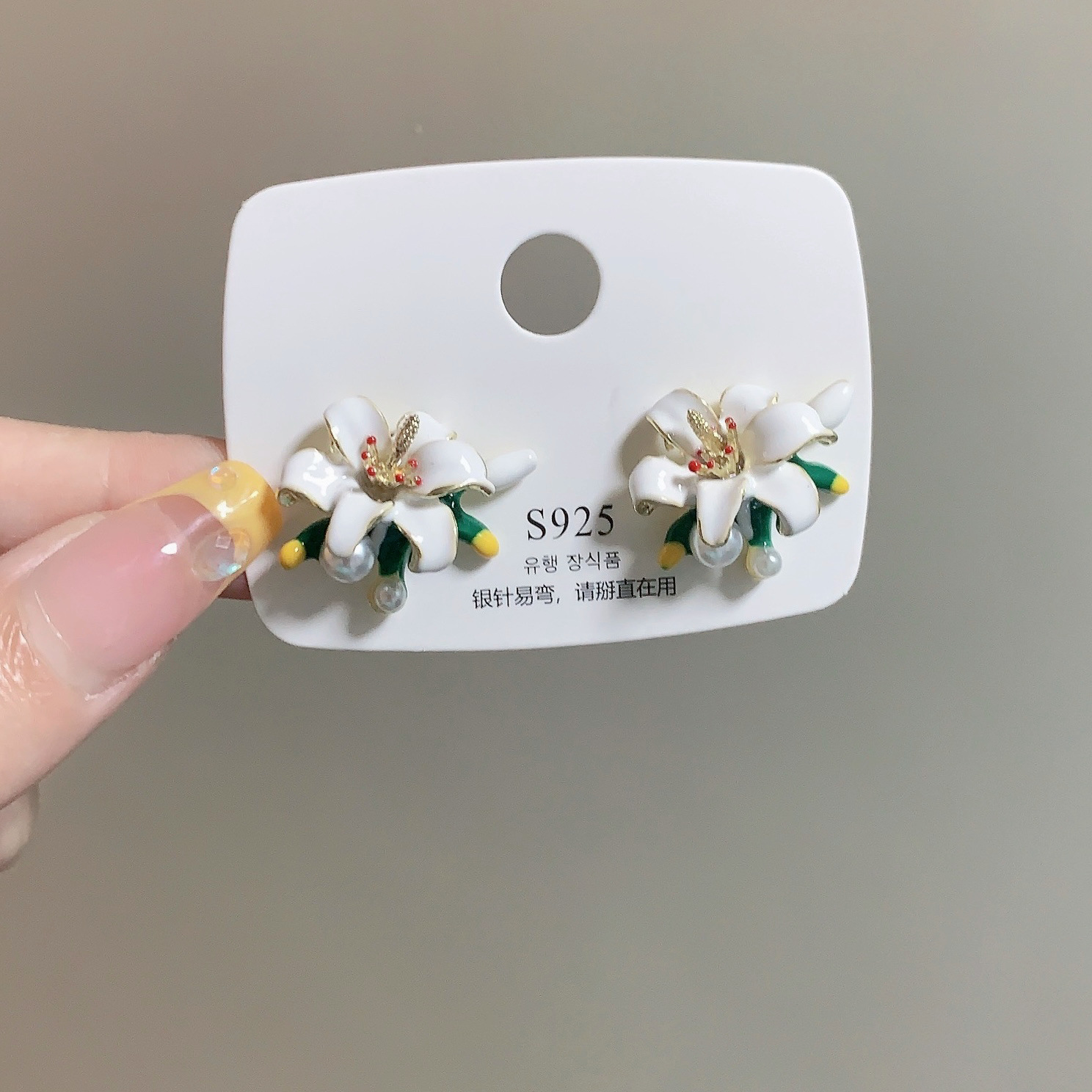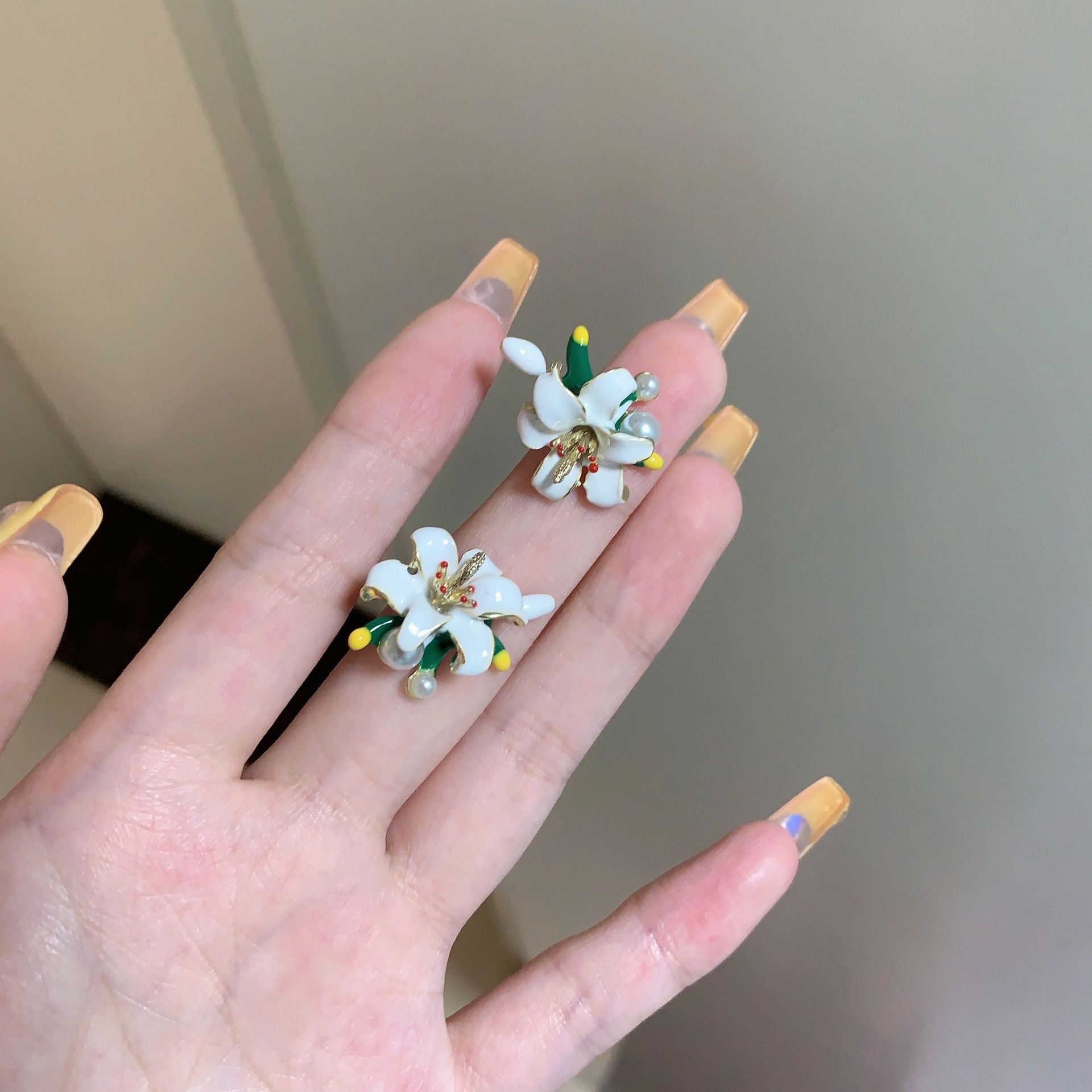 小清新甜美银针珍珠花朵耳环森系小众耳钉韩国气质高级感耳钉耳饰