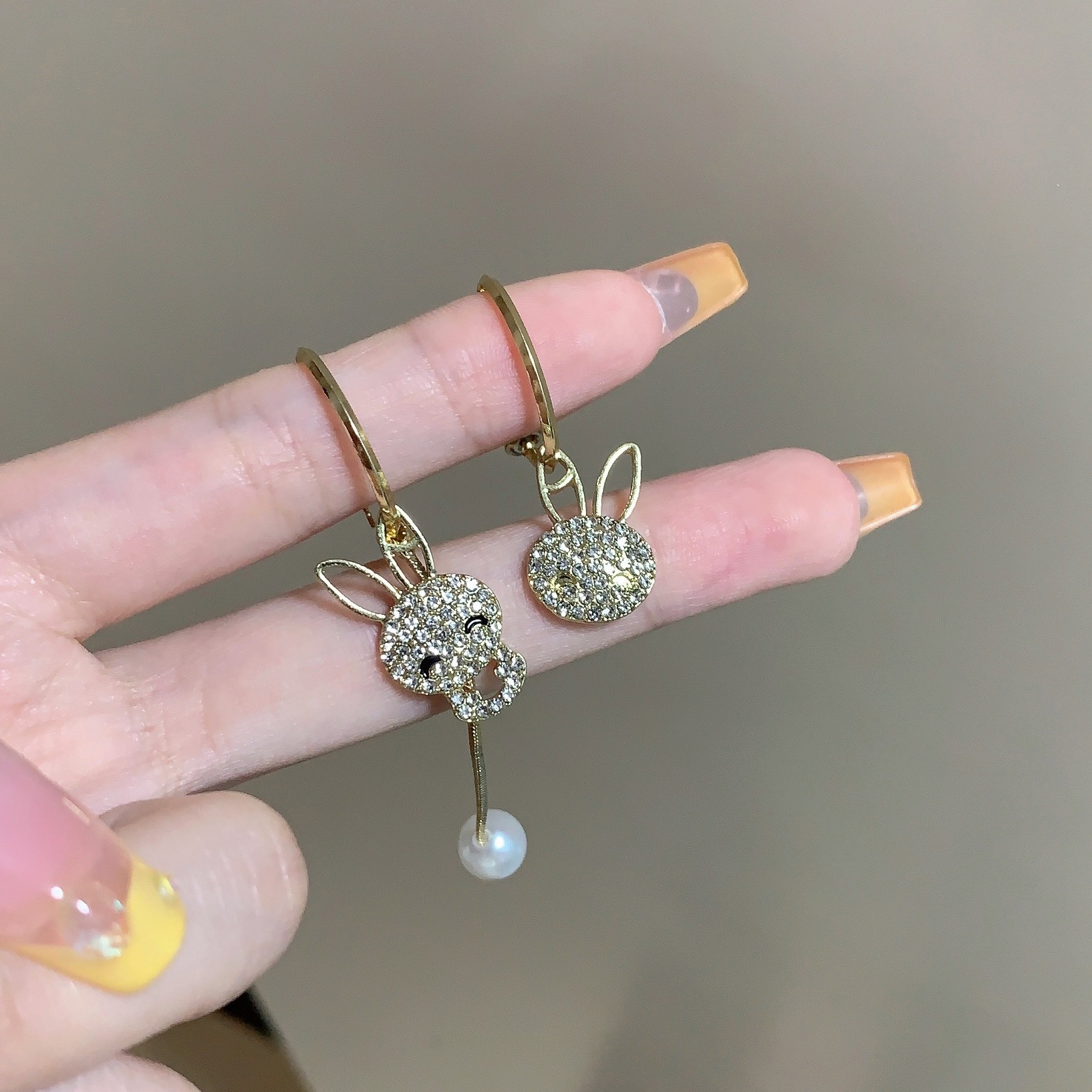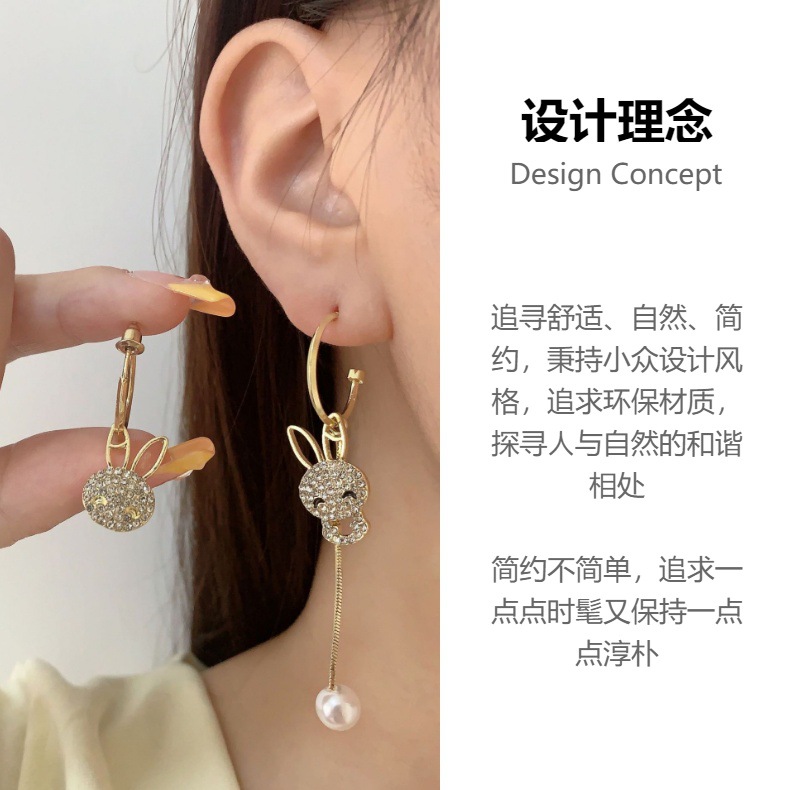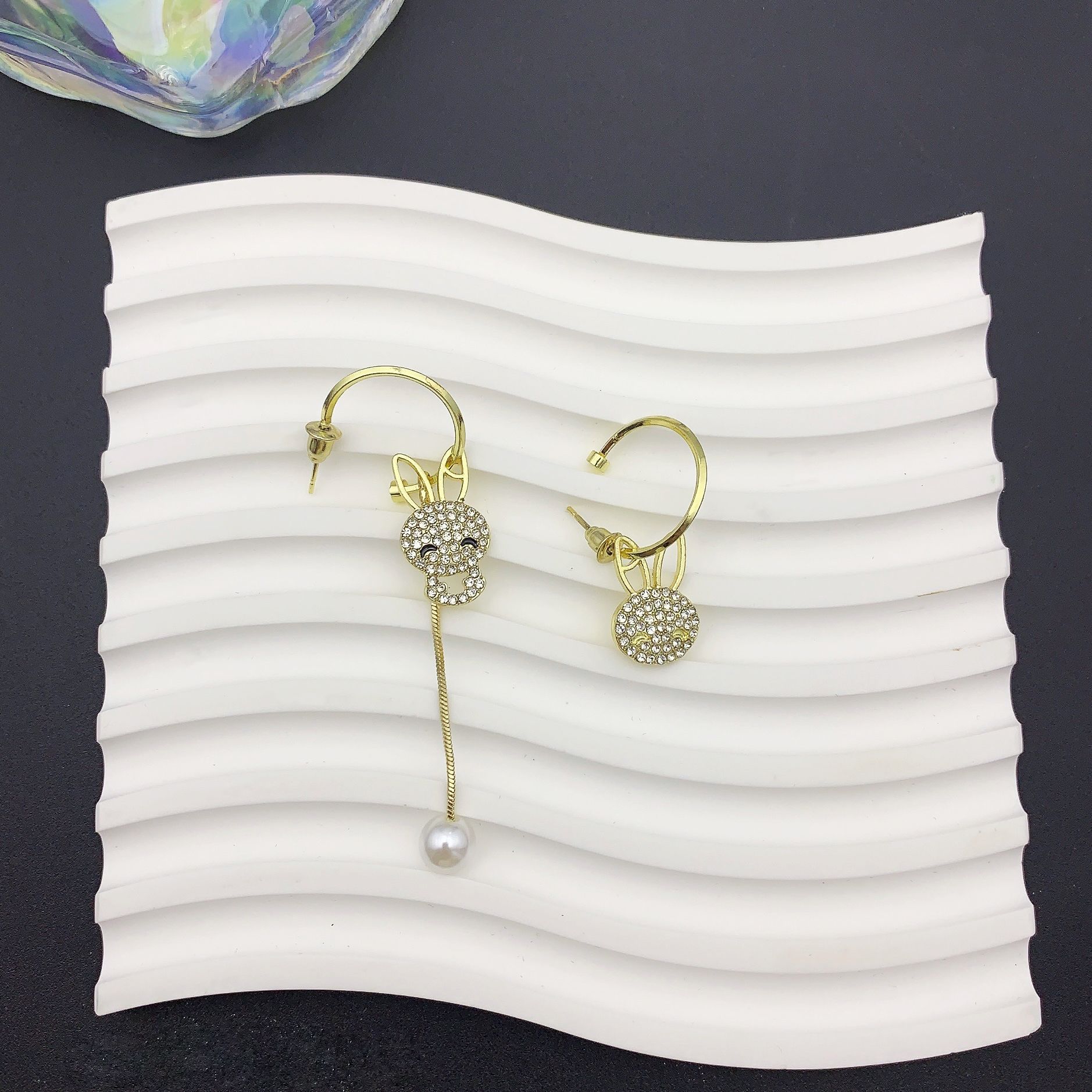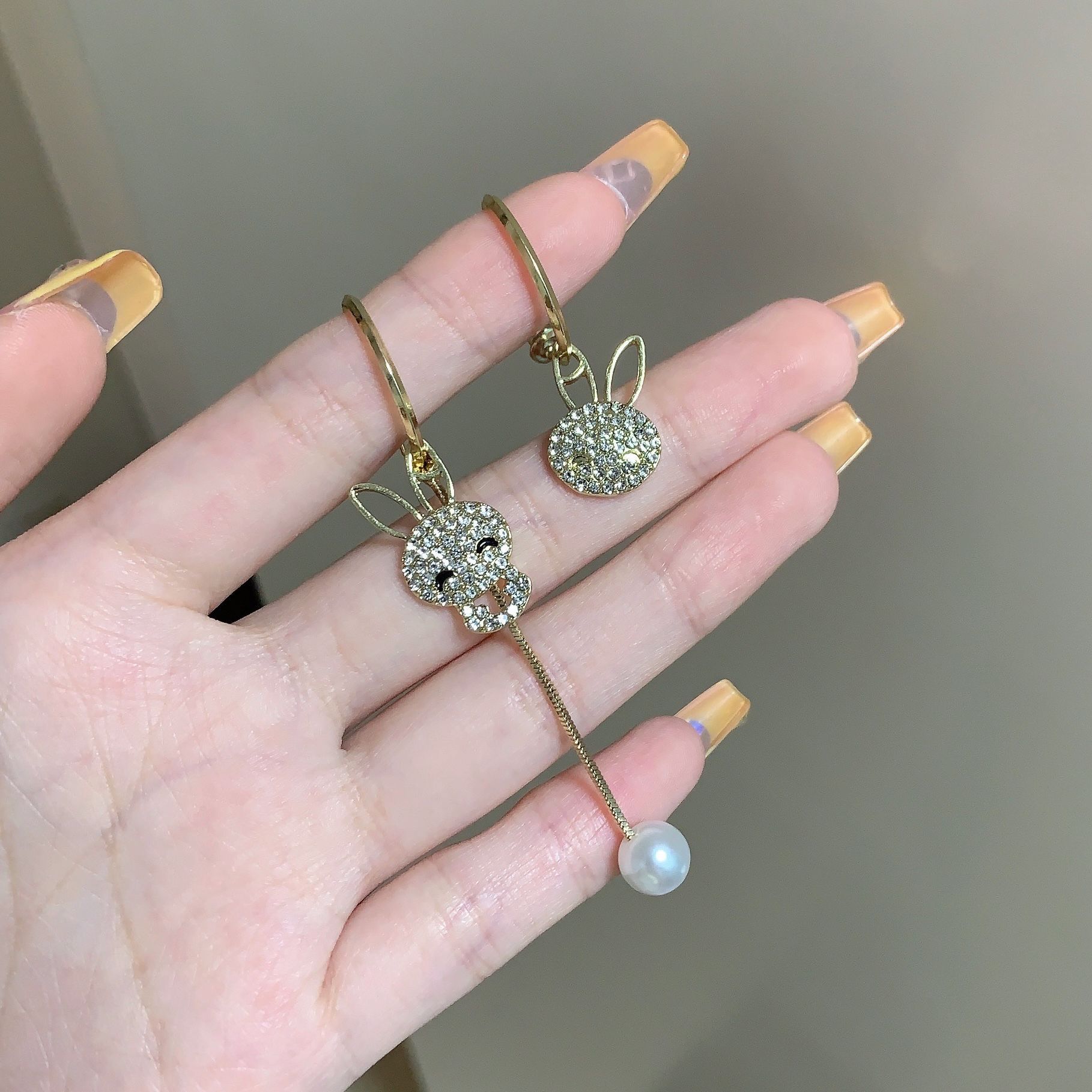 S925银针网红耳钉精致满钻小兔耳环韩国可爱不对称耳饰个性饰品女