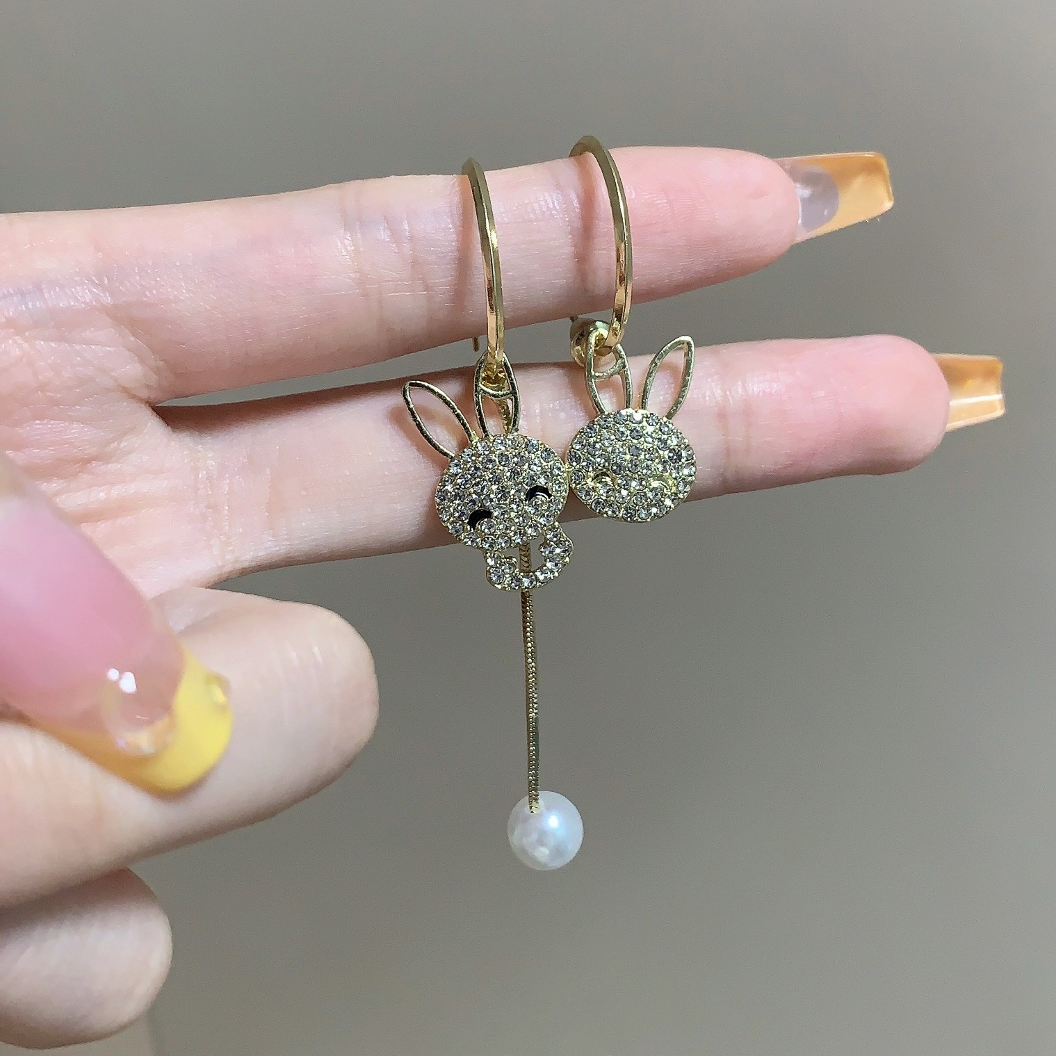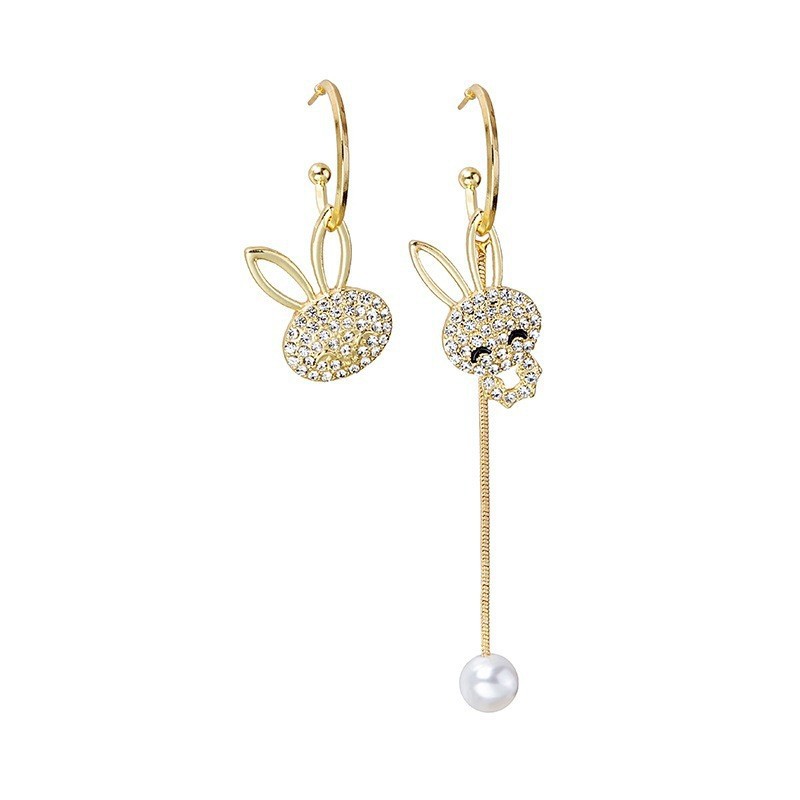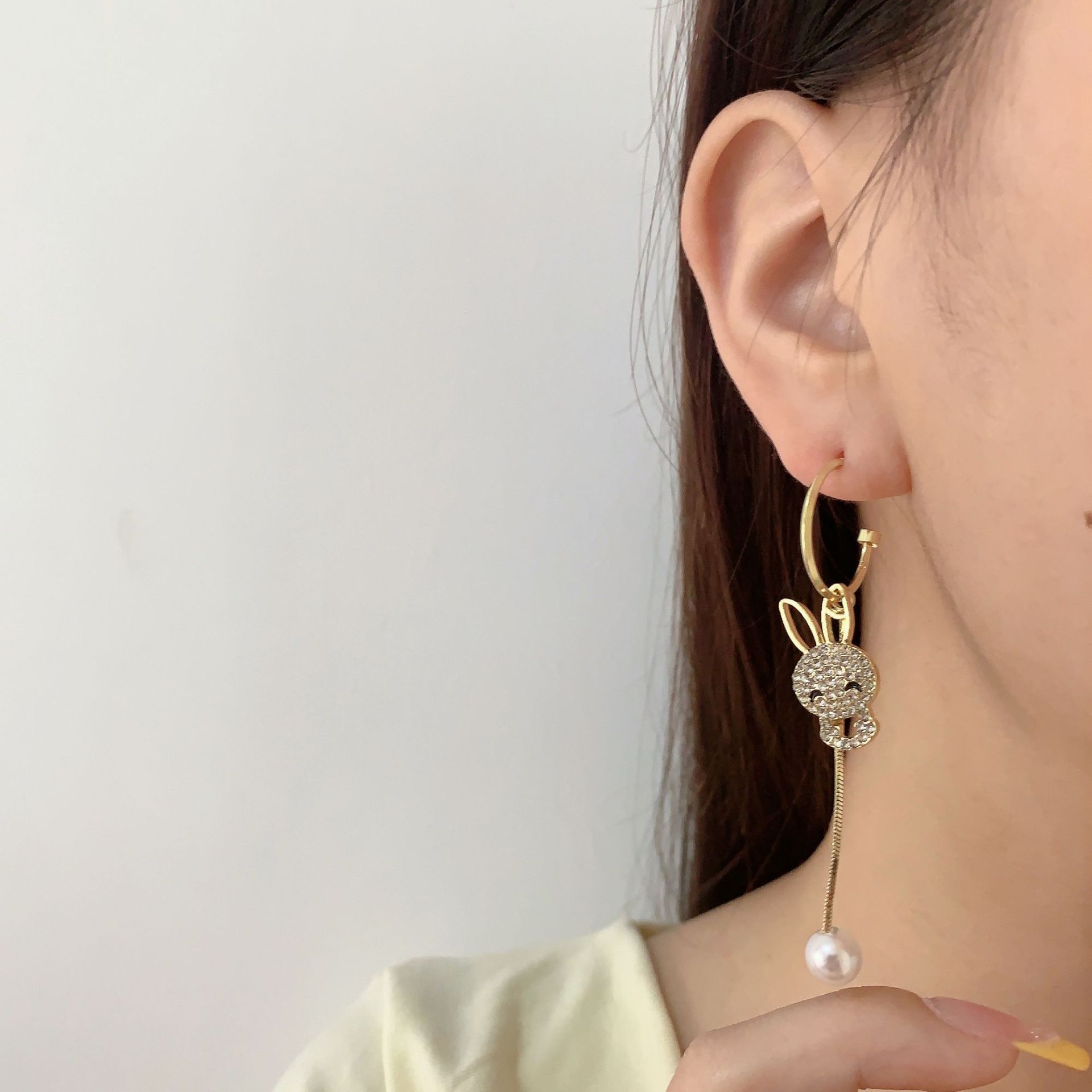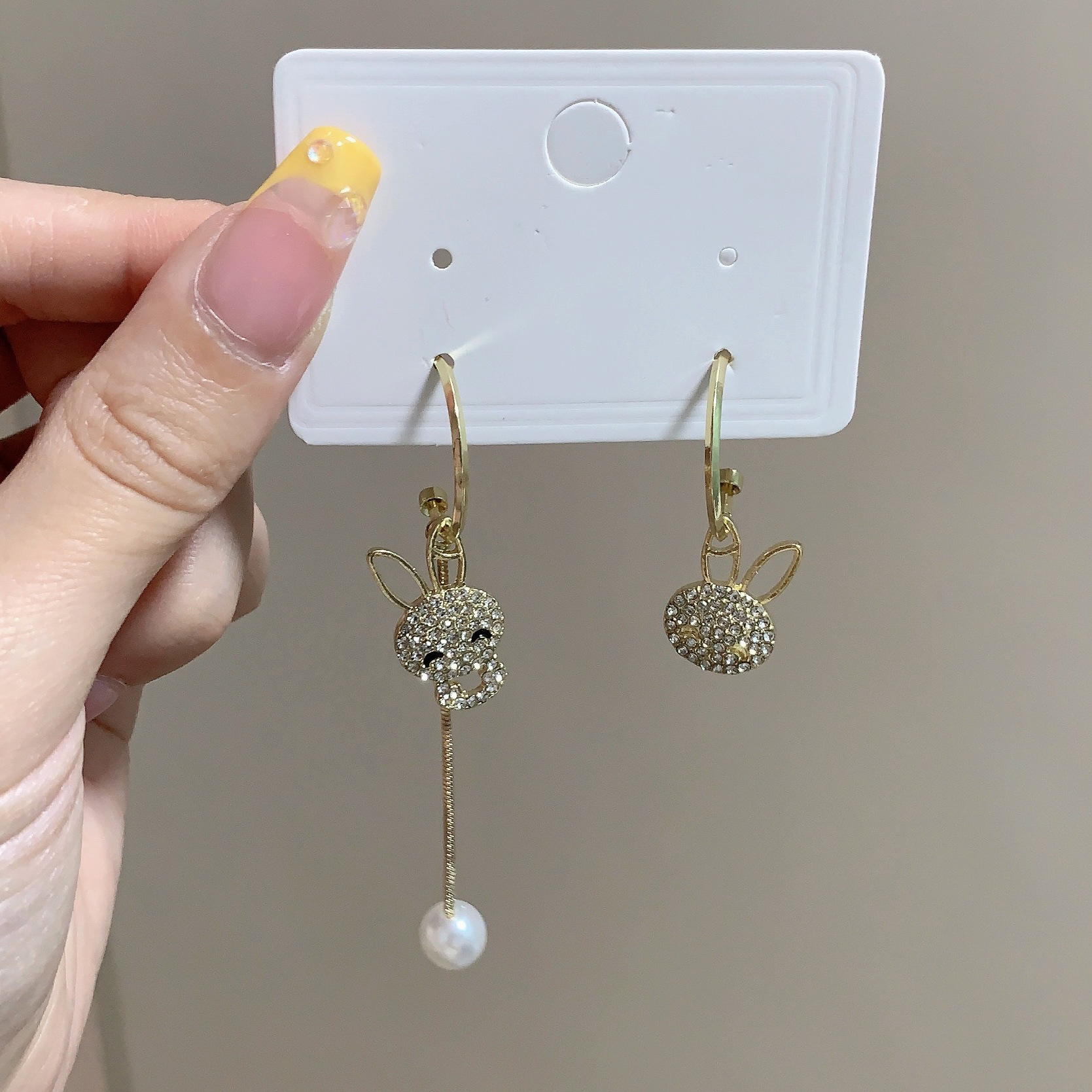 S925银针网红耳钉精致满钻小兔耳环韩国可爱不对称耳饰个性饰品女