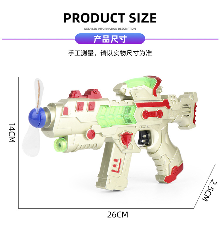 跨境推荐电动语音枪发光枪音乐灯光风扇枪玩具带红外线彩盒