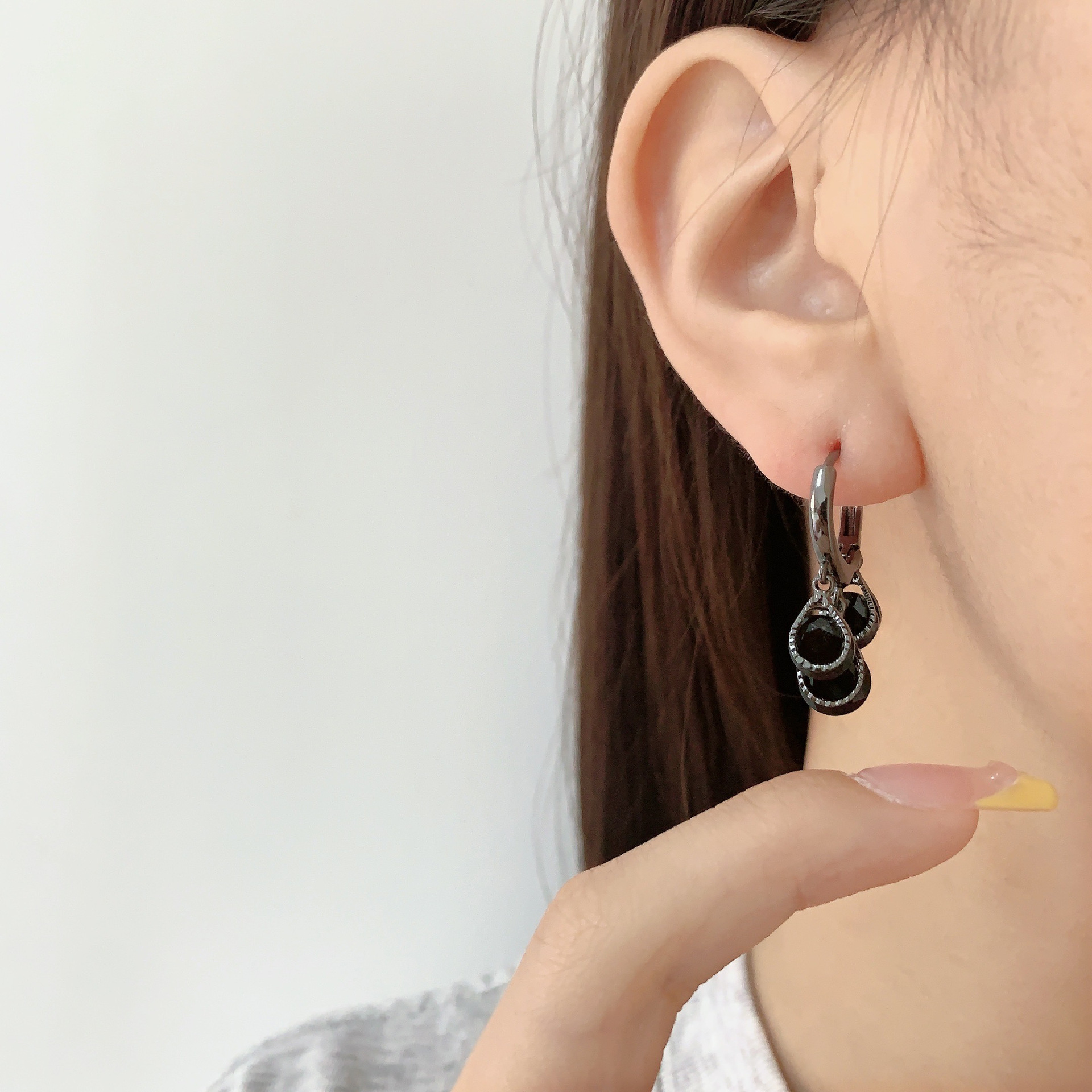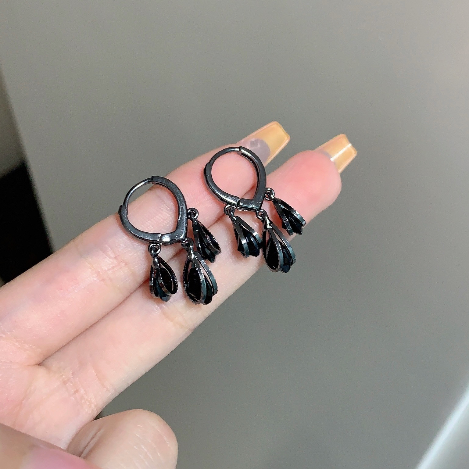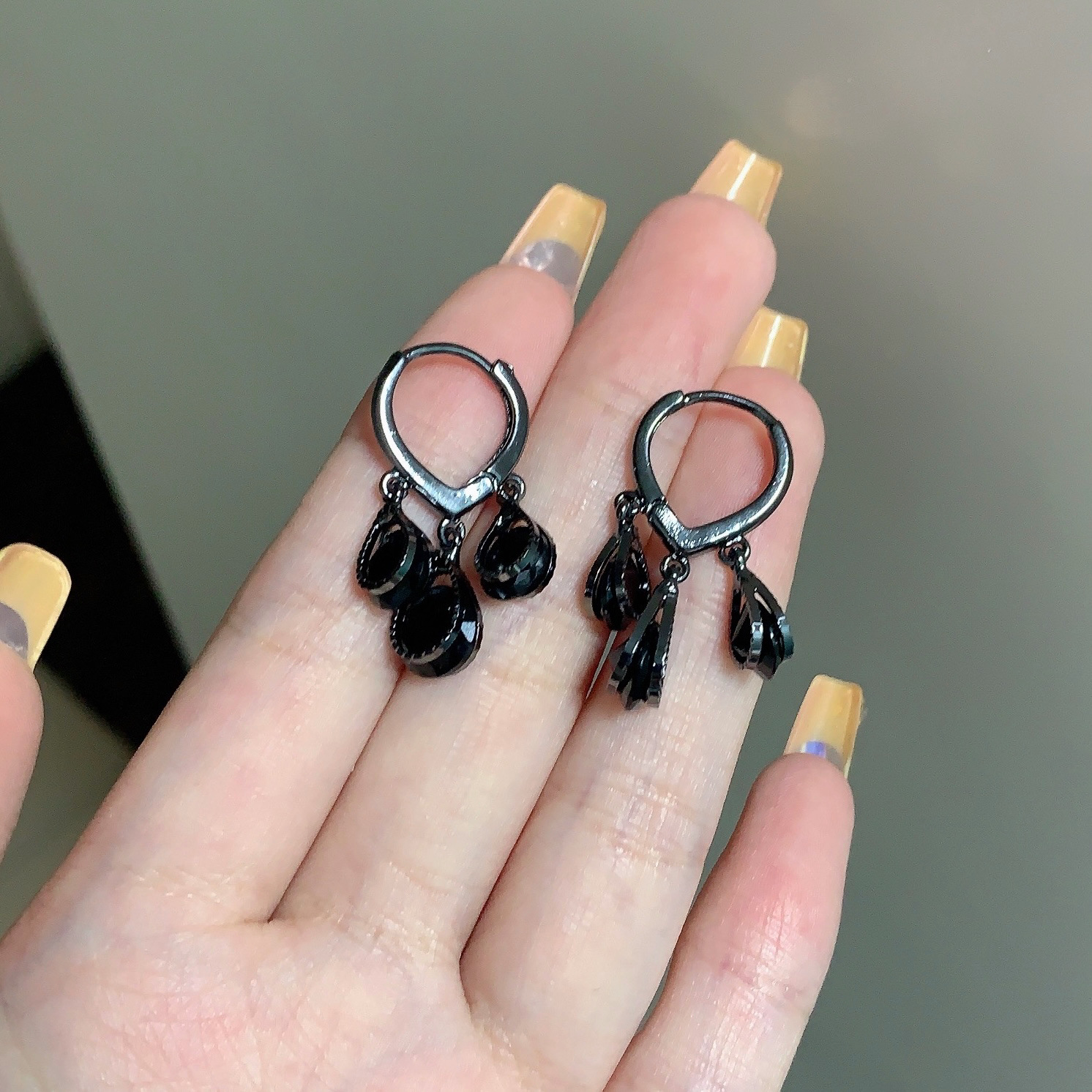 高级感黑色镶钻复古2024新爆款水滴耳扣时尚气质百搭耳饰女