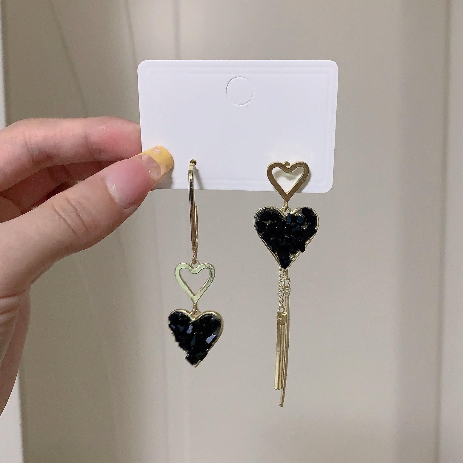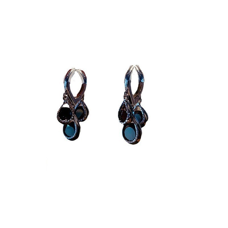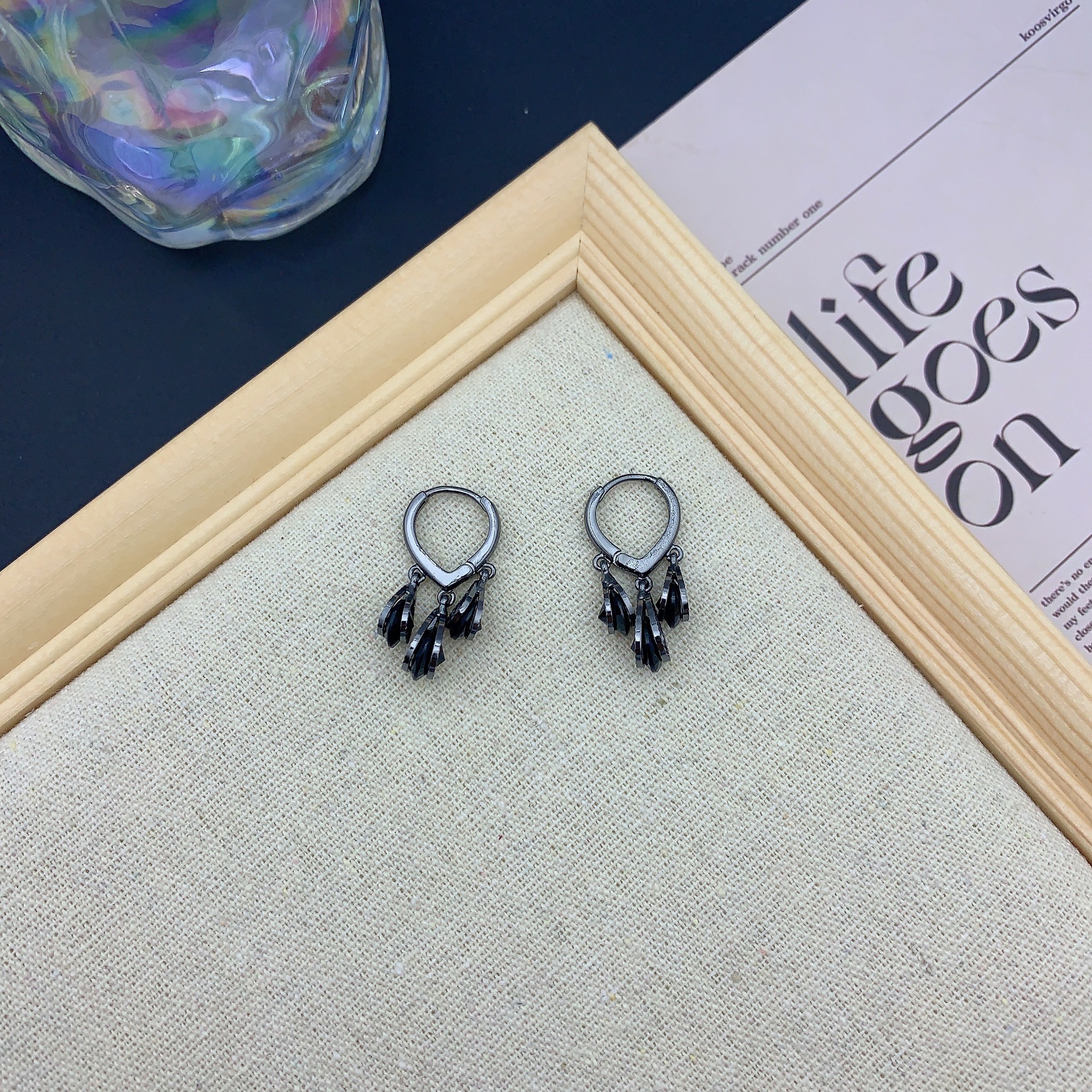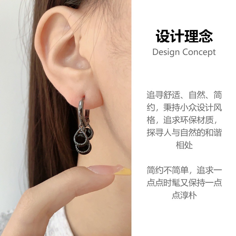 高级感黑色镶钻复古2024新爆款水滴耳扣时尚气质百搭耳饰女