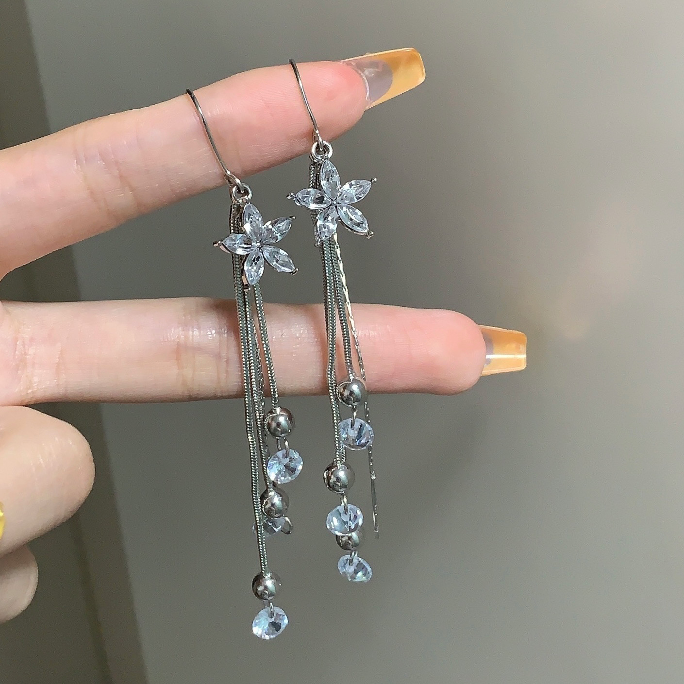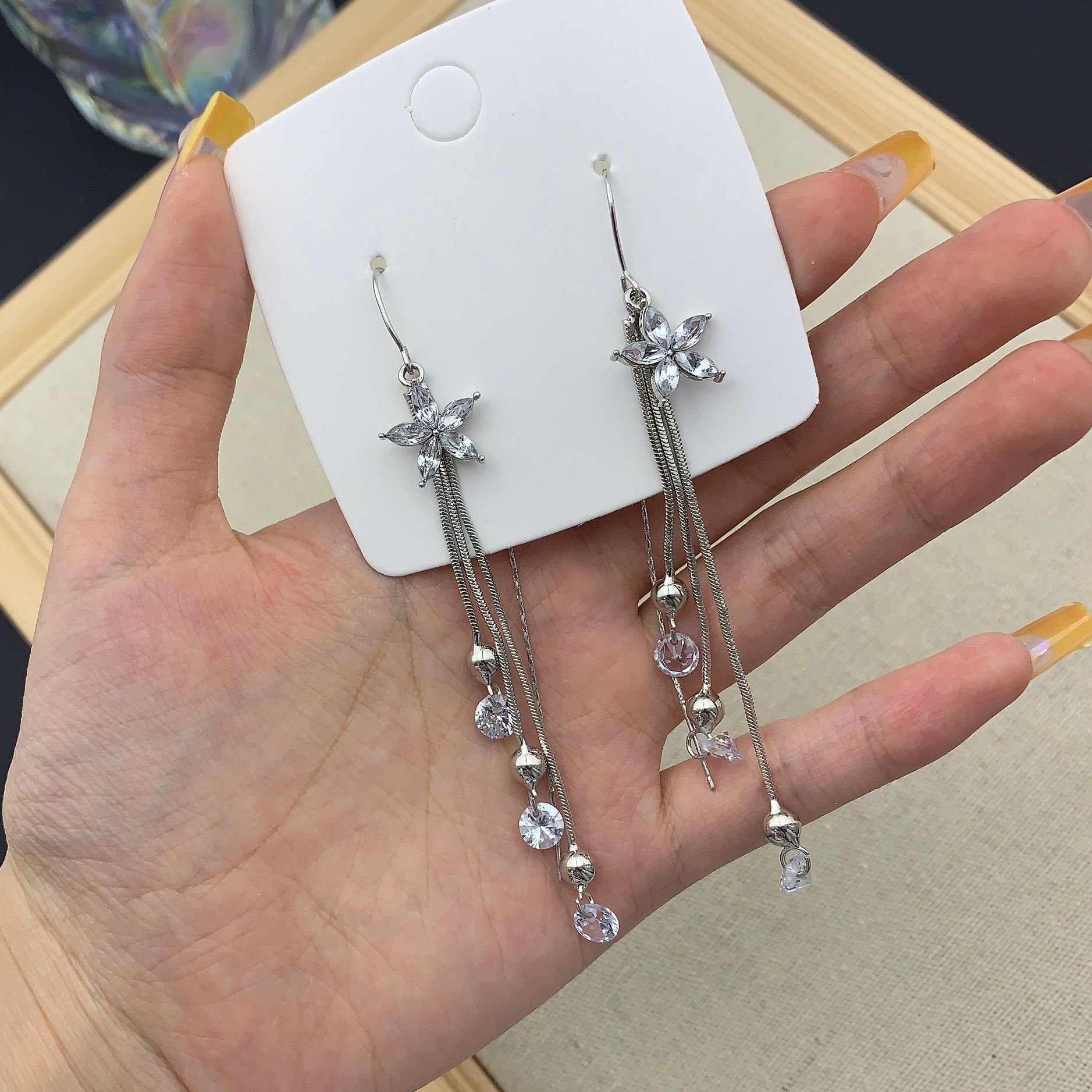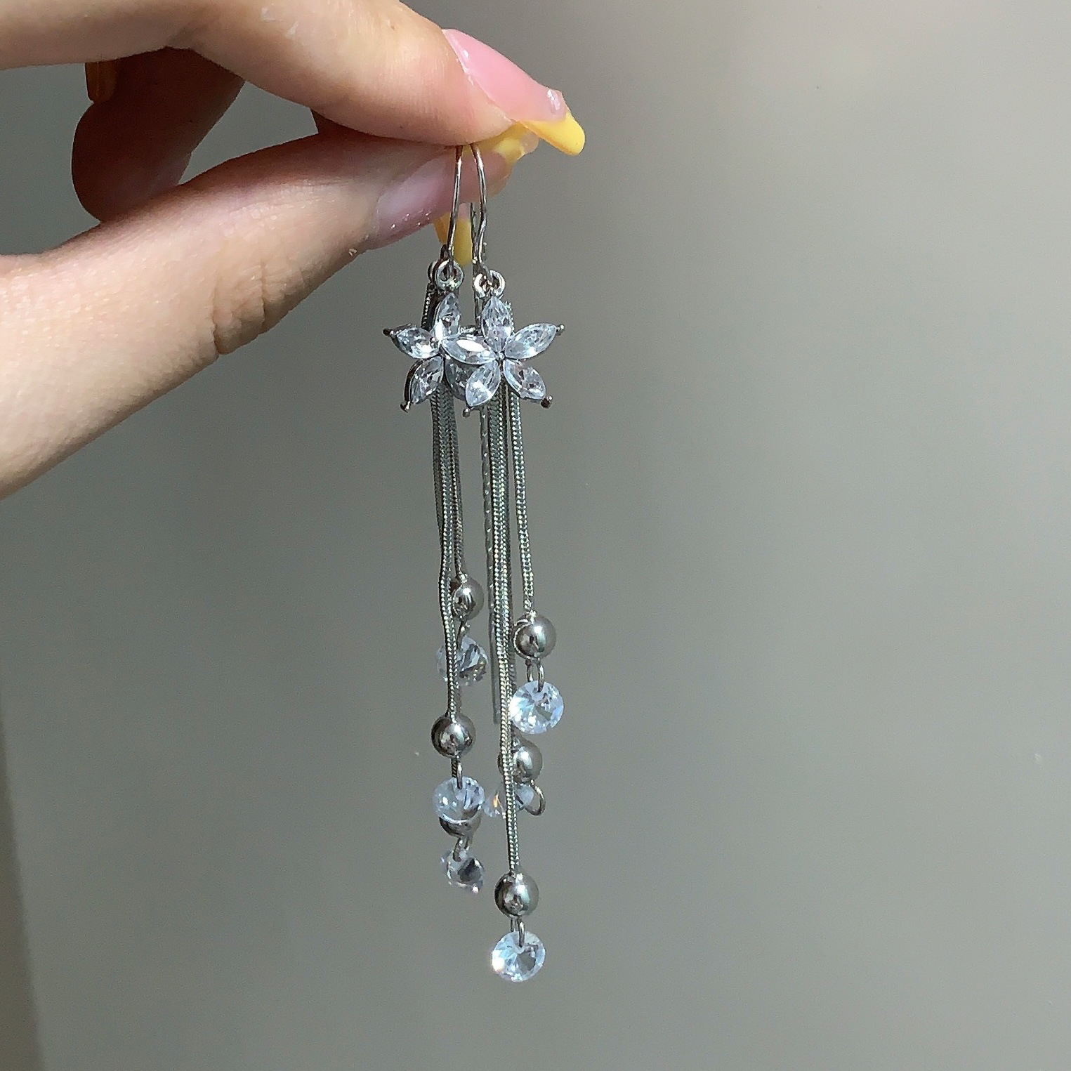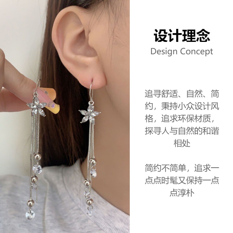 超仙显瘦新款高档耳环锆石花朵流苏耳环高级耳线简约气质奢华耳坠