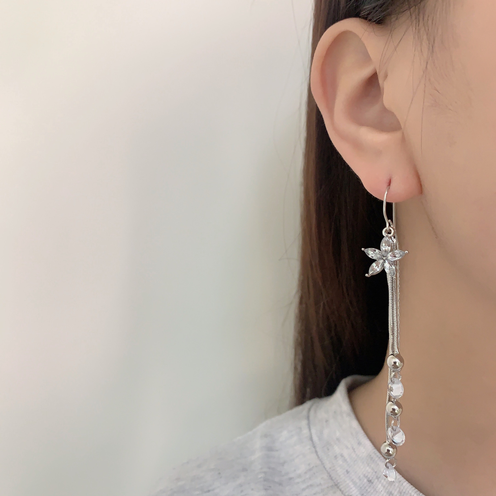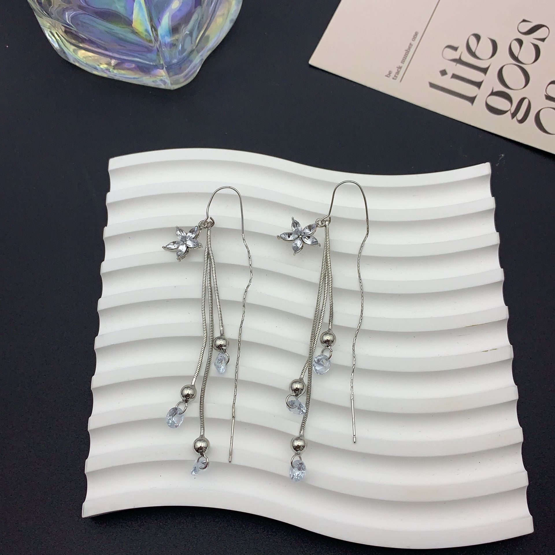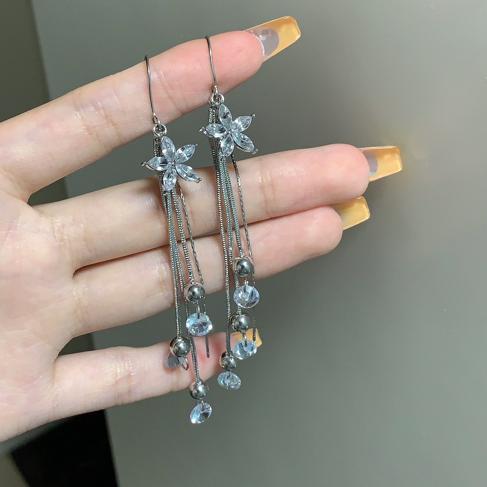 超仙显瘦新款高档耳环锆石花朵流苏耳环高级耳线简约气质奢华耳坠