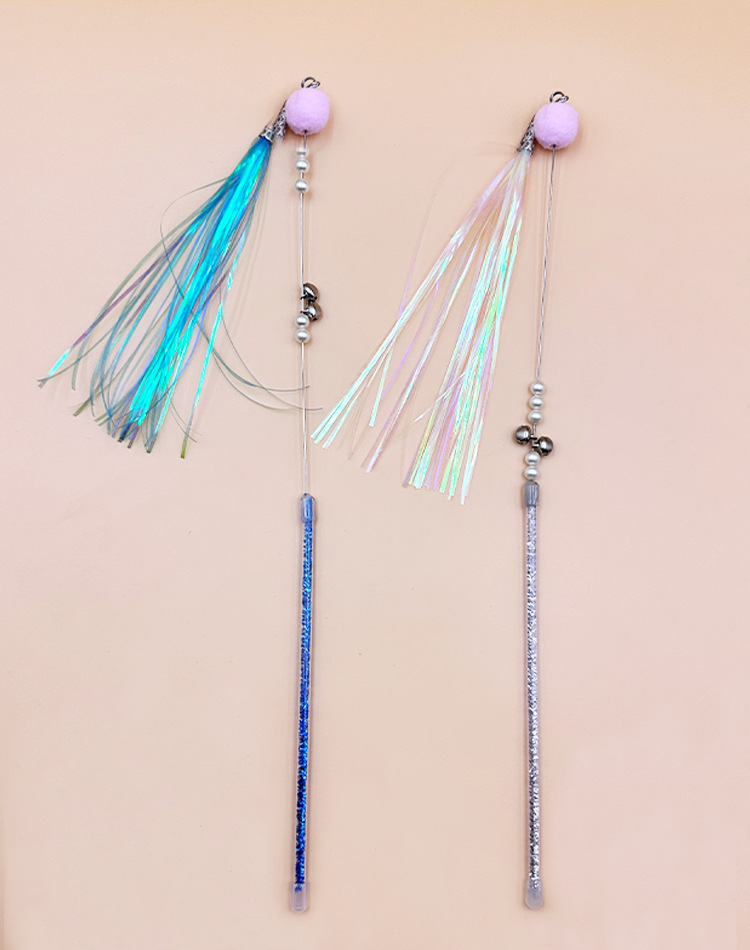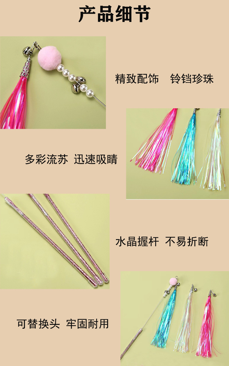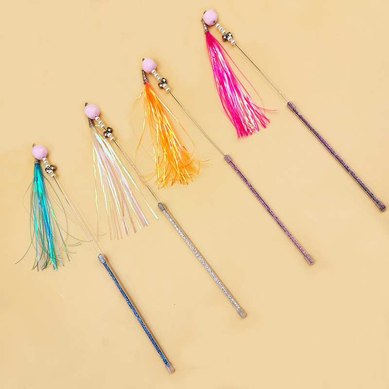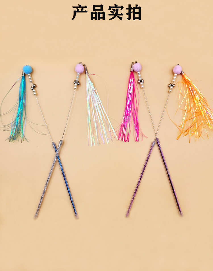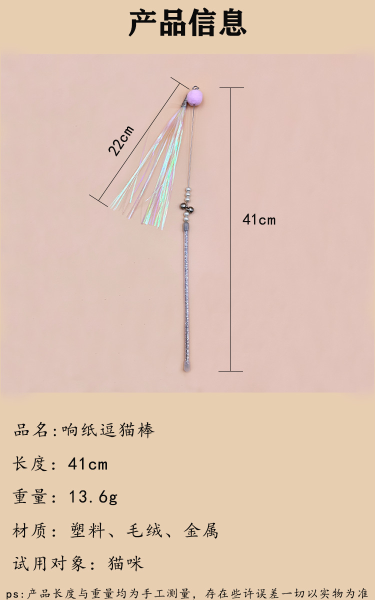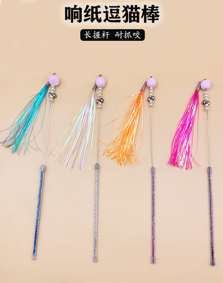 厂家新款彩色响纸逗猫棒毛球羽毛铃铛耐咬猫玩具训猫神器宠物用品